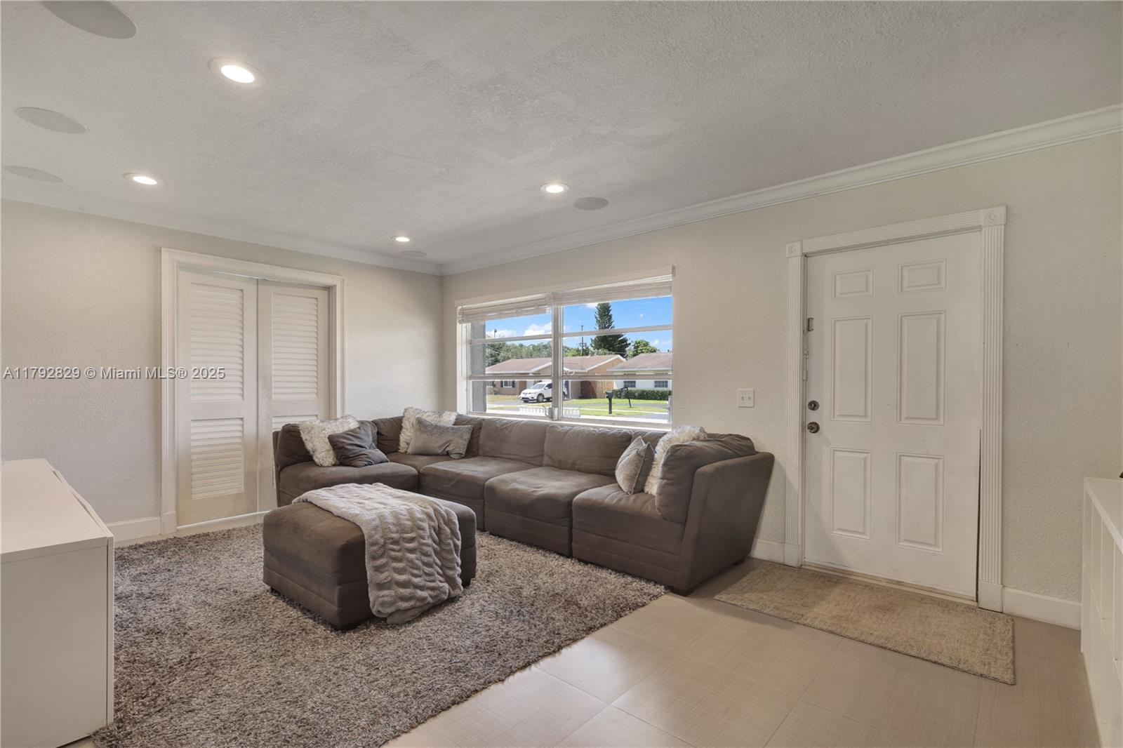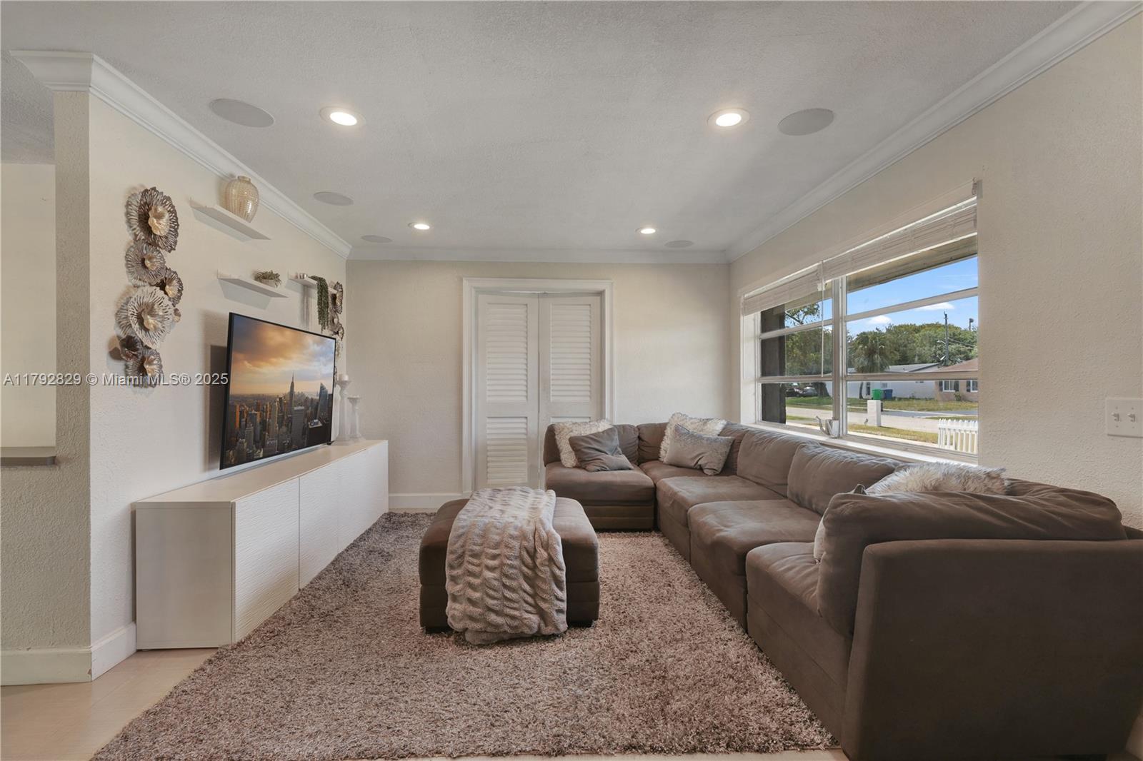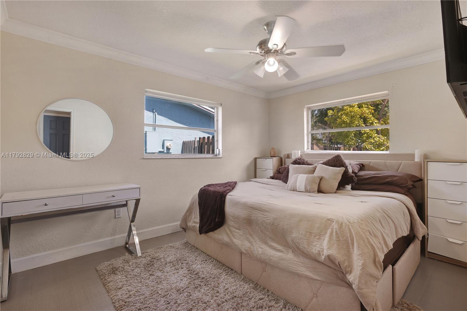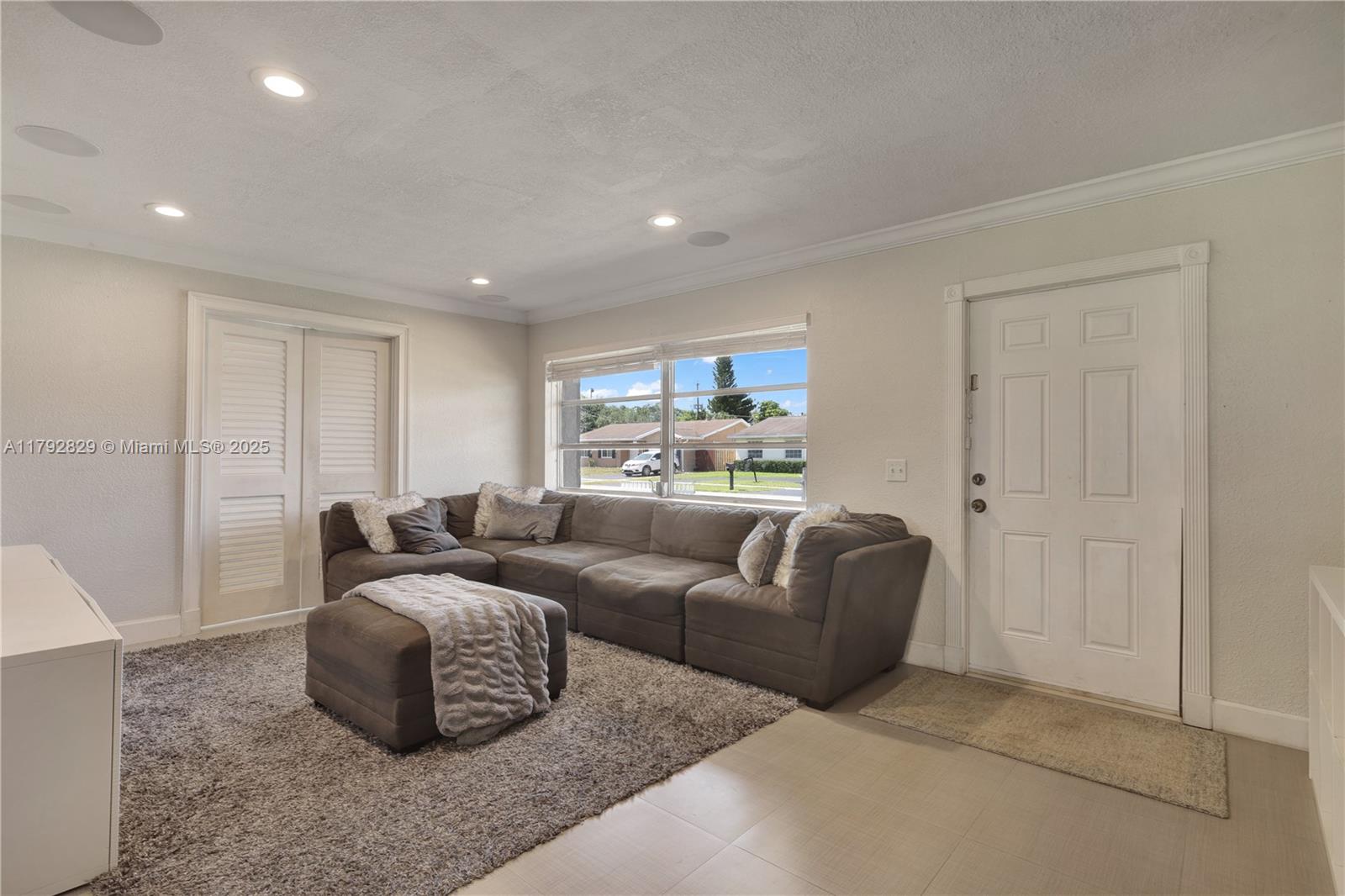 NO HOA! Look no further: this is the perfect starter home for a young family to look to grow. The property features a thoughtfully converted garage that serves as a spacious third bedroom or flexible living space. The newer kitchen showcases modern cabinetry, sleek countertops, and newer appliances. Elegant porcelain tile flooring flows throughout the home, complemented by crown molding, baseboards, and updated LED lighting in the living room. Enjoy the comfort of a renovated bathroom with a Jacuzzi tub and custom California closets for great organization. Step outside to a spacious backyard which offers stunning canal views. Just a short walk from the Sunrise Complex.