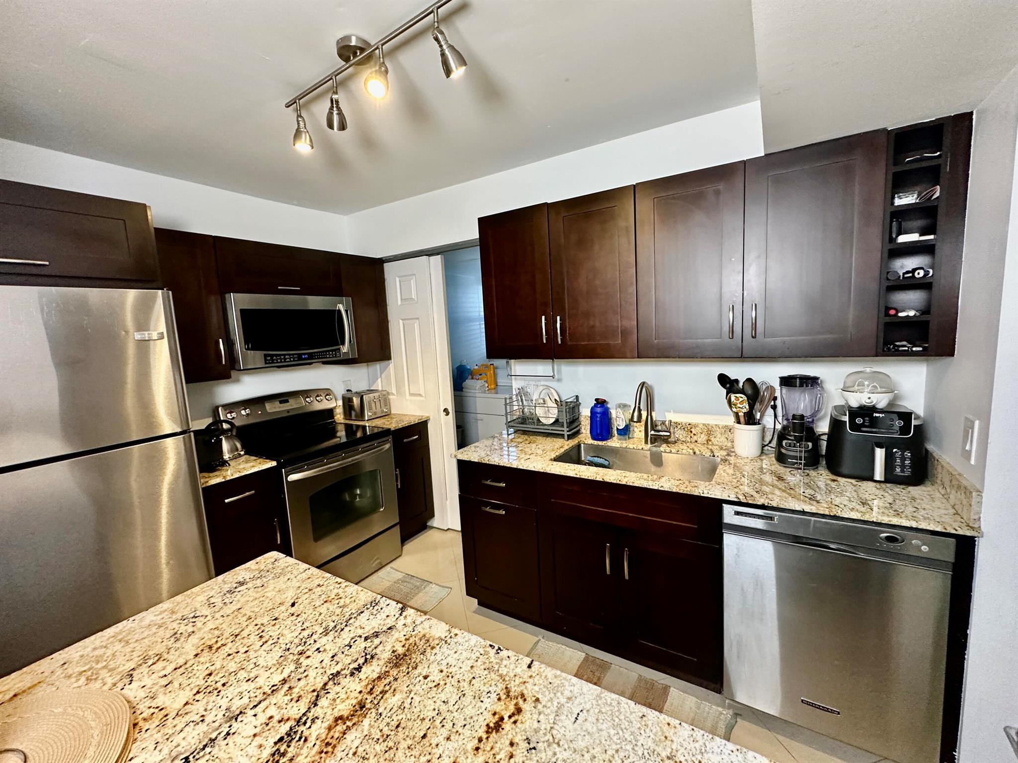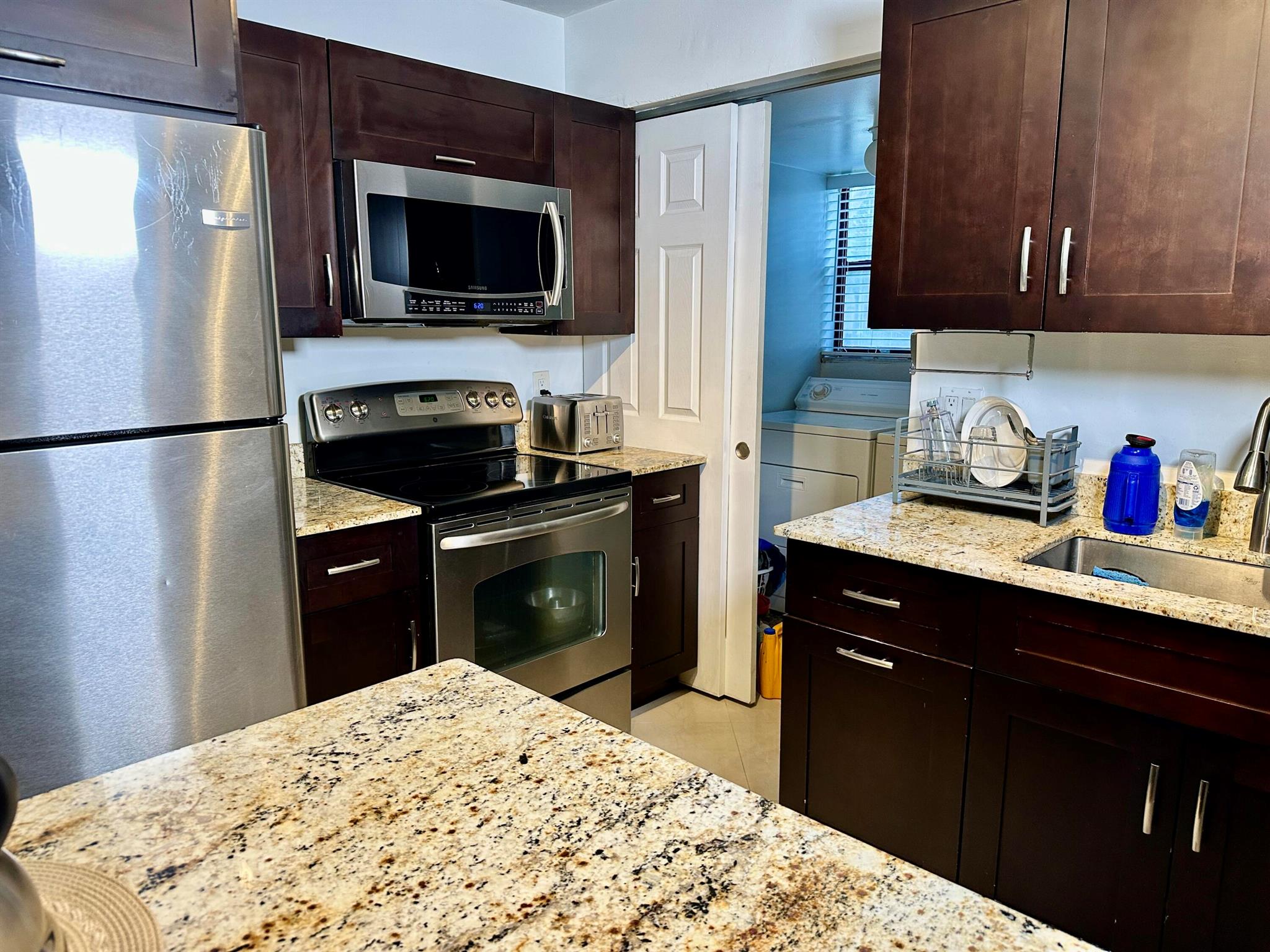 Stunningly renovated 2BR/2BA townhome in the highly desirable East Boca Raton. This spacious, light-filled home boasts a modern kitchen with elegant granite countertops and stainless steel appliances, complemented by a large utility room with washer/dryer. Enjoy recessed LED lighting, updated AC (2019), and beautifully remodeled bathrooms. Step outside and unwind on the open, screened patio. The community offers top-notch amenities including 2 sparkling pools, a fitness center, billiards room, and a picnic area. Located in an A+ school district, with easy access to beaches, FAU, PBSC, Downtown Delray, Mizner Park, and plenty of shopping, dining, and entertainment options.
