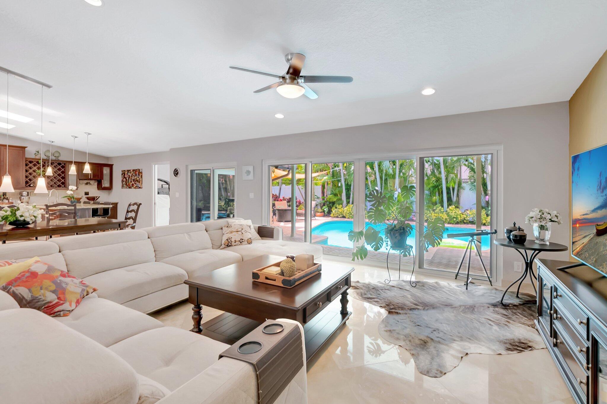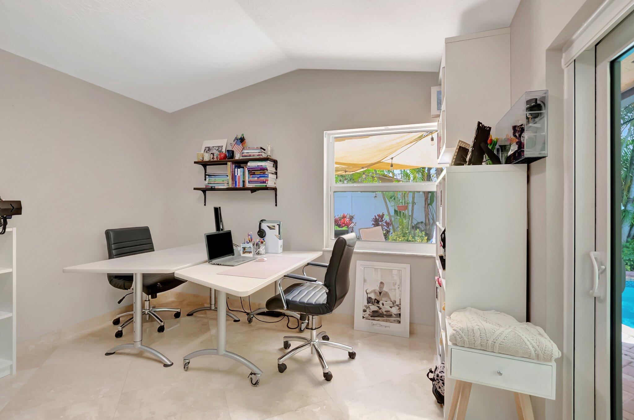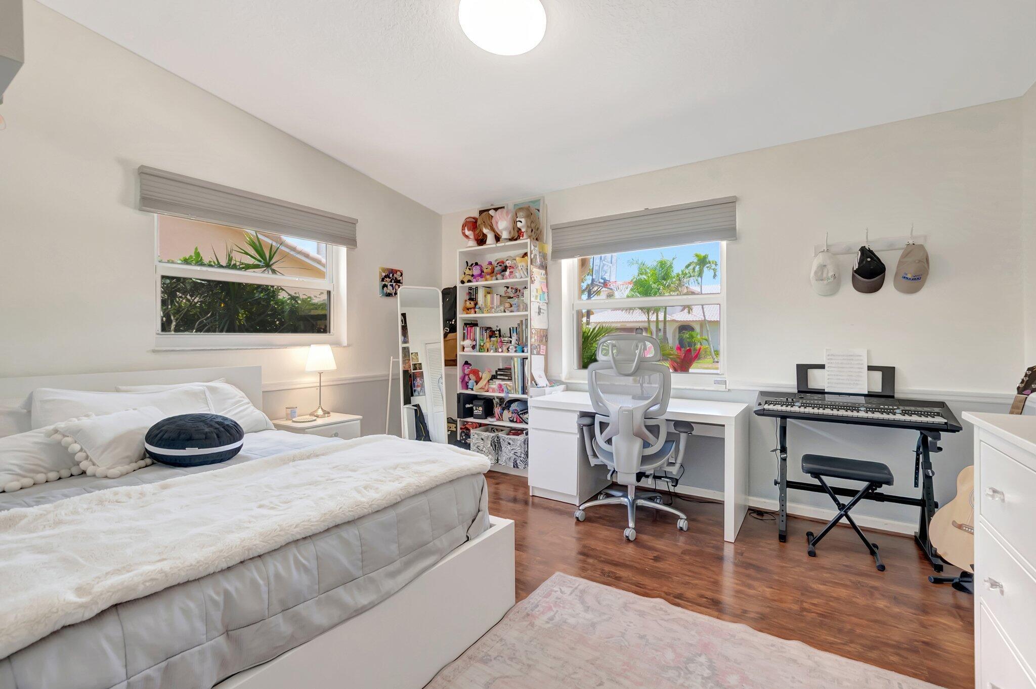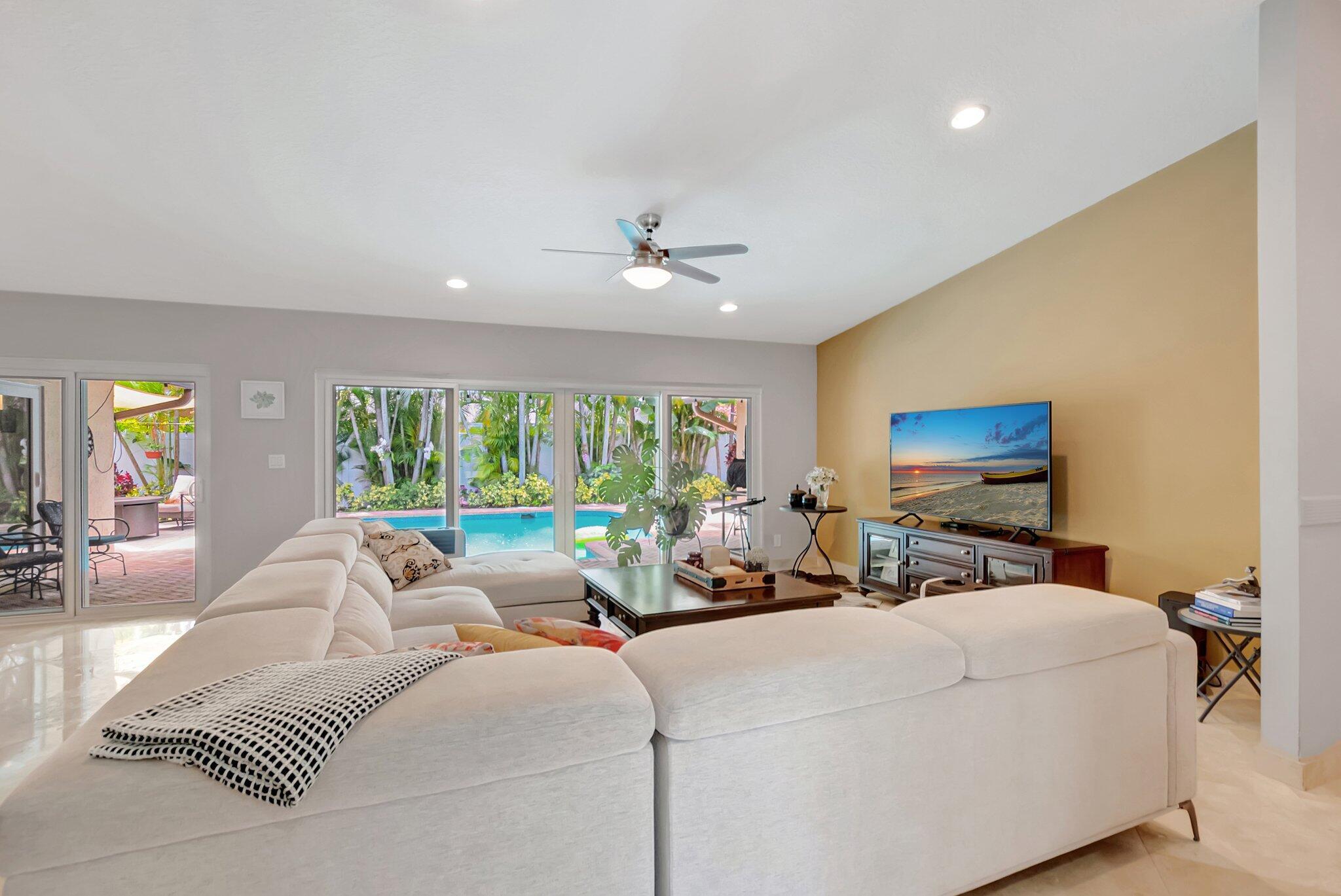 This home is truly one-of-a-kind inside and out! Stunning CORNER LOT single story home 4-bedroom with DEN - very spacious office space / 2.5-bathroom/ 2024 IMPACT windows&doors/ 2021 A/C / brick paver pool deck/ 2020 installation of PVC fencing for enhanced privacy and security -- with convenient access to easily park your boat in the backyard/ 2-car garage located on a spacious 10,363 sq ft lot in one of Boca Raton's most desirable communities. This move-in ready residence blends comfort and elegance, featuring an open-concept layout, soaring vaulted ceilings, and thoughtfully curated designer finishes throughout. Oversized driveway + built-in garage storage. Zoned for A-rated schools, Close to everything Boca Raton has to offer.