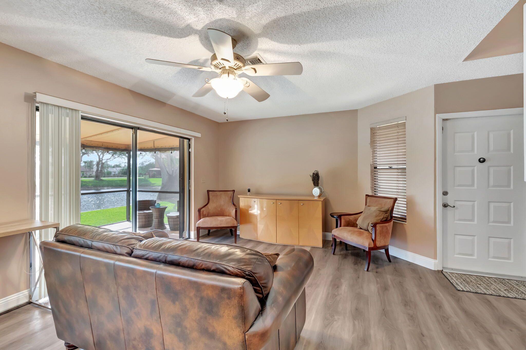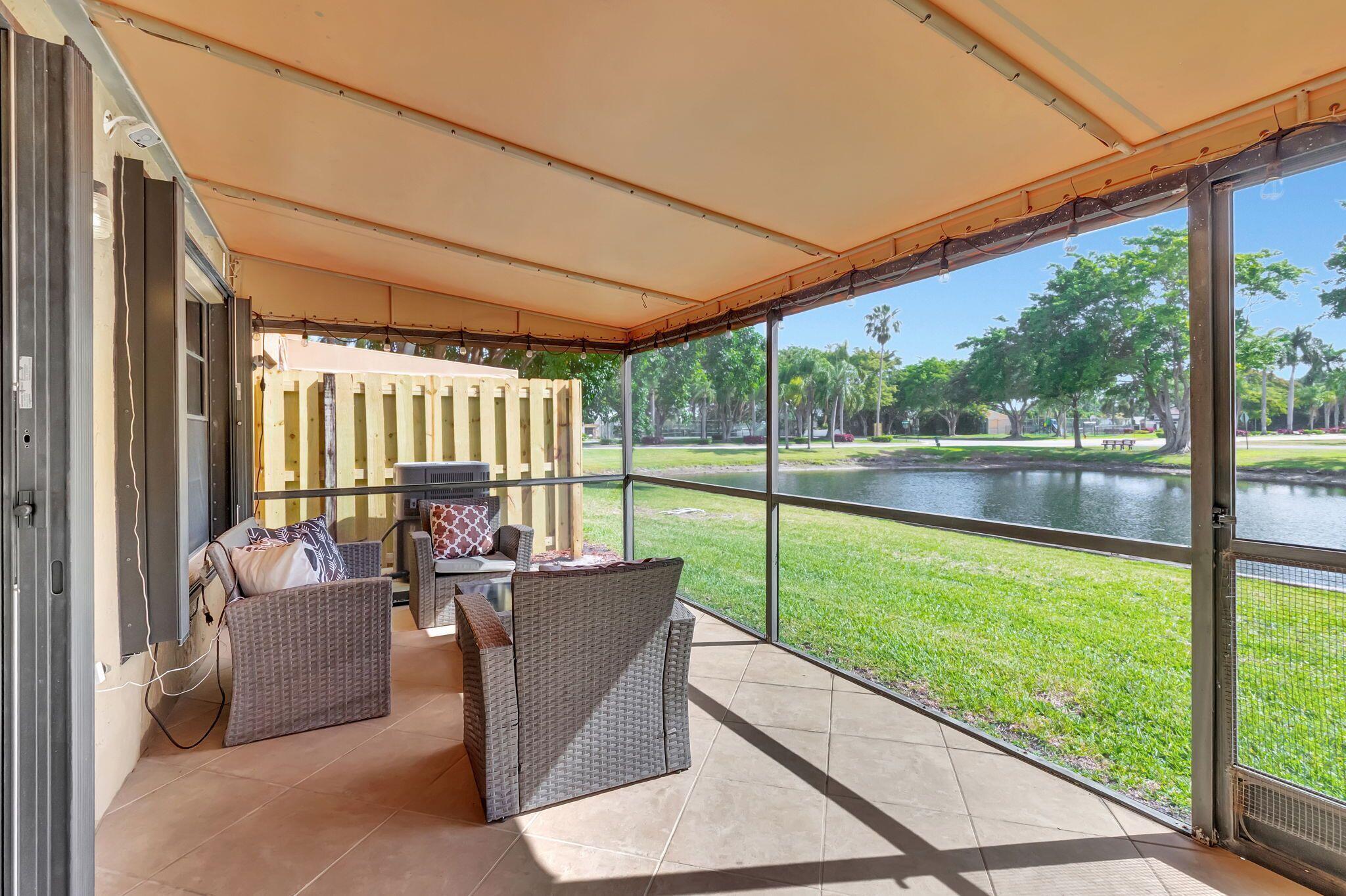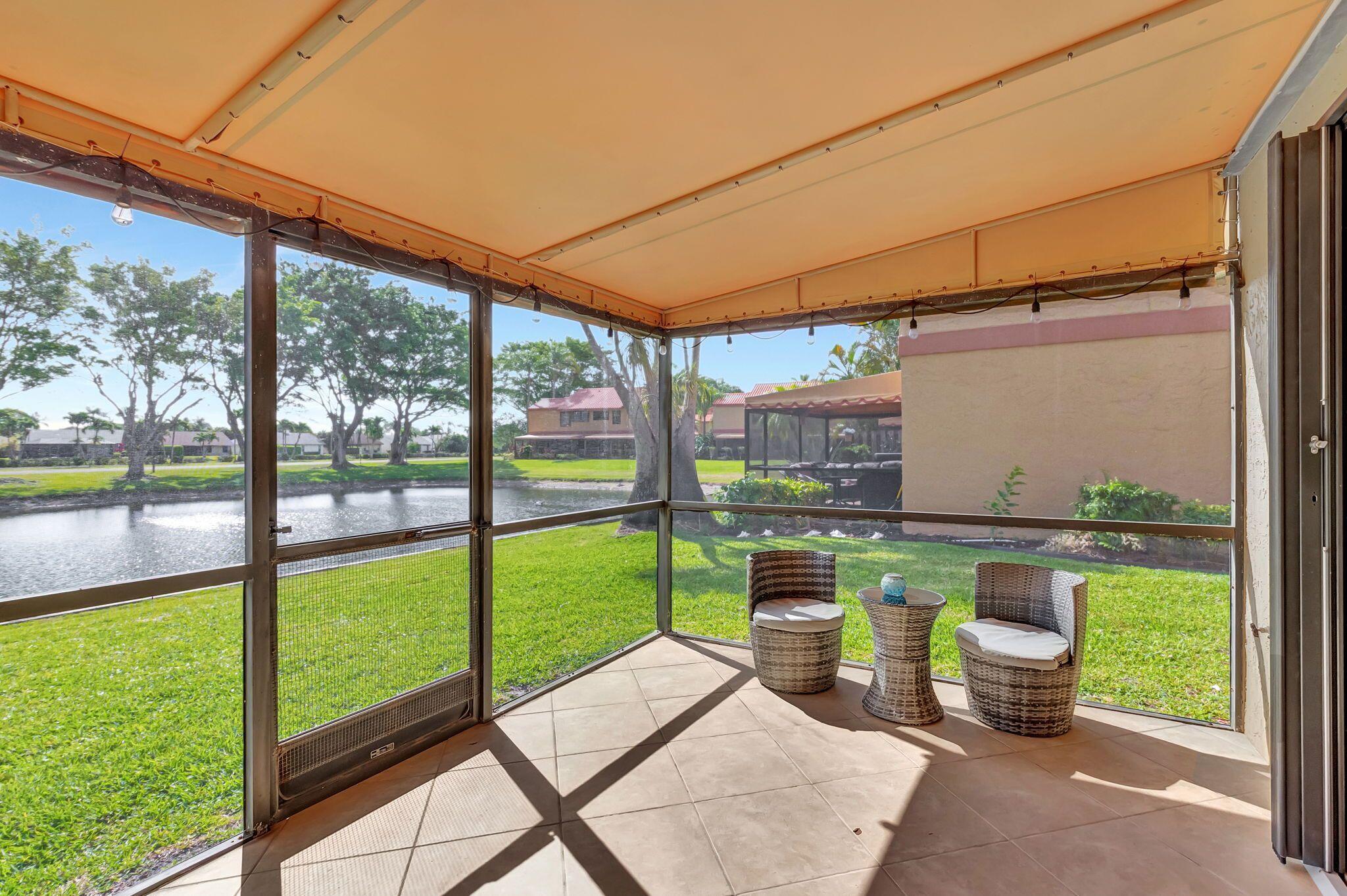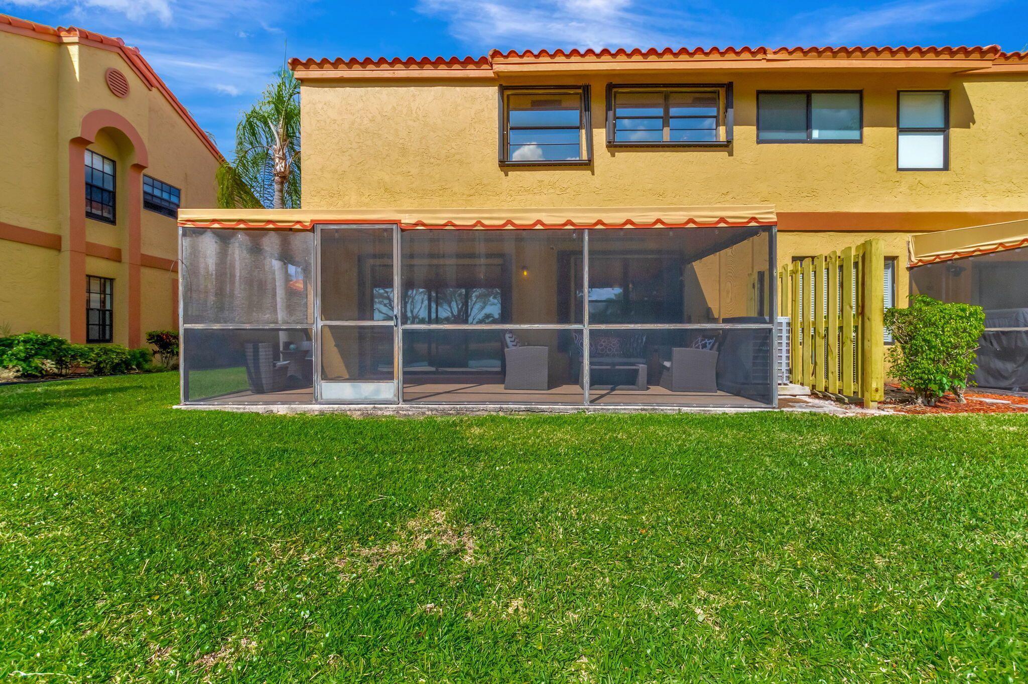 Great west Boca location, zoned for all A schools! This expansive townhouse features 3 large bedrooms, 2.5 bathrooms, and a 2-car garage. You'll find wood-look vinyl flooring throughout living areas, a bright and airy layout with both a living room and family room. Enjoy constant lake views from living room, dining room, primary bedroom and patio! The primary suite is a true retreat, boasting dual vanities with granite counters and updated fixtures, frameless glass shower with floor-to-ceiling tile, and a relaxing Roman tub. Step outside to the peaceful lake views from the large, tiled, covered and screened patio - perfect for entertaining or relaxing year-round. New roof (2016) and accordion shutters for safety and peace of mind.