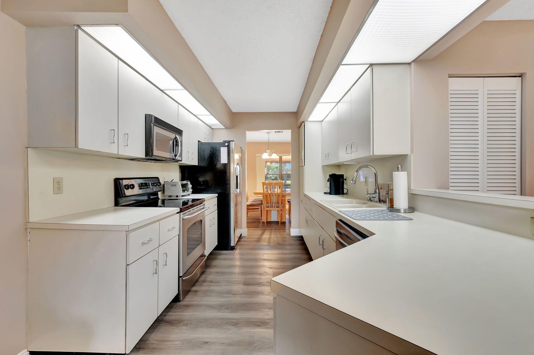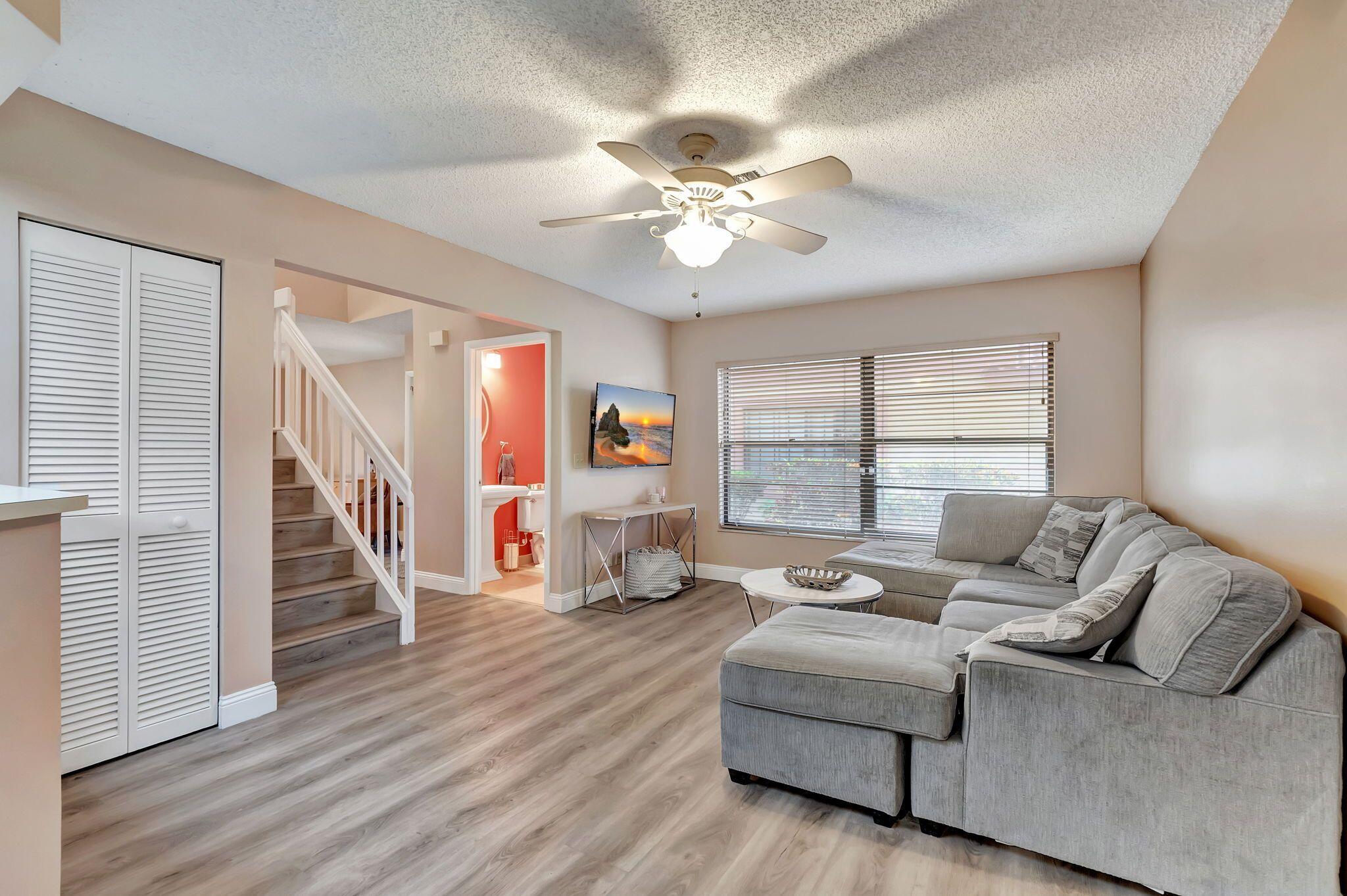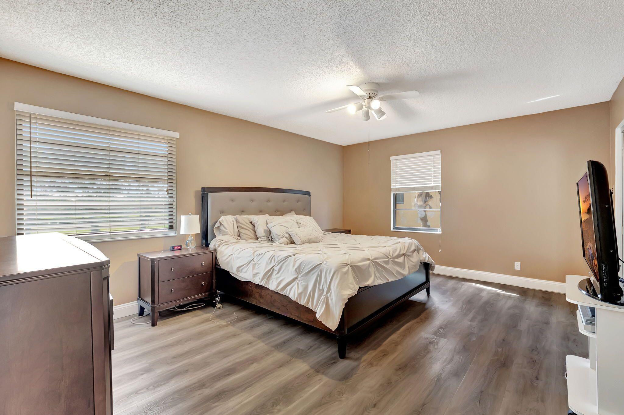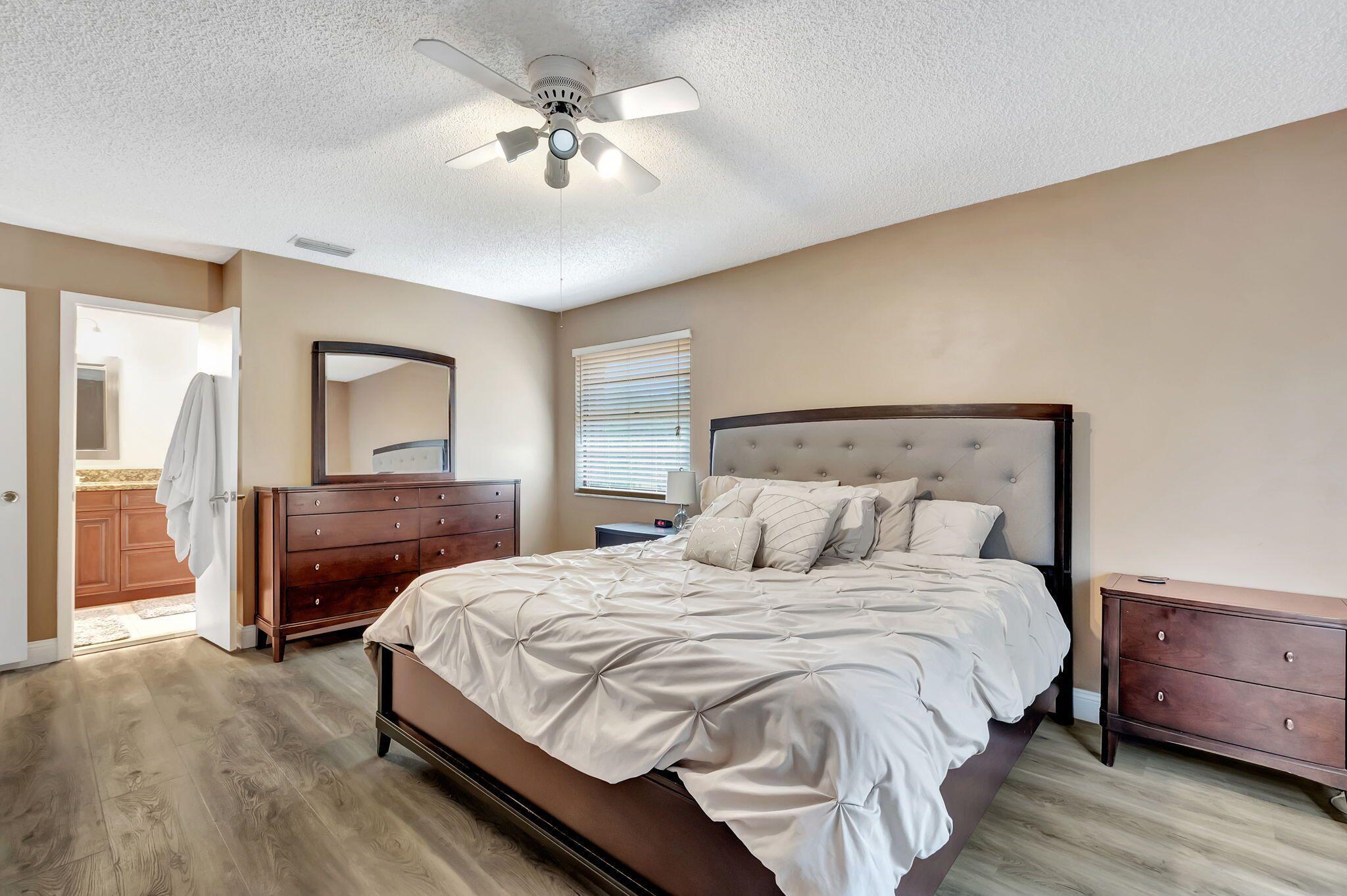 Great west Boca location, zoned for all A schools! This expansive townhouse features 3 large bedrooms, 2.5 bathrooms, and a 2-car garage. You'll find wood-look vinyl flooring throughout living areas, a bright and airy layout with both a living room and family room. Enjoy constant lake views from living room, dining room, primary bedroom and patio! The primary suite is a true retreat, boasting dual vanities with granite counters and updated fixtures, frameless glass shower with floor-to-ceiling tile, and a relaxing Roman tub. Step outside to the peaceful lake views from the large, tiled, covered and screened patio - perfect for entertaining or relaxing year-round. New roof (2016) and accordion shutters for safety and peace of mind.