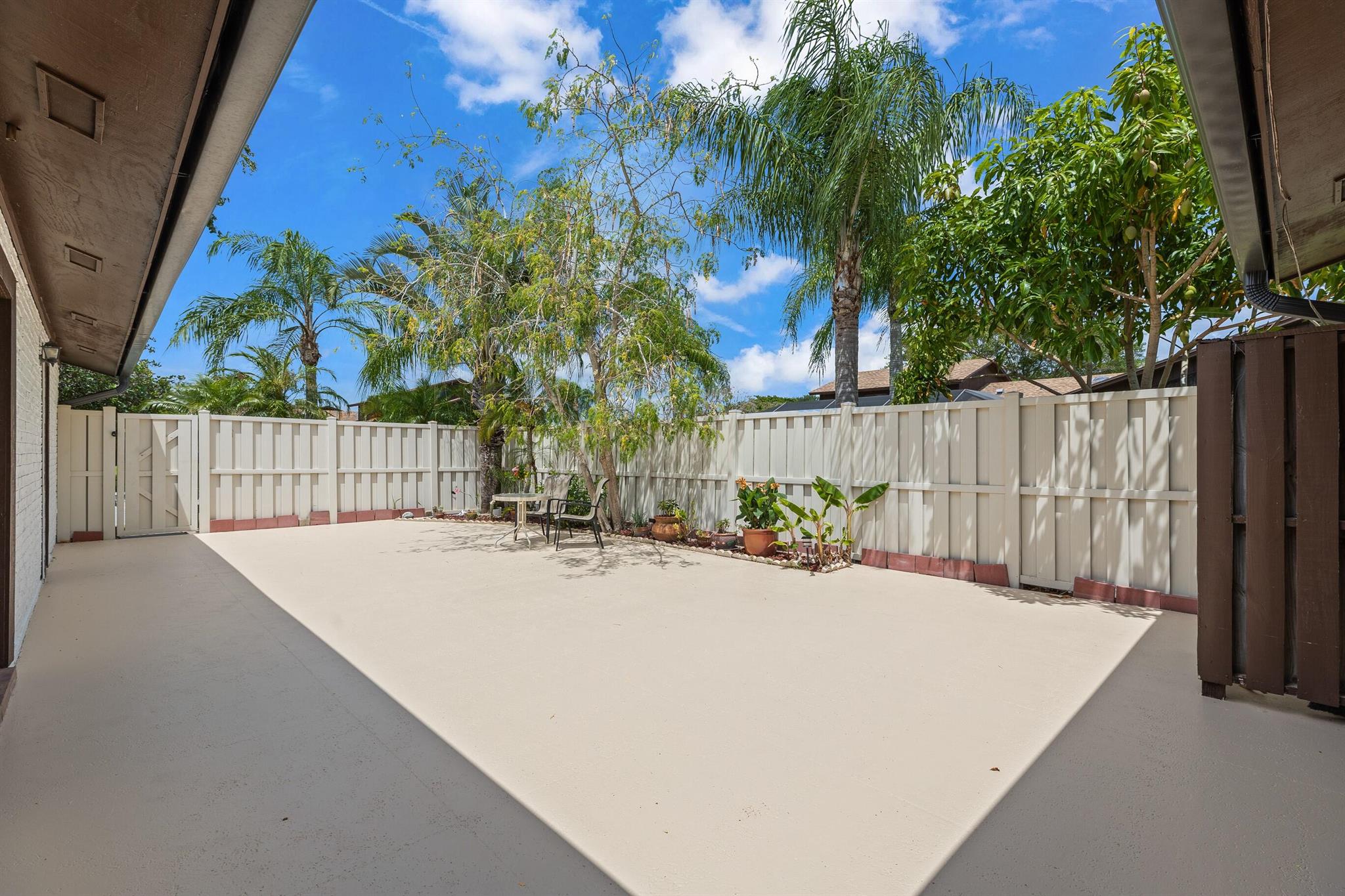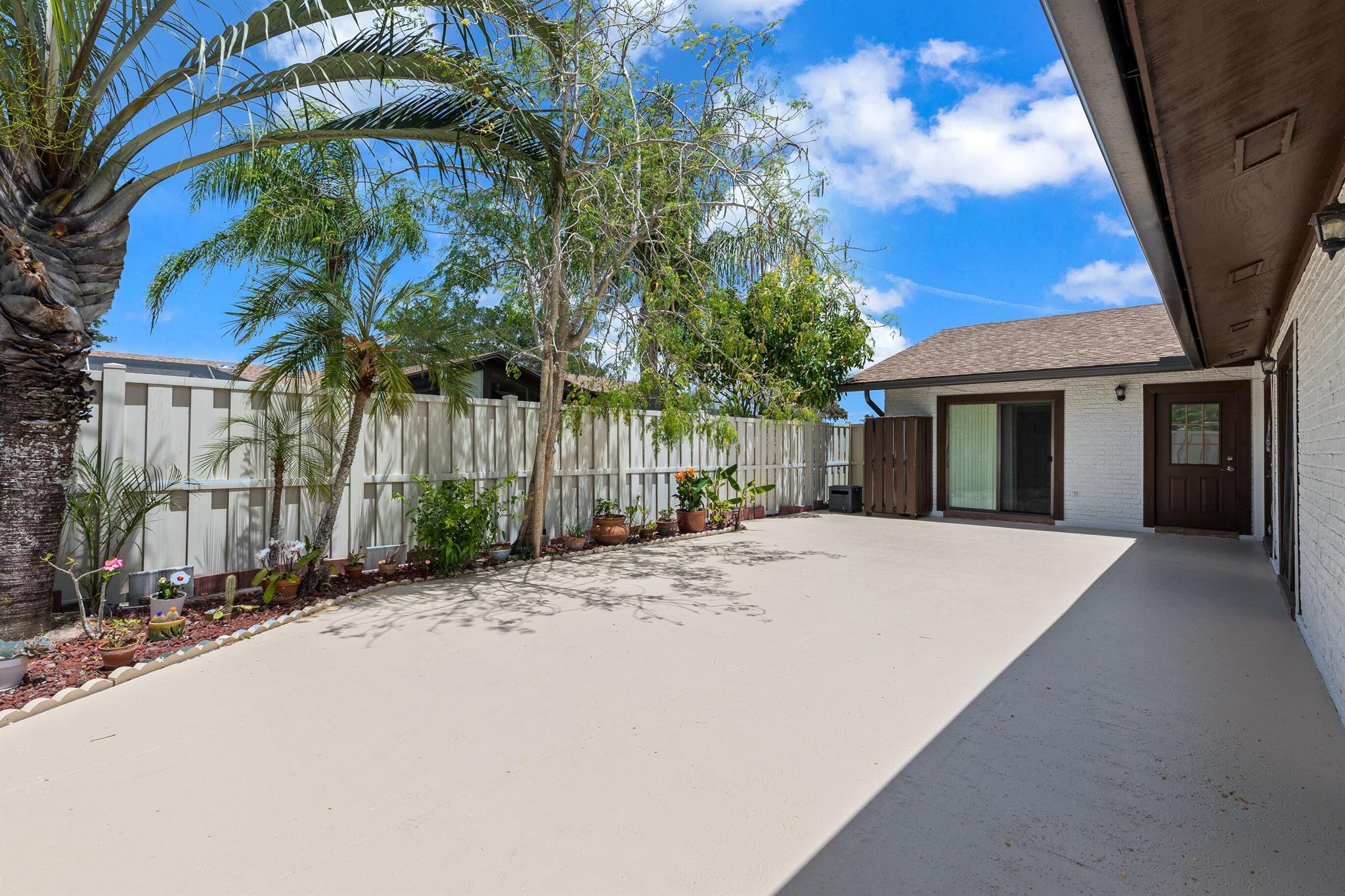 This clean, bright, and upgraded townhouse features spacious split bedrooms, each with its own full bath, including a master bath with a tub. Recent updates include replaced indoor copper plumbing, a brand-new roof, fresh paint, and tall ceilings. The stairs and top floor showcase stylish laminate flooring, while the first floor is finished with elegant tile throughout, filling the home with plenty of natural light.Enjoy an oversized, high-fenced patio offering complete privacy and potential for screening or adding a pool, creating a perfect outdoor retreat. Parking includes a 1-car garage with a WiFi garage door opener, plus two additional parking spaces--one in front of the garage and another nearby. The home also features a whole-house and kitchen water filtration system