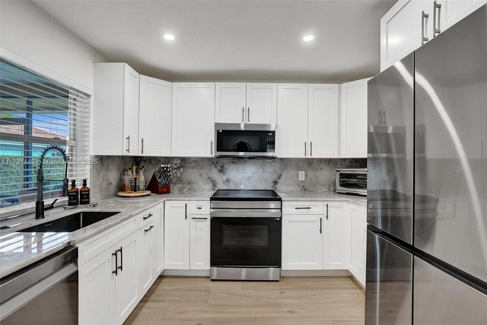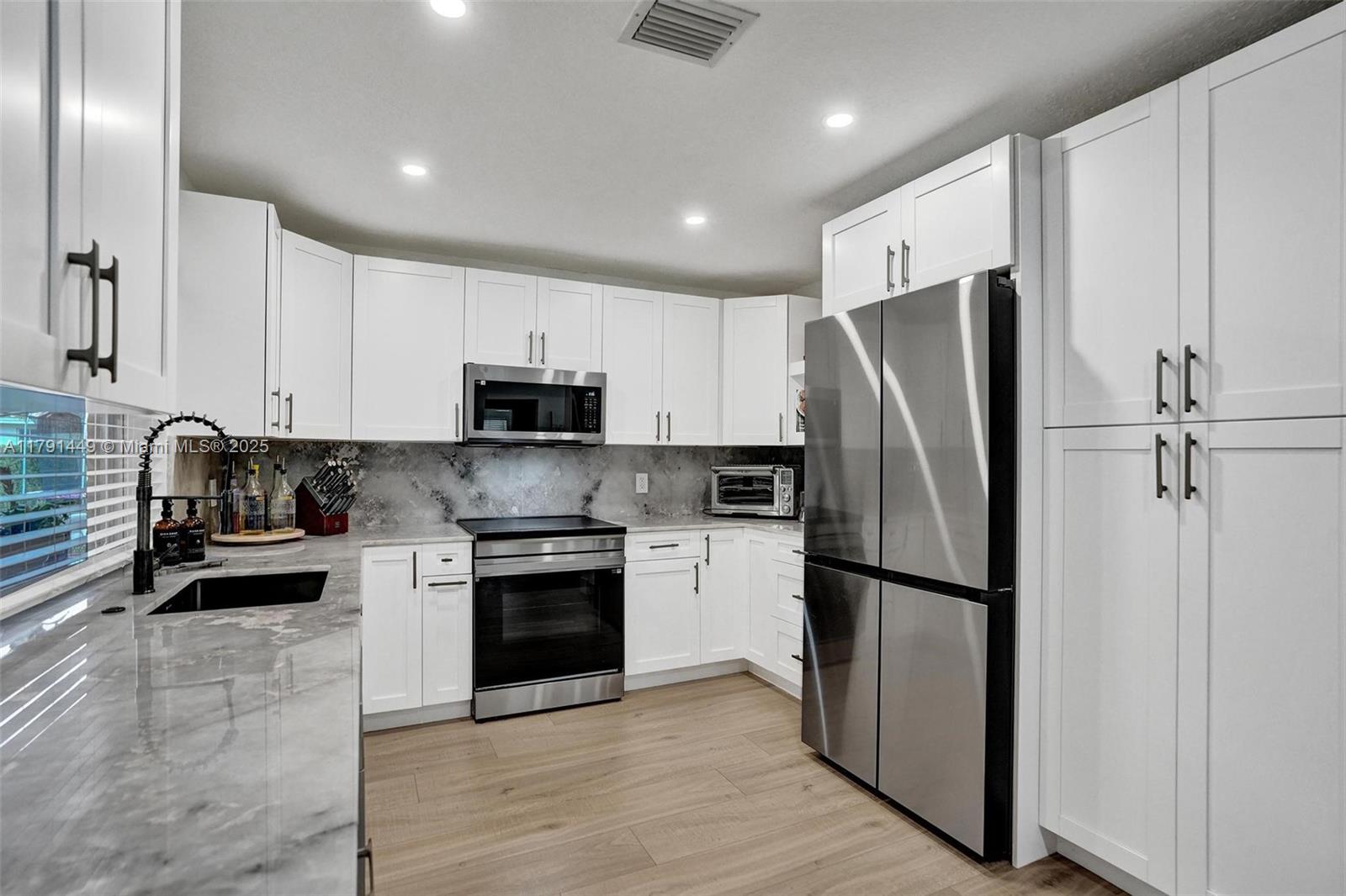 Blow your mind away! Stunning Fully Renovated 4BD | 2BA Home in Sought-After HOA Community of Coral Springs. This 2024 renovation showcases brand new wood floors, an open-concept kitchen with quartz countertops, and vaulted ceilings that create a bright and airy feel. Enjoy peace of mind with a newer roof, energy-efficient solar panels, plus brand new HVAC w/ duct work and accordion shutters throughout to protect you through the heavy winds. One of the four bedrooms is currently set up as a home office. The spacious 7000+ SF lot includes a screened patio perfect for entertaining, plus a 2-car garage. Community is well-maintained with no rentals allowed ensuring pride of ownership.
