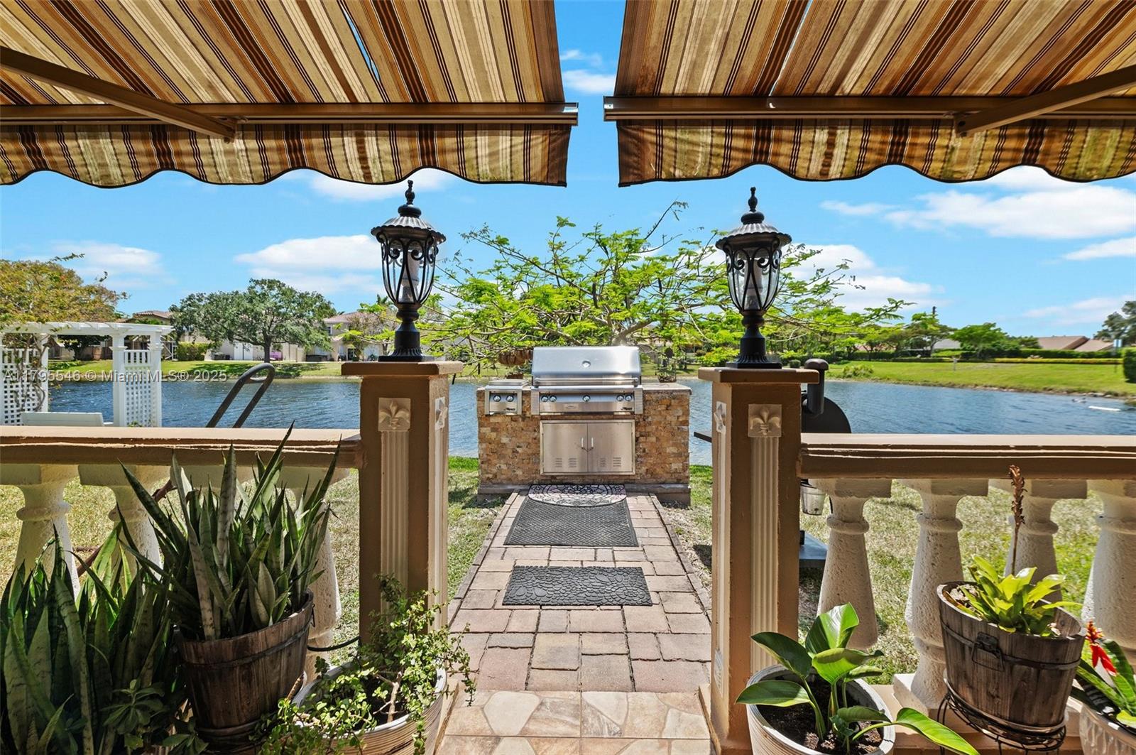PRICE IMPROVEMENT! SELLER MOTIVATED ! A Peaceful View Awaits!Come relax in this beautifully remodeled 4-bedroom,3.5-bath courtyard home in the exclusive Classic Vista community.This unique residence features marble floors,quartz countertops, upgraded cabinetry,crown molding & a chef’s island perfect for culinary creations.The home includes a versatile guest room that can also serve as a home office,remodeled bathrooms & an amazing covered terrace with a full outdoor kitchen,complete with a gas stove & everything you need to entertain in style.The spacious main bedroom offers a large retreat area and an oversized walk-in shower.Turn on the spa, take in the peaceful view, enjoy your own private paradise.Come soon, don’t miss your chance to own it.