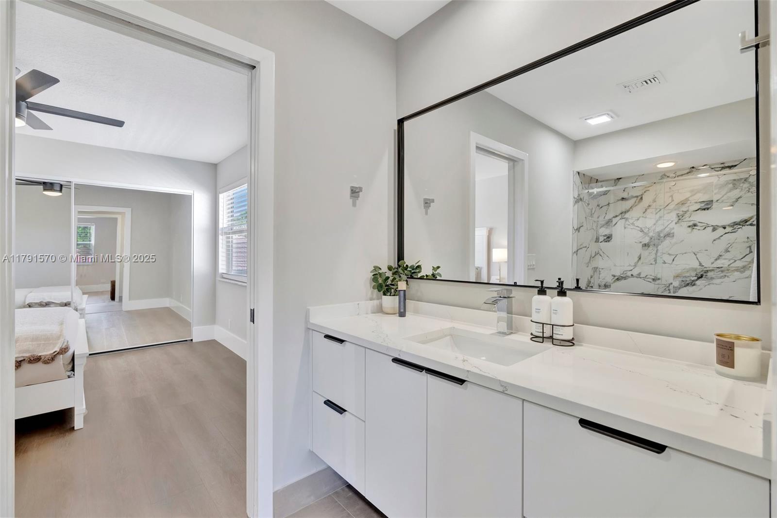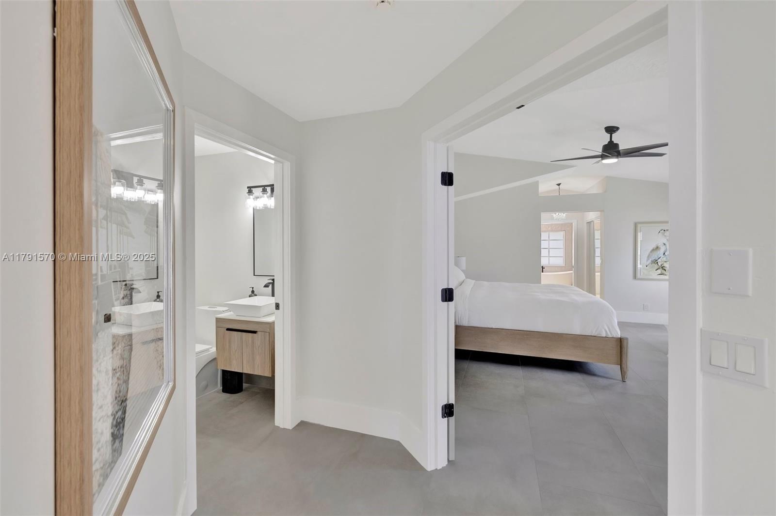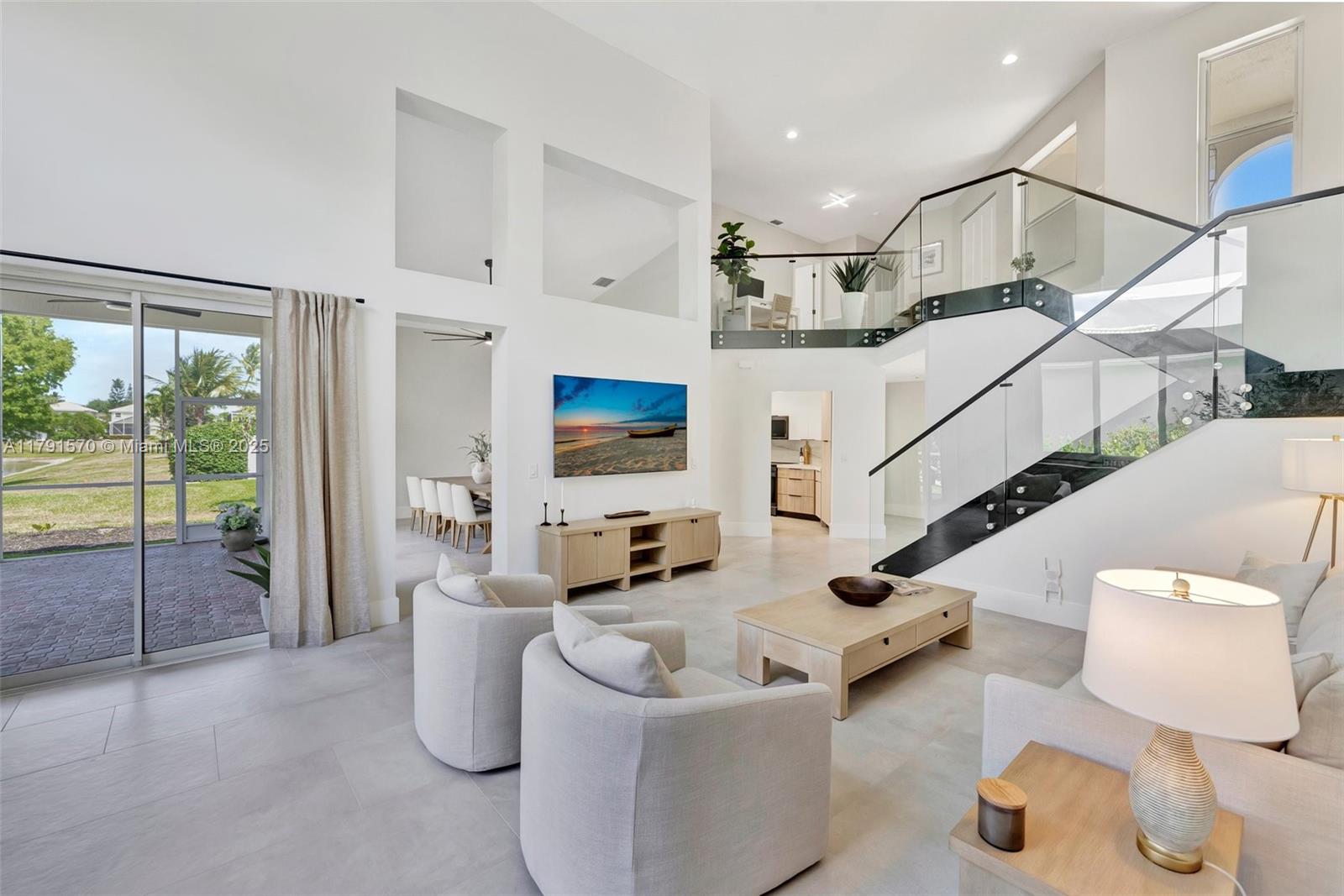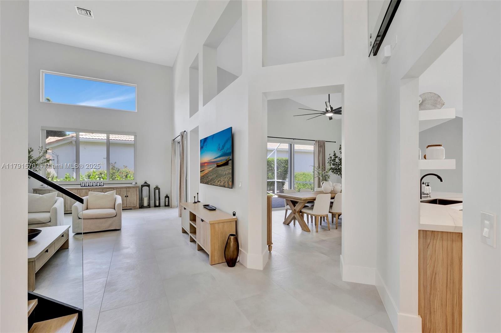 Experience luxury at its finest in this stunningly renovated 3-bed, 2-bath corner-lot home in the exclusive gated community of Costa Brava at Boca Pointe. Bathed in natural light, this residence features soaring ceilings, a dramatic glass staircase, & a sleek, open-concept layout. The designer chef’s kitchen is a true showstopper with quartz countertops, matte black stainless appliances, & custom cabinetry. The elegant primary suite is conveniently located on the main level. Outfitted with high-end materials and quality furnishings, plus impact windows, a new roof, new AC, new water heater, and a 2-car garage. Enjoy quiet water views from the screened patio. No mandatory membership & zoned for top-rated schools. Wow! Also, the Furniture could be sold separately (negotiable), Don't wait!
