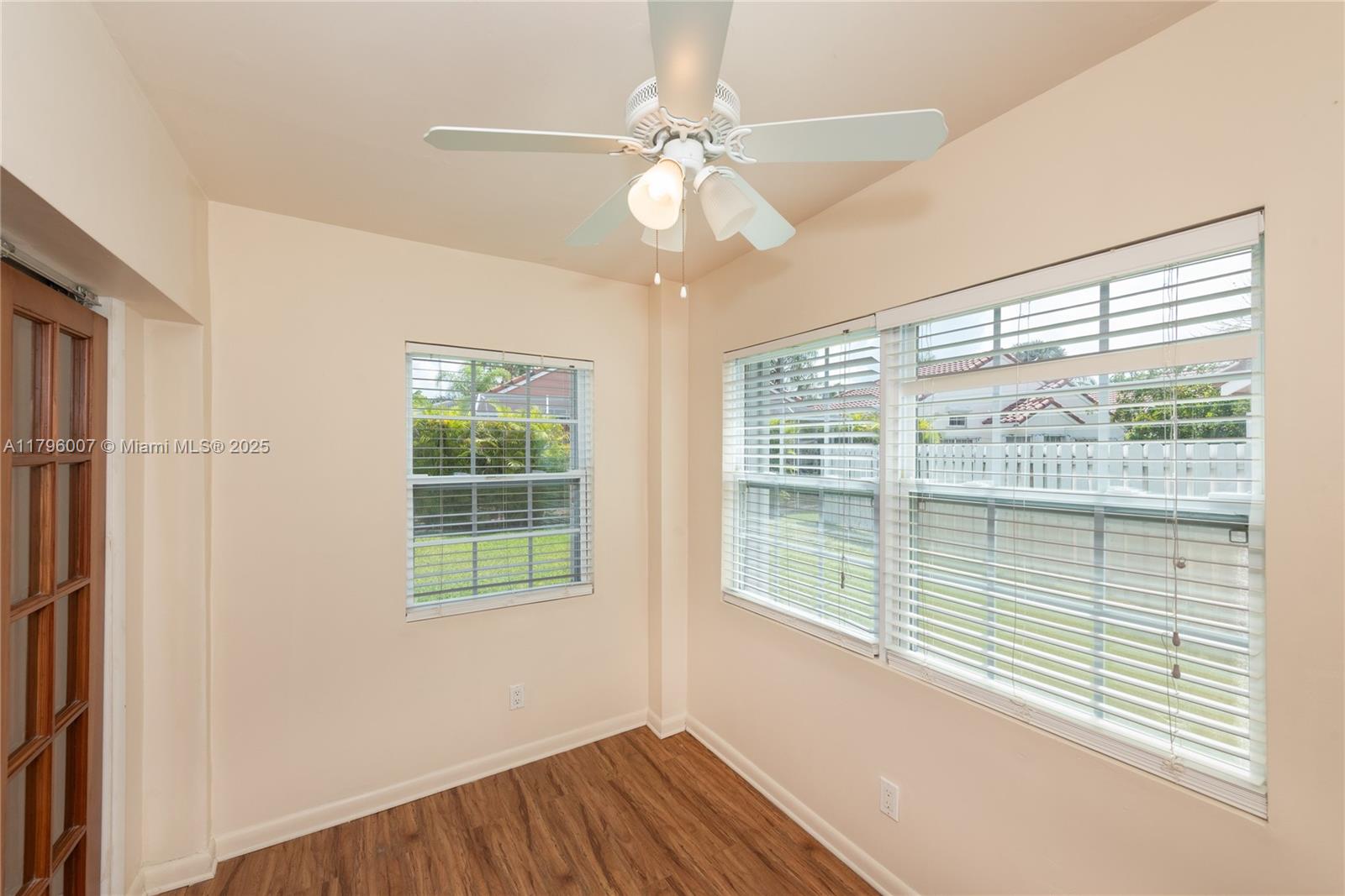 Now $715,000 Only $392/SF! Well-maintained 3BR/2.5BA + den/office in Bermuda Springs, Weston. This two-story layout offers over 1,825 SF under A/C on on a larger-than-average 5,686 SF lot. Primary bedroom with bathroom, den/officeand half bathroom on 1st floor, 2BRs and full bath upstairs. Screened patio, great layout, top-rated schools, near parks, community pool, and easy highway access. Upstairs big windows, corner windows, front/back doors & garage door are impact. Remaining windows have accordion shutters. Low HOA. Vacant & easy to show!