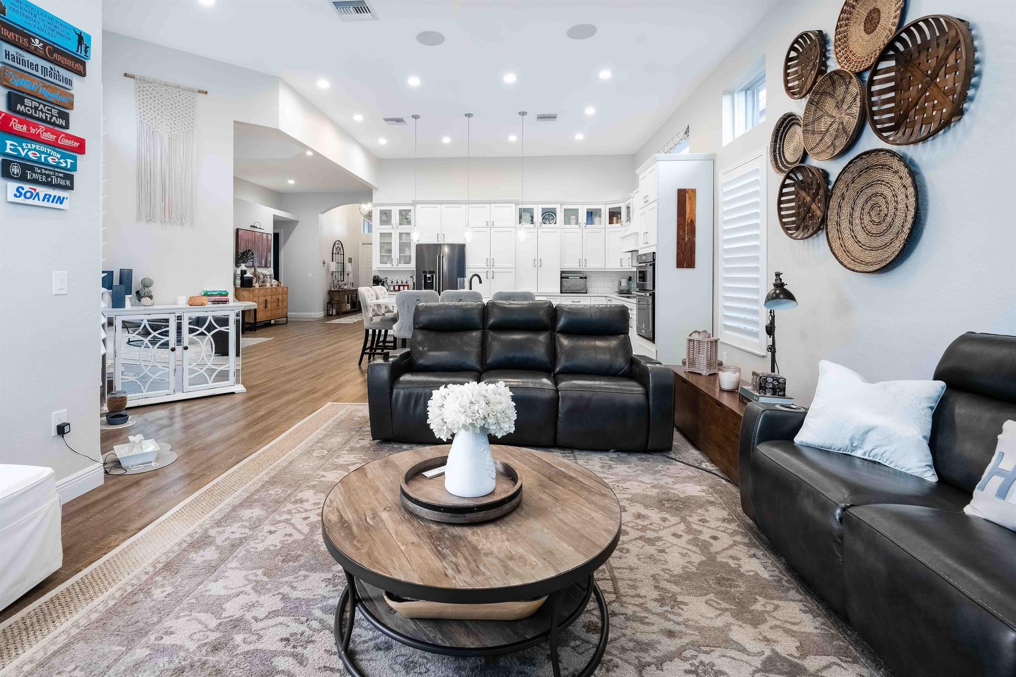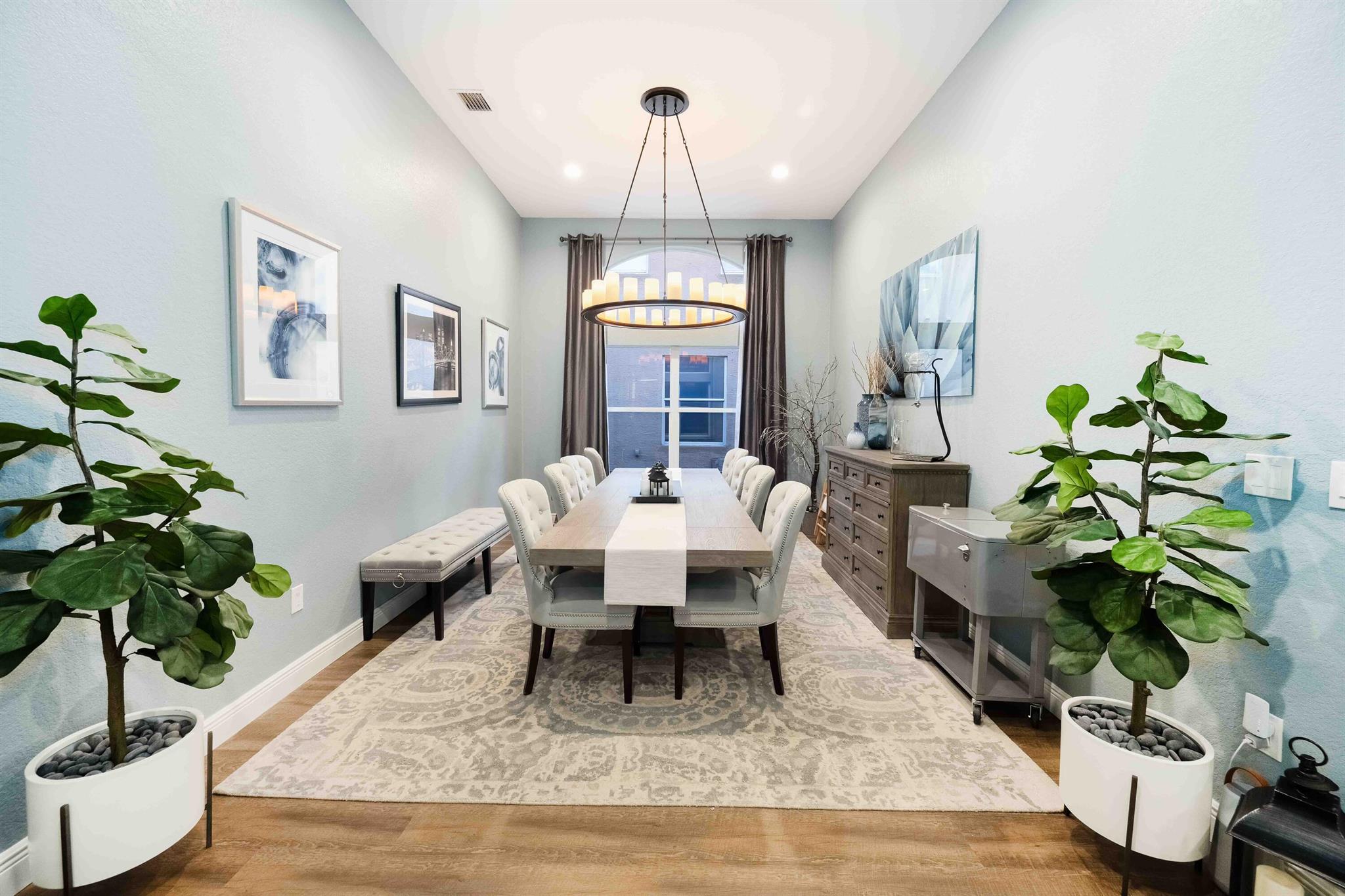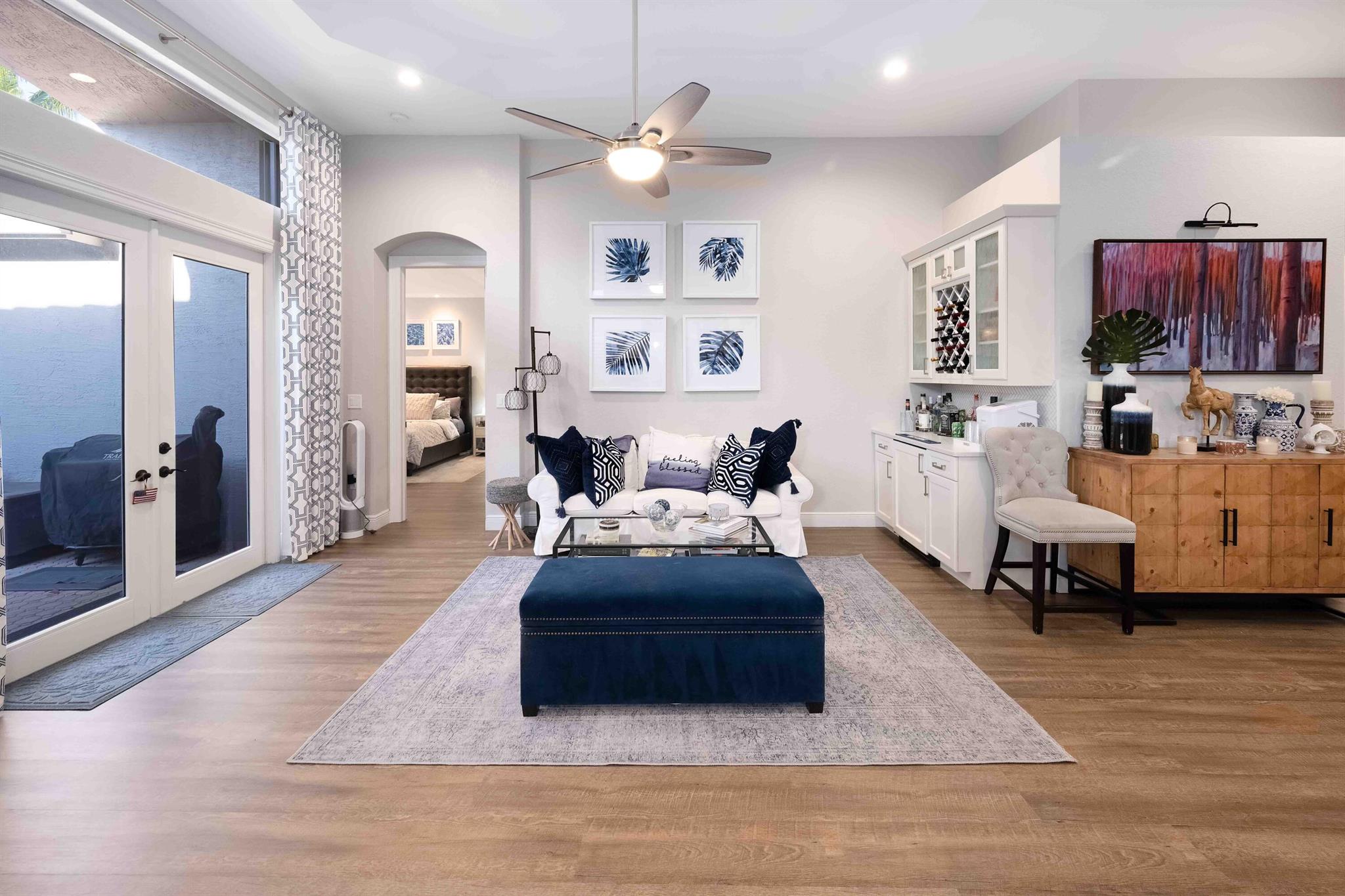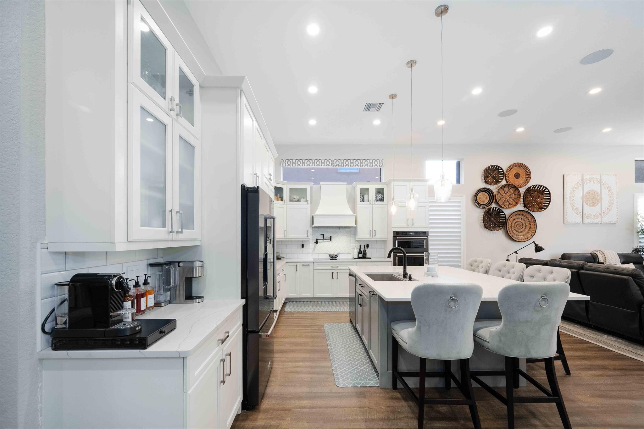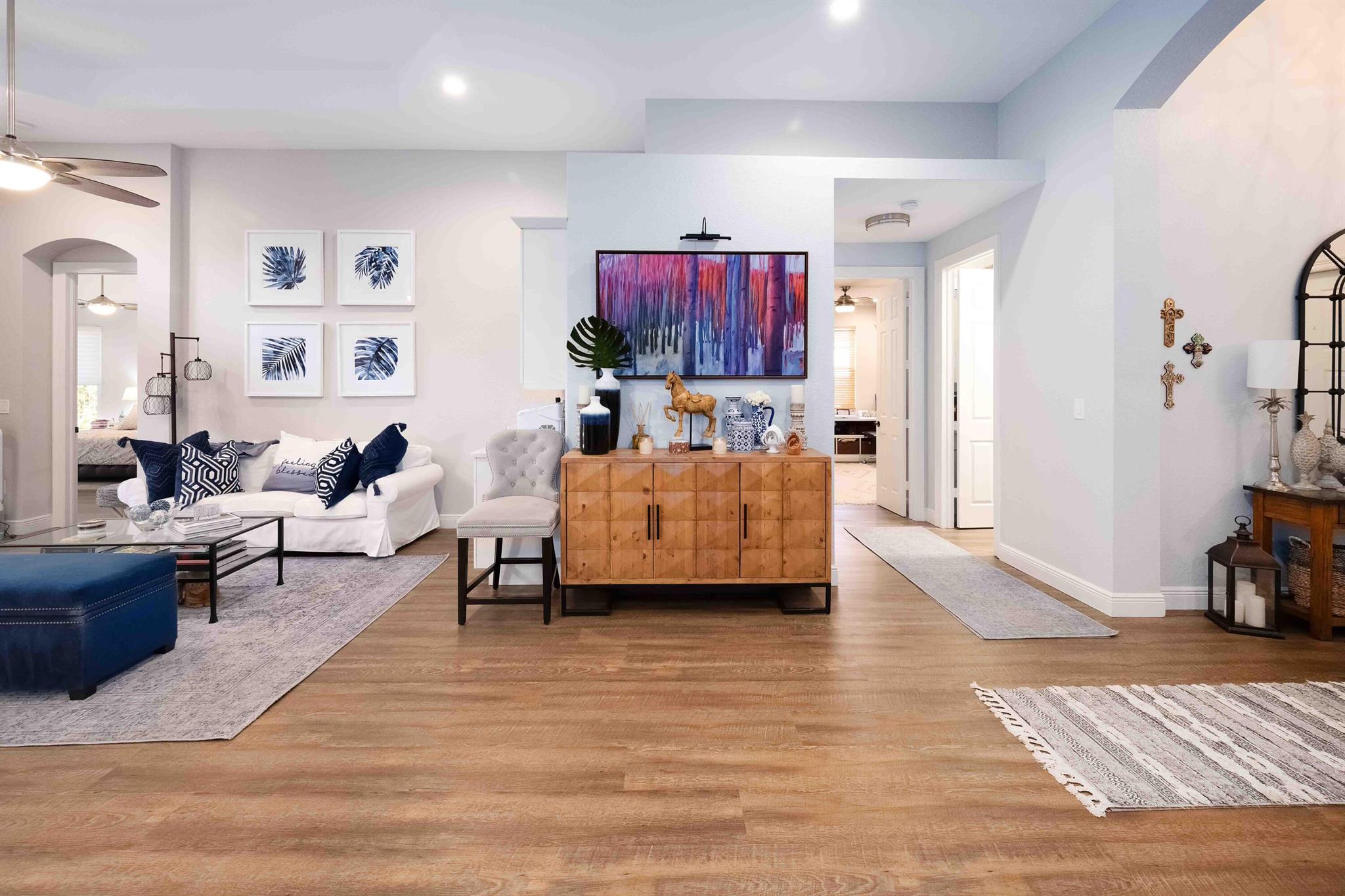 Stunningly updated 4-bedroom, 3-bath single-story home located in the highly desirable community of Saturnia. This beautiful residence features a new open-concept layout with several walls removed to create a more open feel, 2 newer ACs, stylish luxury vinyl flooring throughout, a completely renovated kitchen w/coffee bar and high-end appliances, updated baths, custom-fitted closets, and a large, fully fenced backyard--perfect for entertaining or relaxing in total privacy. A must-see with countless upgrades, ideally situated within walking distance to a top-rated elementary & middle school. Saturnia features a guard gate, full gym, clubrooms, kiddie playroom, har-tru tennis courts, within a short bike ride to a water park, amphitheater, dog parks, ball fields, pickle ball center and more!