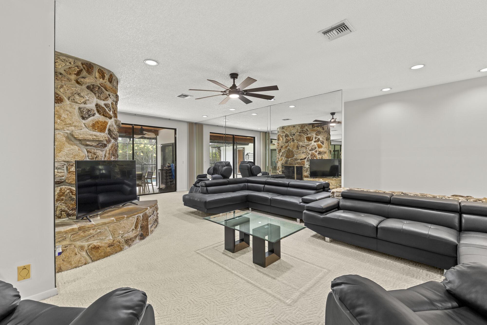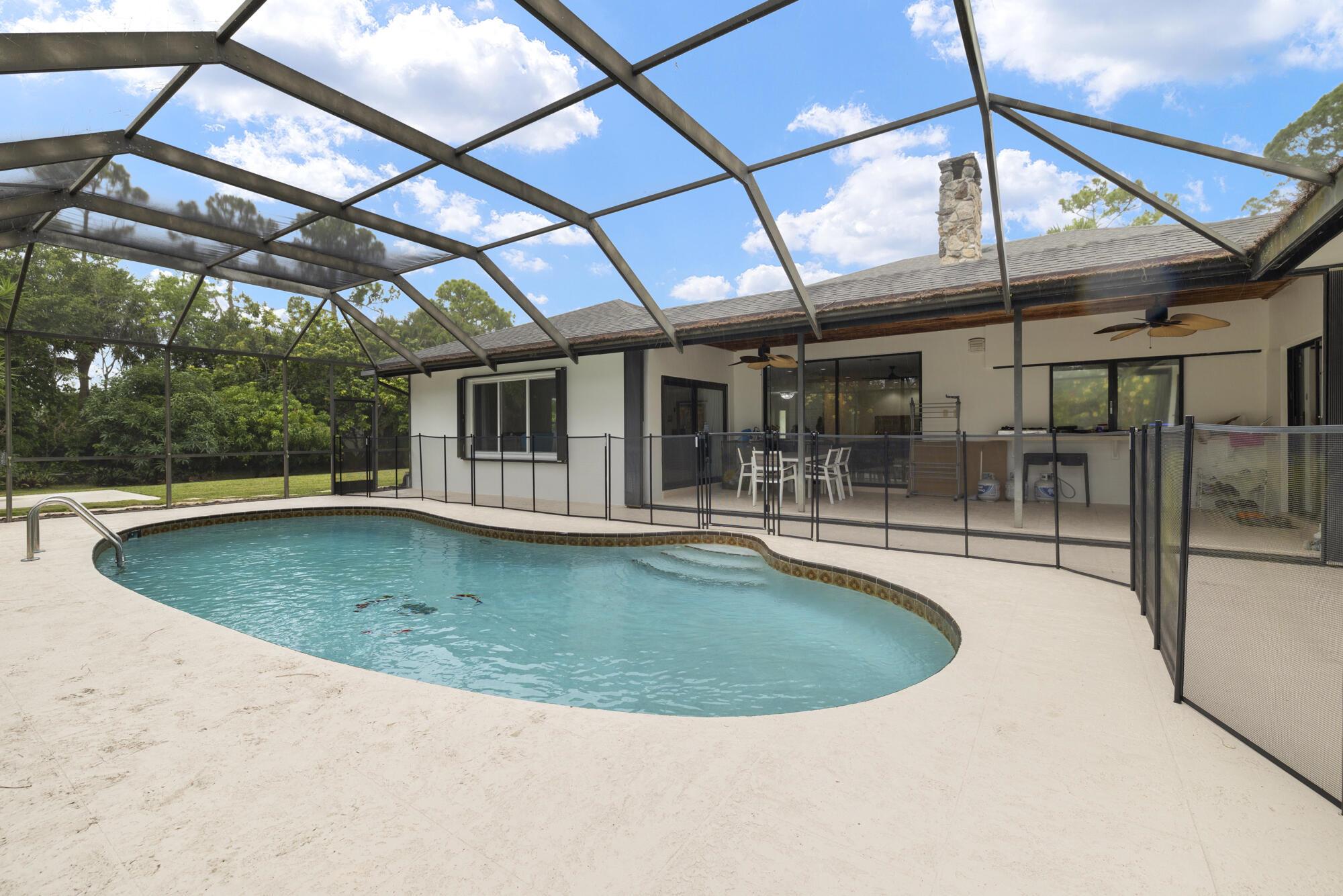 This stunning estate offers 5 oversized bedrooms, a flex room that can be converted into your sixth bedroom, 2 living rooms, renovated kitchen, fireplace, formal dining room, cabana bath, and separate laundry room--all across 4,100+ sq ft of living space. Oversized primary bedroom and bathroom with dual sinks and soaking tub. Situated on a 1.1-acre lot, the home features a screened, heated pool and a huge backyard ideal for birthdays, and entertaining. The home also includes impact windows, a new roof (2022), (2019) A/C, and a generator hook up. Enjoy a dramatic extended driveway with ample parking for guests, plus a 2-car garage. Surrounded by rare flowering plants and mature fruit trees including mango, avocado, papaya, lychee, sugar apple, and coconut, plus a vegetable garden.