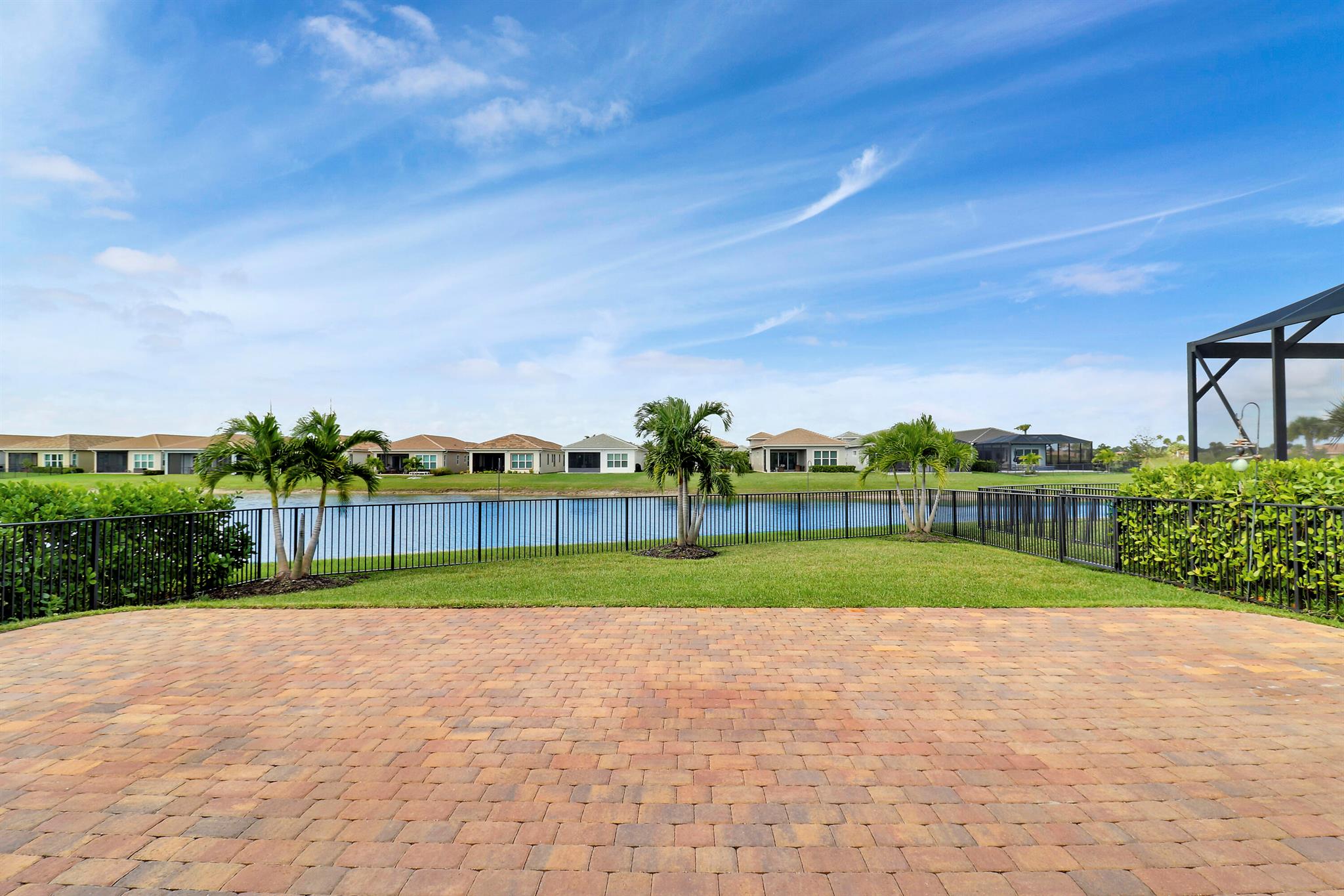 DEEP LAKE FRONT LOT ON A CUL-DE-SAC WITH A SPACIOUS, FENCED BACK YARD AND A THREE CAR GARAGE IN THE RESORT STYLE 55+ NEIGHBORHOOD OF CRESSWIND AT VERANO! Don't miss this tastefully upgraded home that is completely move-in ready! This 2BR+Den/2BA/3CG 'Isabella' floor plan was built in 2022 and is brimming with practical and stylish upgrades including decorative stone work on the front exterior, impact glass windows & doors, an oversized fenced yard, extended paver patio, glass entry front door, wallpaper accent wall, upgraded light fixtures t/o, hihat lighting in almost all the rooms, wood-look plank flooring through the main living areas & den, plush carpeting in the bedrooms, upgraded tiled bathrooms and more.