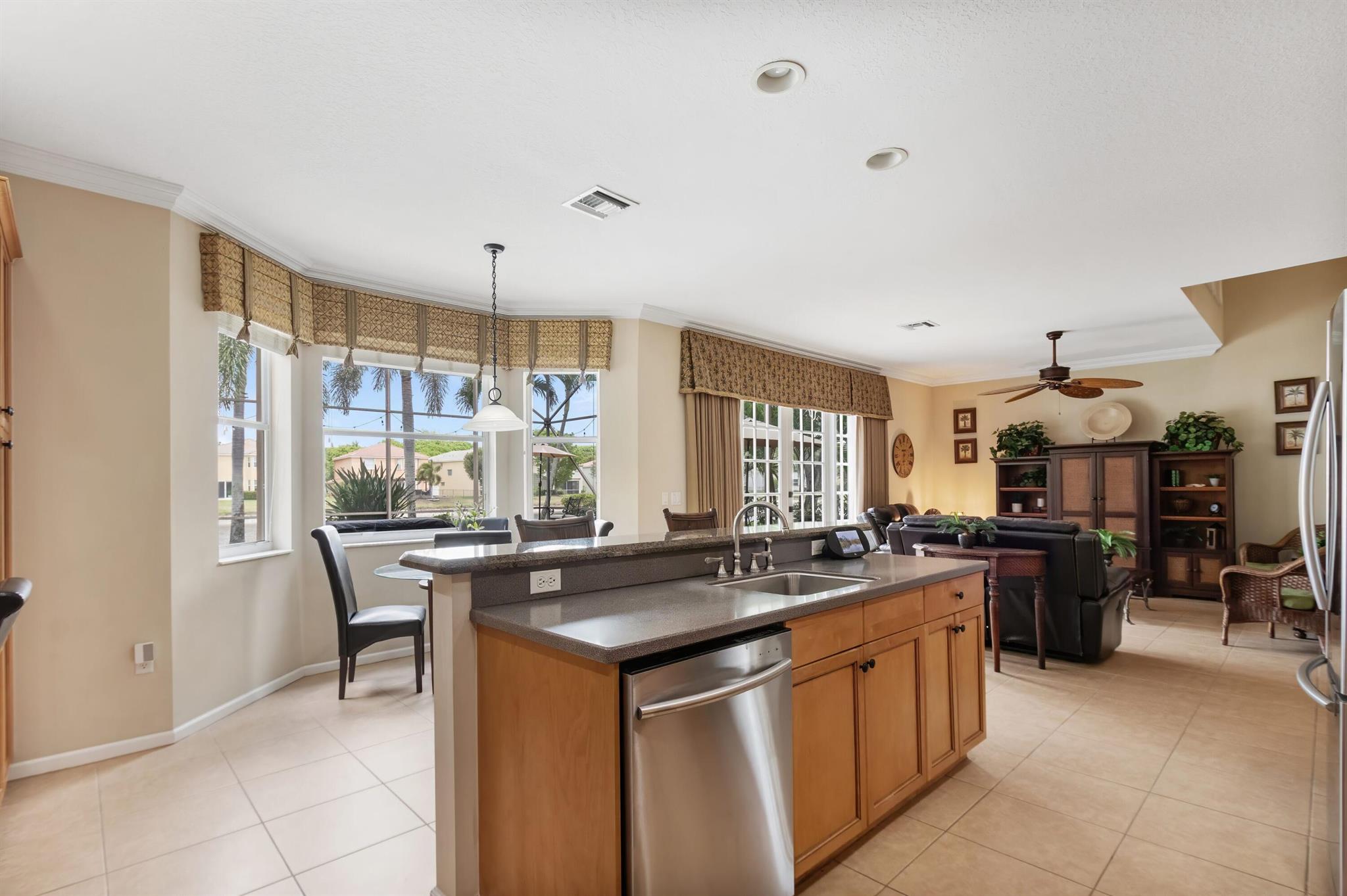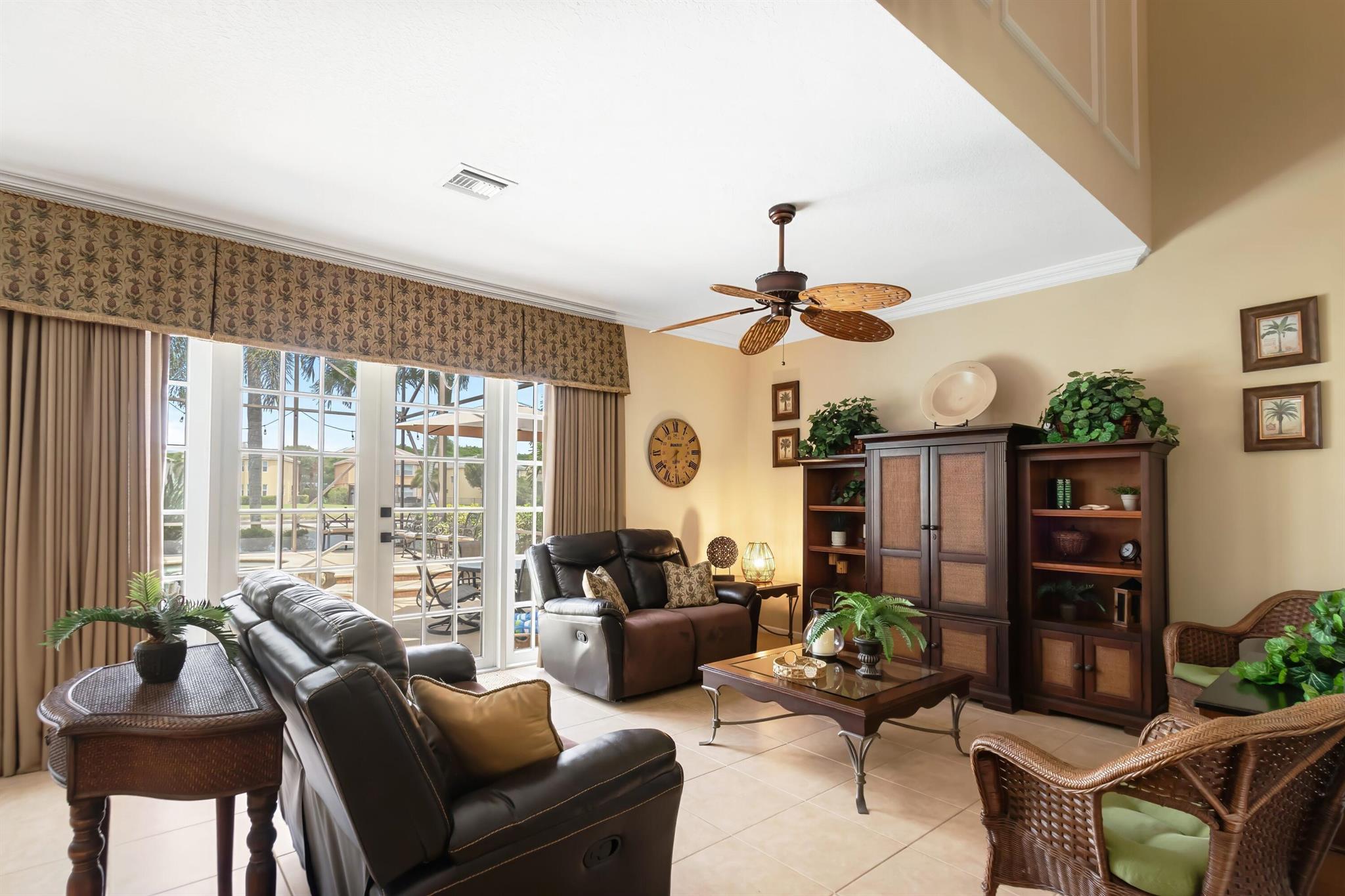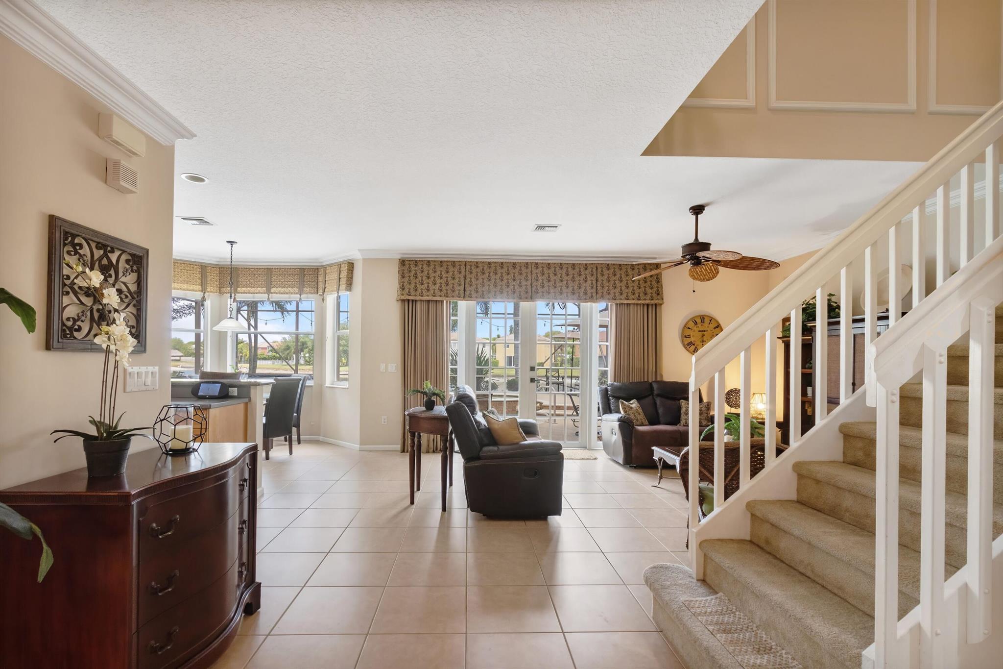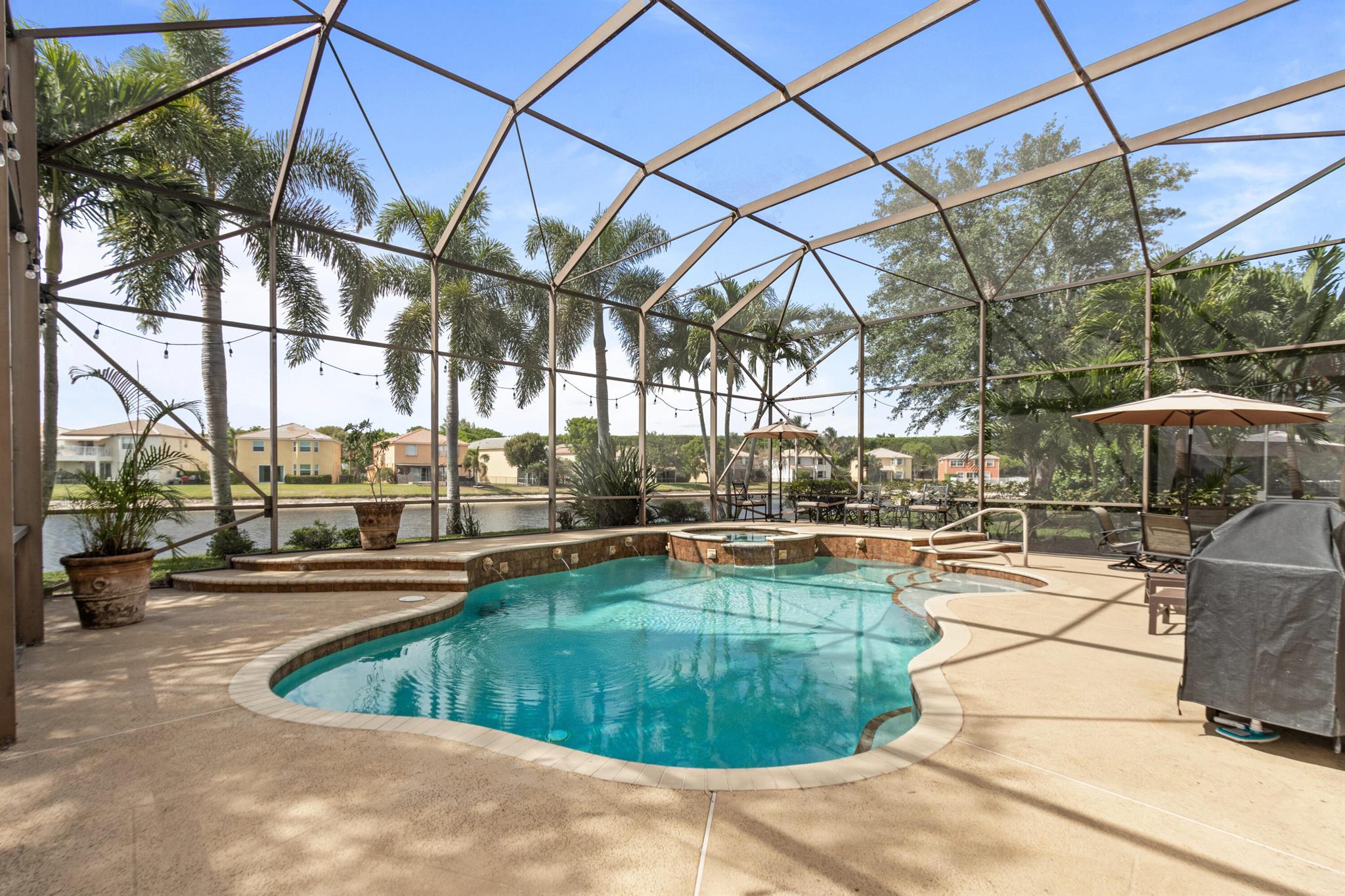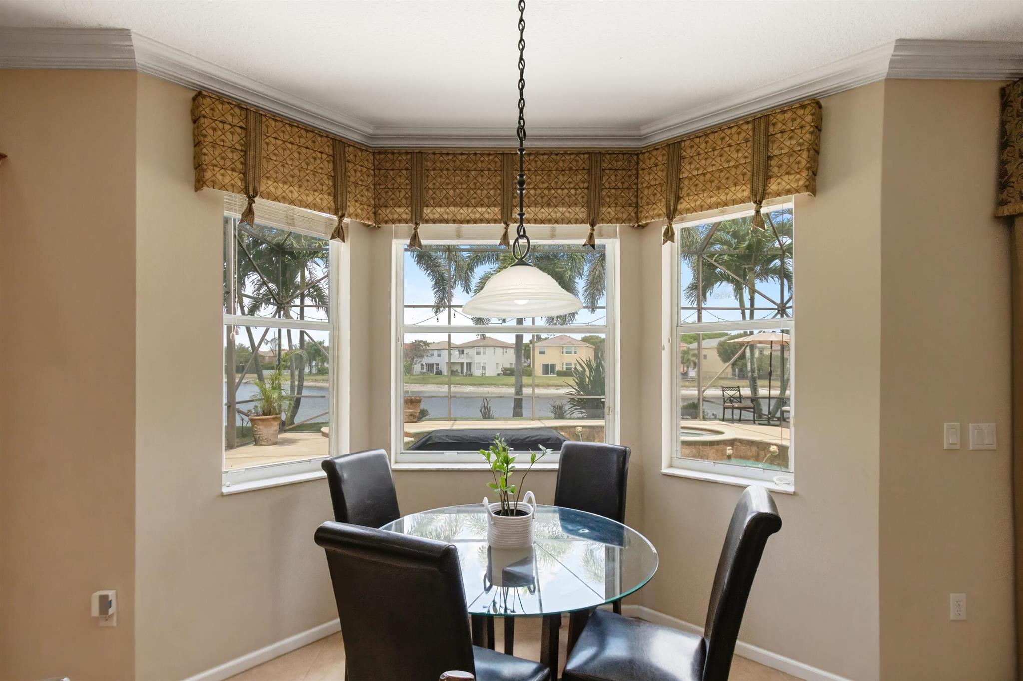 Welcome to Wellington's prestigious and premier resort style community Olympia! You can enjoy paradise living in this over 3300 til sq. ft. Cordova 5 bedroom home with the most gorgeous oversized pool, spa, and water feature on the lake situated for the most stunning sunsets! The yard is truly a vacation from reality and the reason we live in Florida, enjoy your private tropical landscaped oasis, you deserve it! One of my favorite features if the huge screen enclosure making your outdoor living enjoyable and bug free. This home is designed for entertaining with indoor and outdoor space becoming one. Main floor includes formal dining, living, family, and eat in kitchen as well as a huge island for gathering friends.