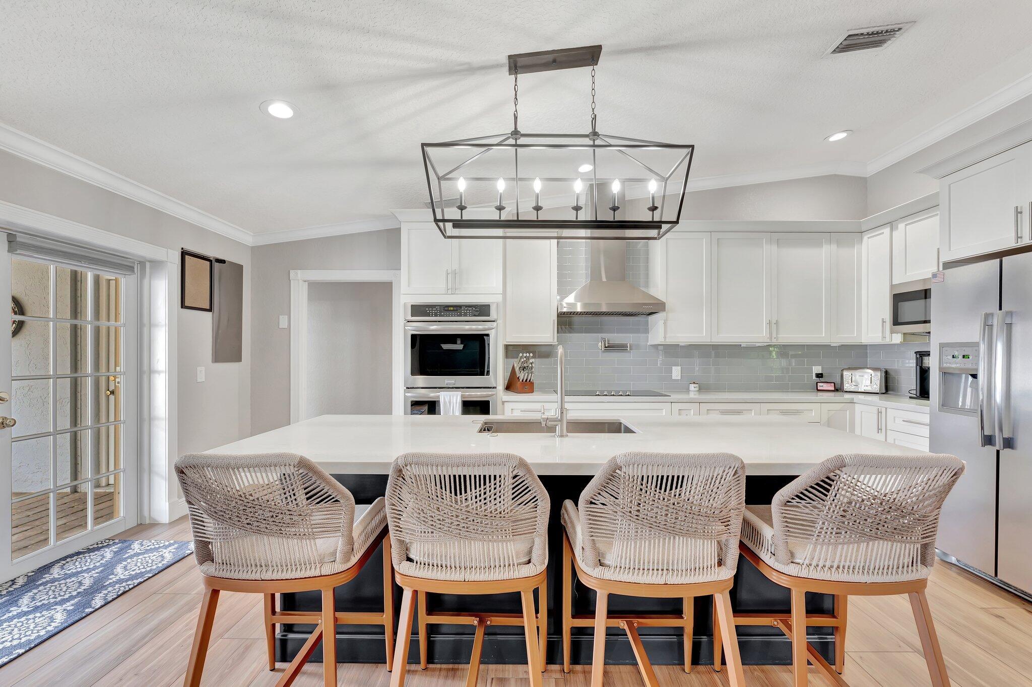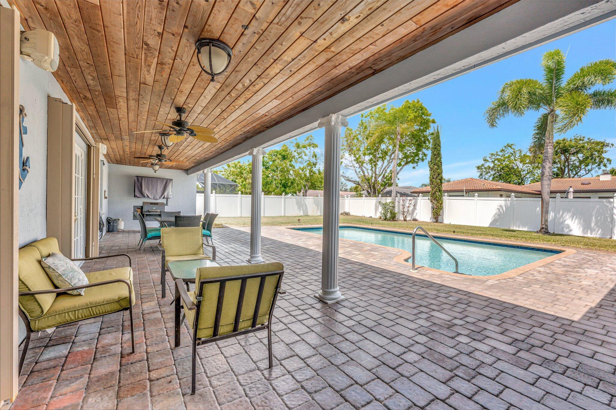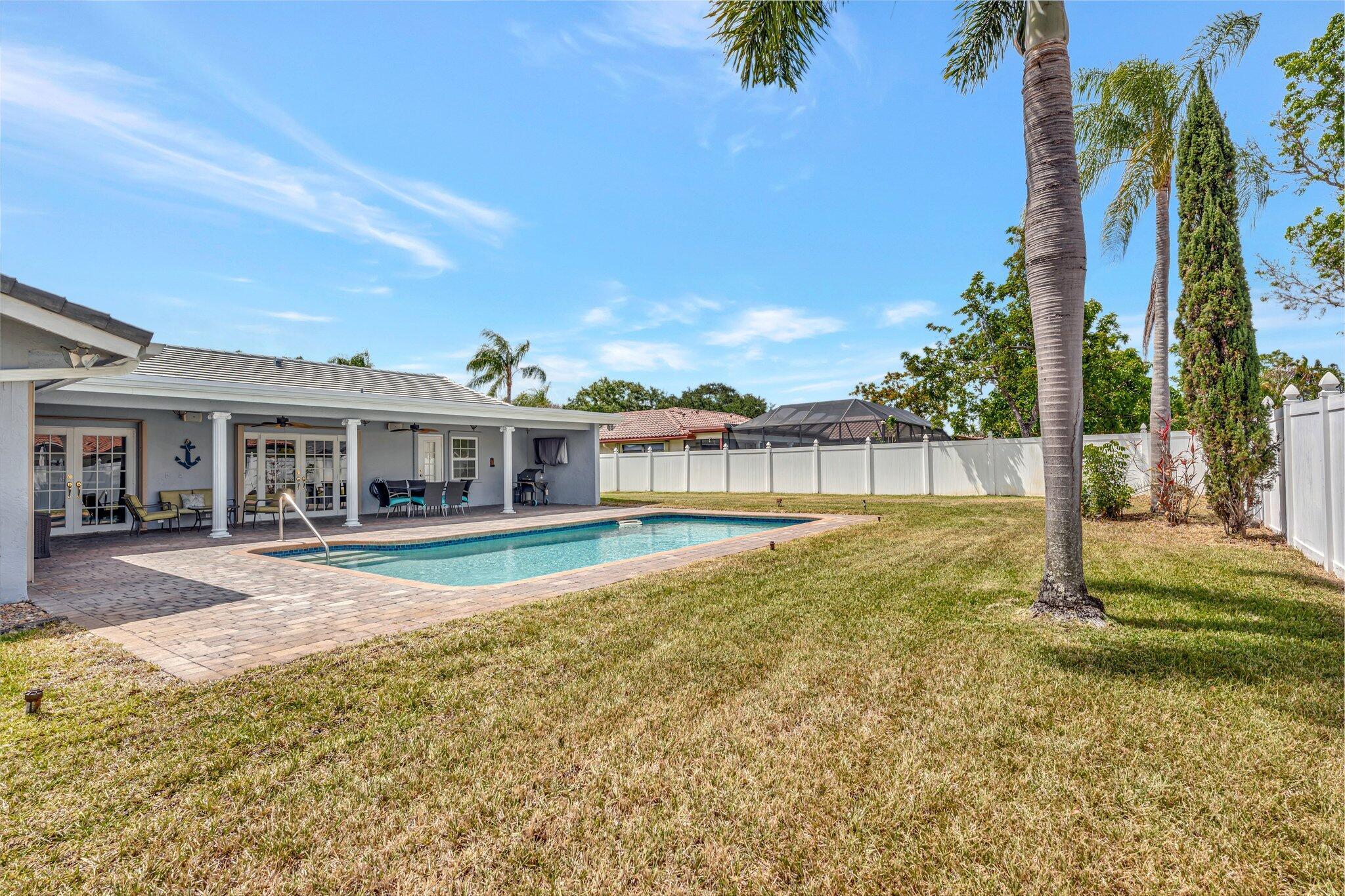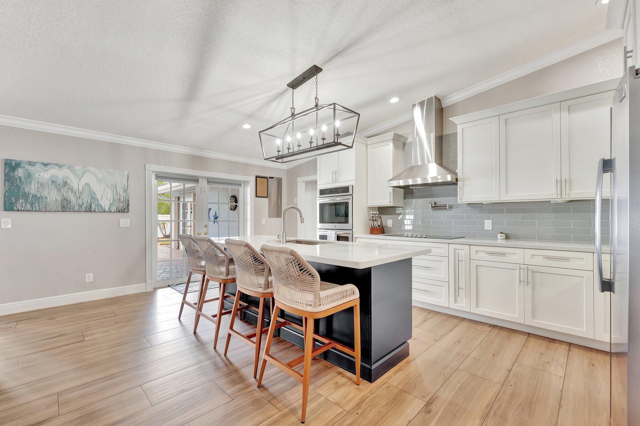 Welcome to this beautifully updated pool home on a huge corner lot with NO HOA! This home is built for family fun & entertaining! Featuring a gorgeous kitchen with double wall ovens, professional hood vent, custom cabinetry and large island. Open layout to spacious family room with vaulted ceilings, plus French doors to the patio and pool. Wood-look tile flooring throughout common areas. Split floor plan. Primary bedroom has walk-in closet and cabana bath. Roof and gutters replaced in 2024, AC 2022, pool pump 2017, electrical panel 2014. Fully protected with accordion and panel shutters for hurricane season. Conveniently located across the street from Whispering Oaks park, and just minutes to shopping and restaurants on Atlantic Blvd and University Dr.