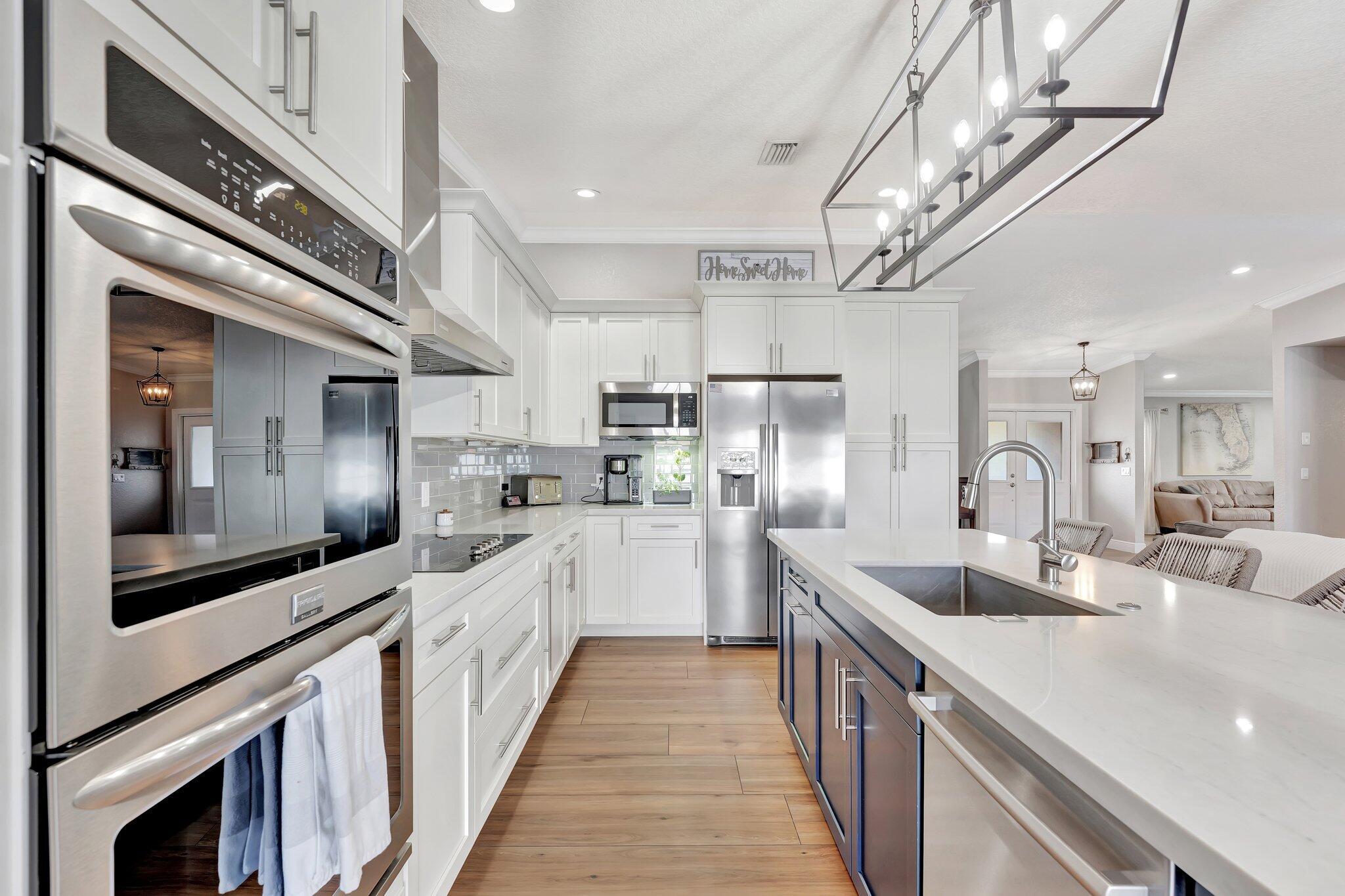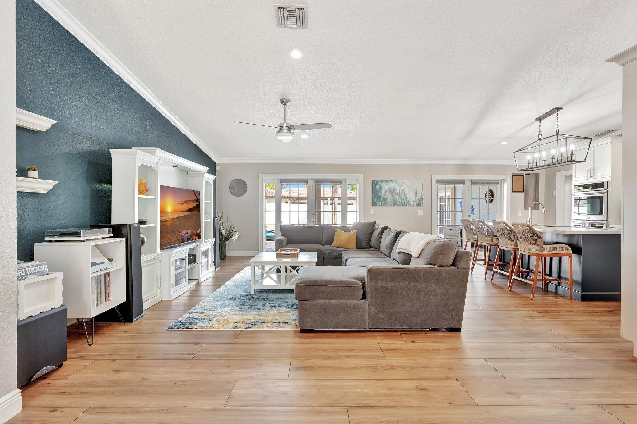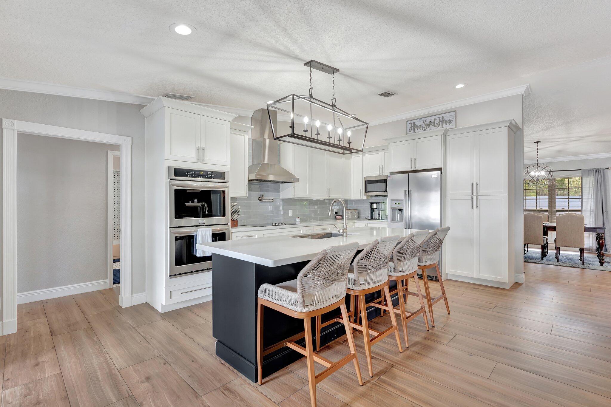 Welcome to this beautifully updated pool home on a huge corner lot with NO HOA! This home is built for family fun & entertaining! Featuring a gorgeous kitchen with double wall ovens, professional hood vent, custom cabinetry and large island. Open layout to spacious family room with vaulted ceilings, plus French doors to the patio and pool. Wood-look tile flooring throughout common areas. Split floor plan. Primary bedroom has walk-in closet and cabana bath. Roof and gutters replaced in 2024, AC 2022, pool pump 2017, electrical panel 2014. Fully protected with accordion and panel shutters for hurricane season. Conveniently located across the street from Whispering Oaks park, and just minutes to shopping and restaurants on Atlantic Blvd and University Dr.