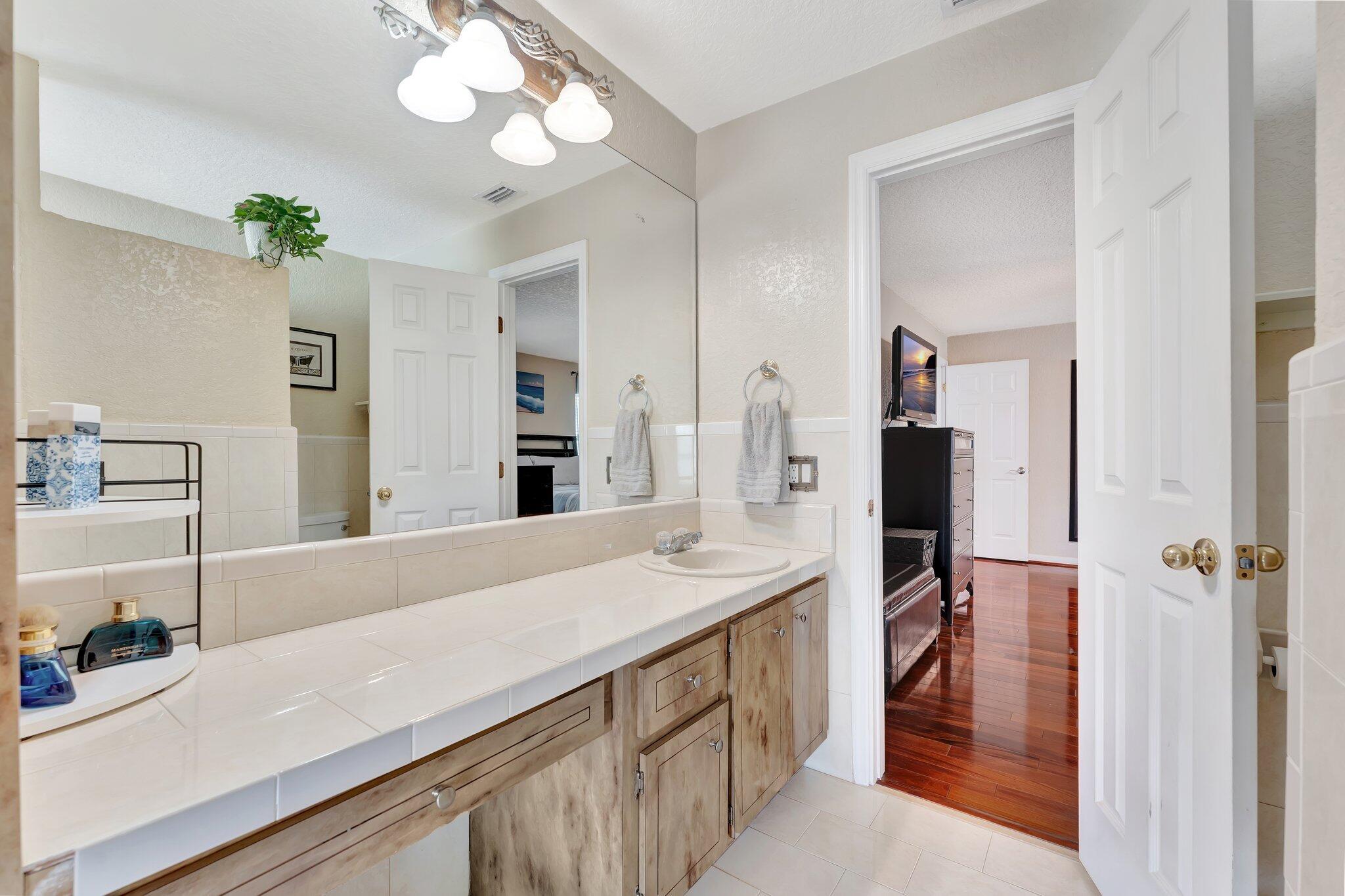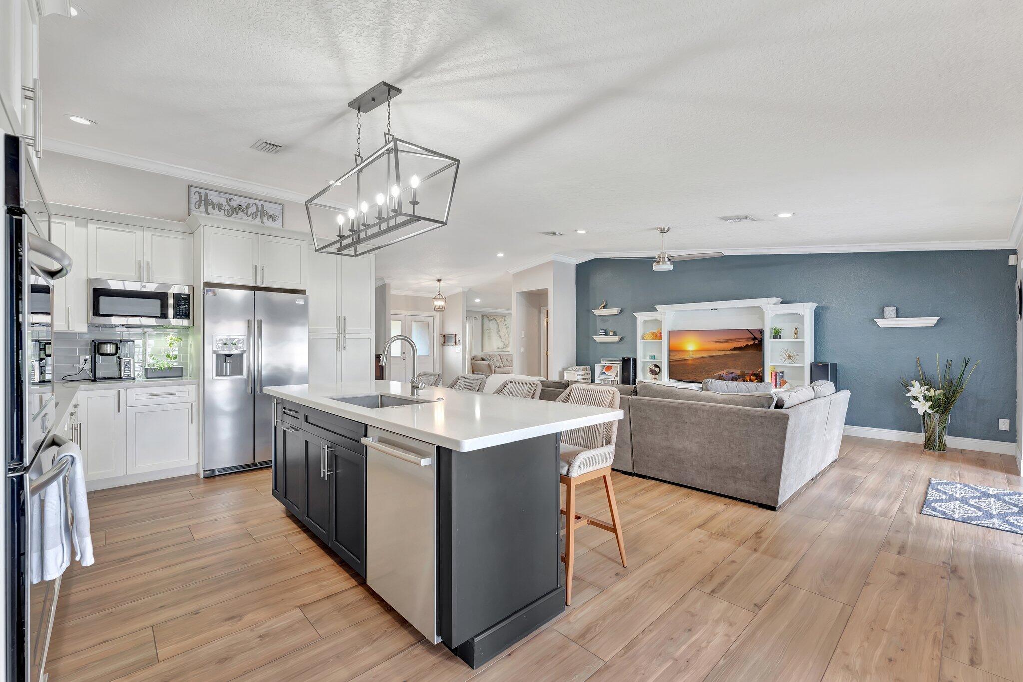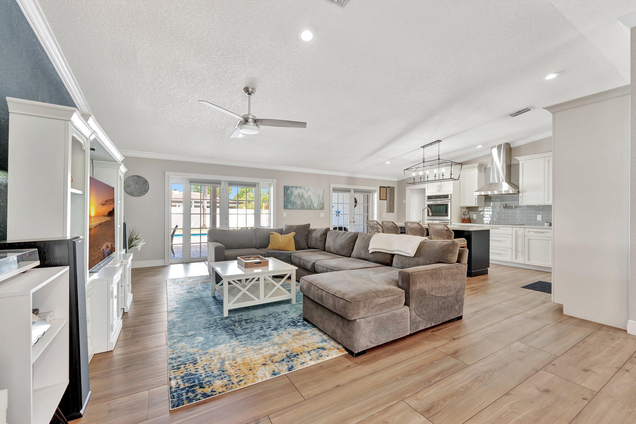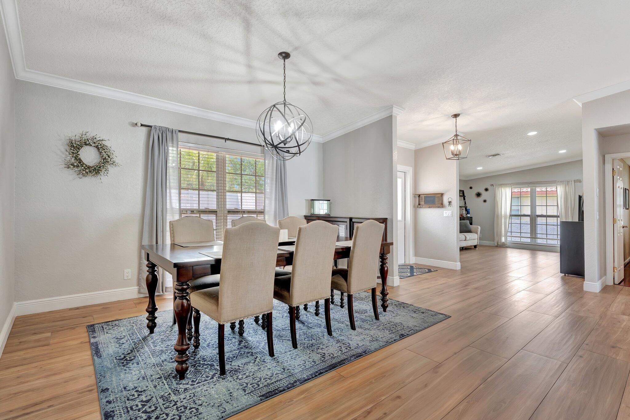 Welcome to this beautifully updated pool home on a huge corner lot with NO HOA! This home is built for family fun & entertaining! Featuring a gorgeous kitchen with double wall ovens, professional hood vent, custom cabinetry and large island. Open layout to spacious family room with vaulted ceilings, plus French doors to the patio and pool. Wood-look tile flooring throughout common areas. Split floor plan. Primary bedroom has walk-in closet and cabana bath. Roof and gutters replaced in 2024, AC 2022, pool pump 2017, electrical panel 2014. Fully protected with accordion and panel shutters for hurricane season. Conveniently located across the street from Whispering Oaks park, and just minutes to shopping and restaurants on Atlantic Blvd and University Dr.