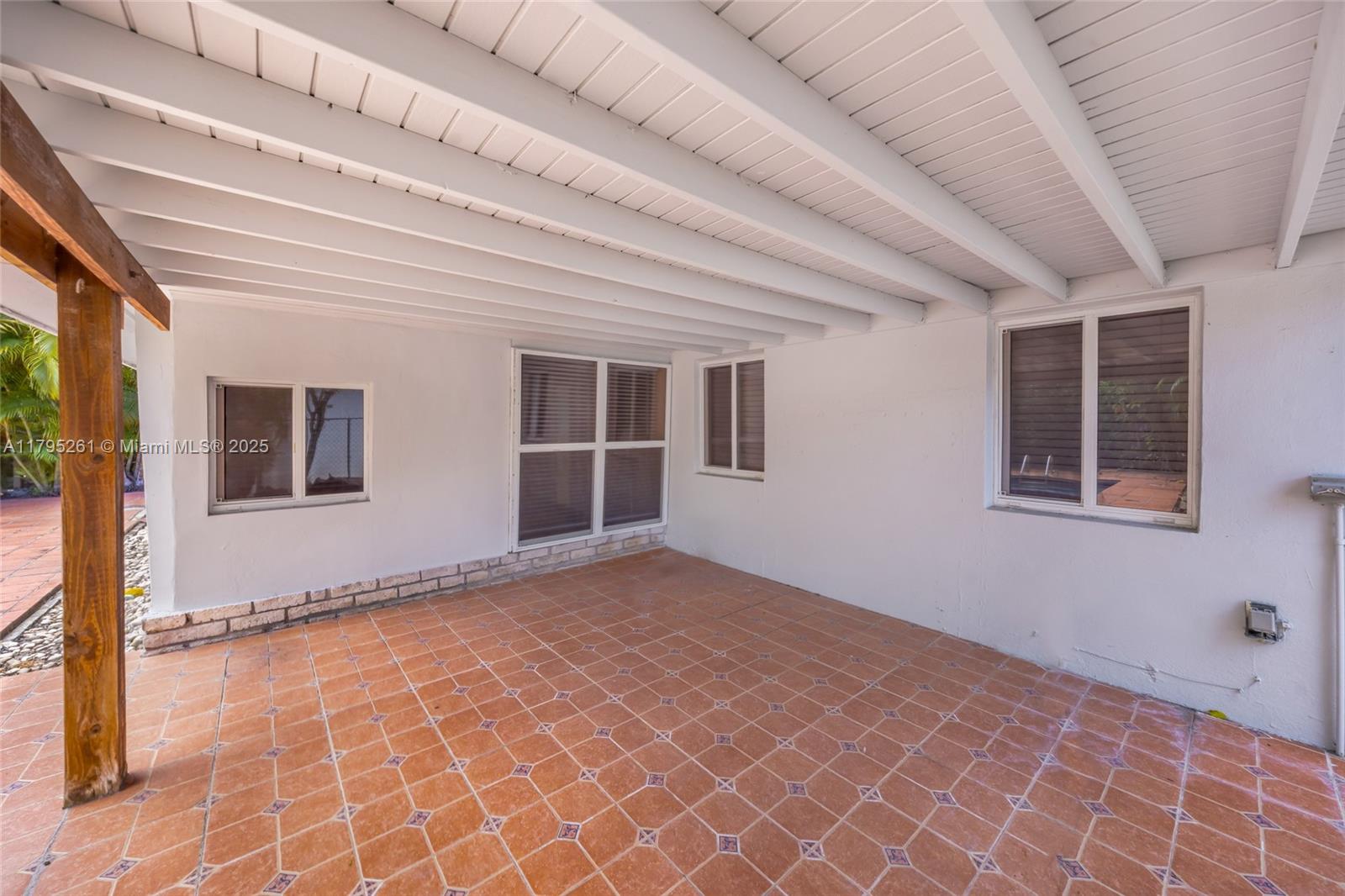 Located in the guard-gated community of Normandy Shores, this 3-bedroom, 2-bath home offers a spacious layout and plenty of potential. Residents enjoy 24/7 security and access to community amenities including golf, tennis courts, basketball court and a children’s play area. The home features tile flooring throughout, updated bathrooms, and upgraded plumbing and electrical systems. Impact windows offer added peace of mind. Inside, you’ll find a spacious living room, open dining area, and a well-sized kitchen, plus a bright Florida room. The converted garage provides additional storage and a utility room. A private backyard with a pool completes this inviting home which is located just minutes from the beach.
