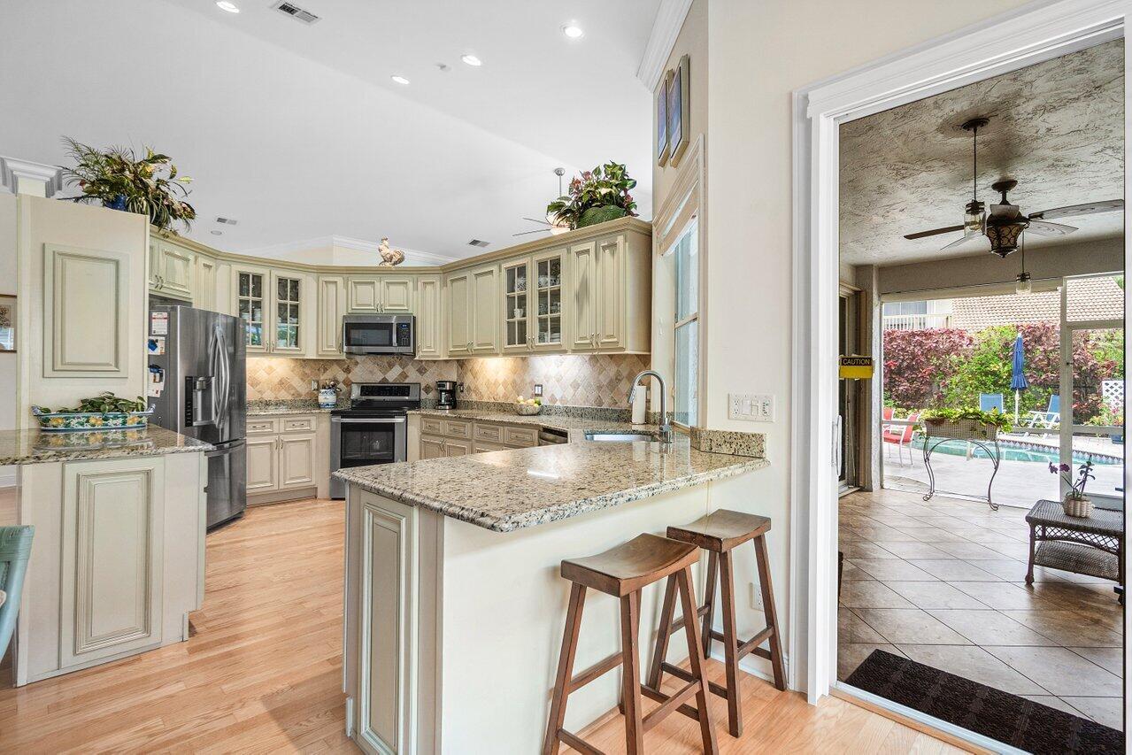 Lowest Priced Home in Ironhorse! New to the market sits this spacious single-story 3 bedroom / 2 bath pool home, located in the Prestigious Ironhorse Community where golf & social memberships are optional. Accordion storm shutters, updated kitchen, split floor plan, primary suite with dual sinks, soaking tub, separate shower & a cabana bath convenient for those Florida pool days! Roof replaced in 2020. NO HOA Approval Needed!