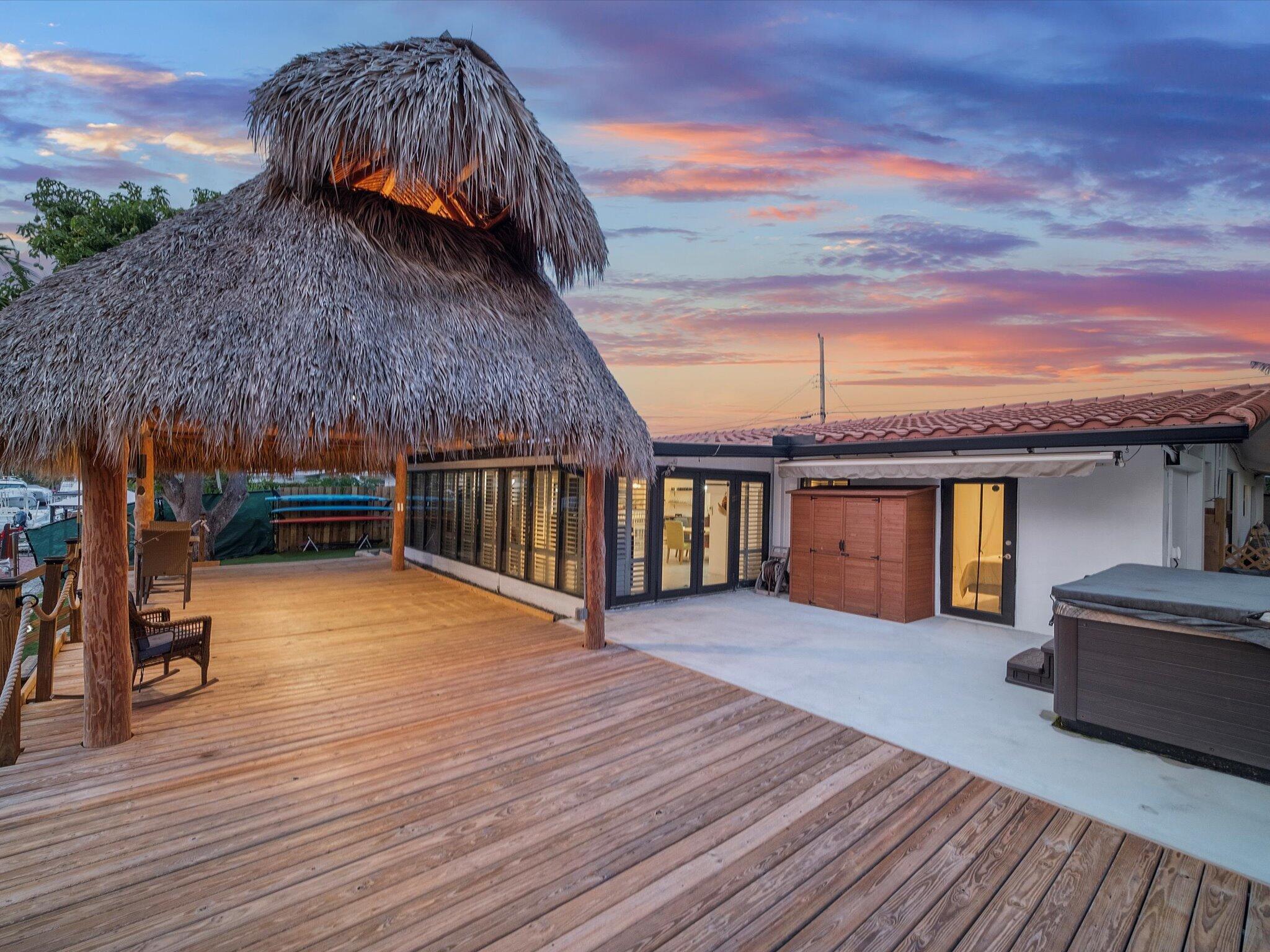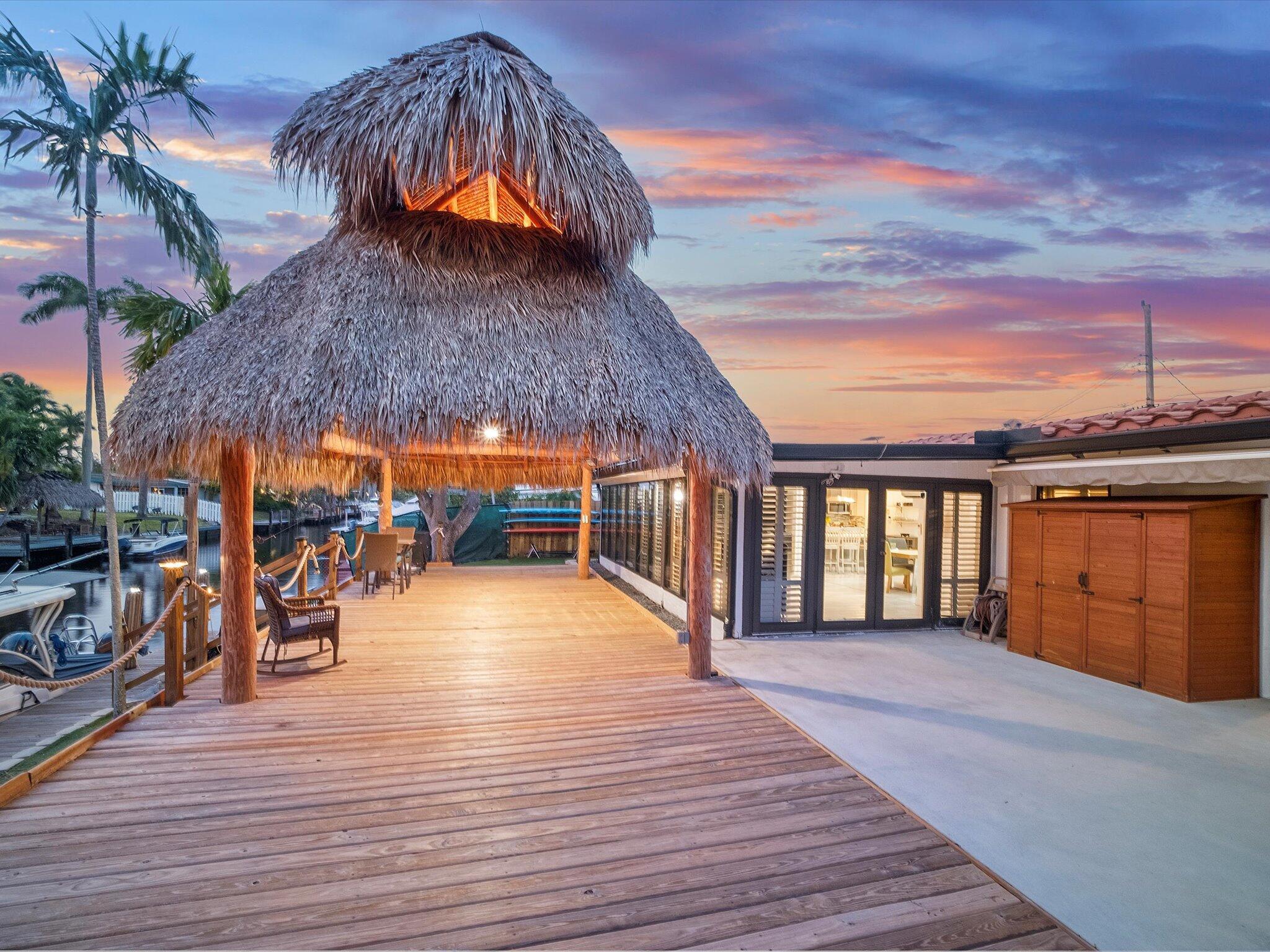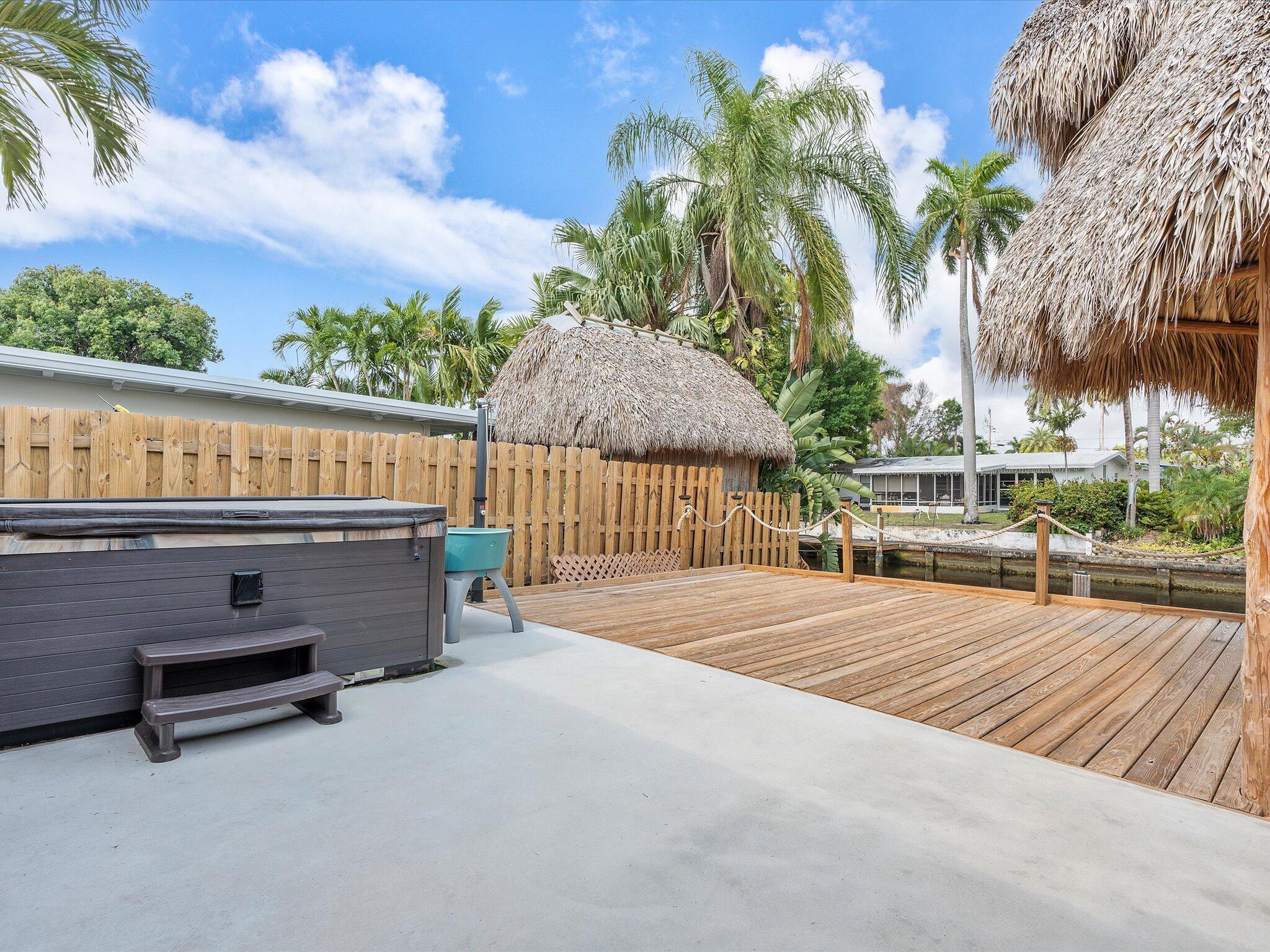 Walk into a home with immediate equity, priced $90K below recent bank appraisal ! Welcome to your slice of paradise! This stunning property boasts unparalleled ocean access with no fixed bridges, allowing you to explore the open water with ease. Nestled on a very wide and deep canal, this property can accommodate an array of water toys. Step outside to discover a backyard oasis, complete with a fenced tropical paradise featuring a soothing spa/jacuzzi and a captivating Tiki Hut equipped with electricity and fixed heaters, perfect for entertaining year-round. All windows and doors are impact-resistant, providing peace of mind during stormy weather. Inside, the interior is equally impressive, featuring