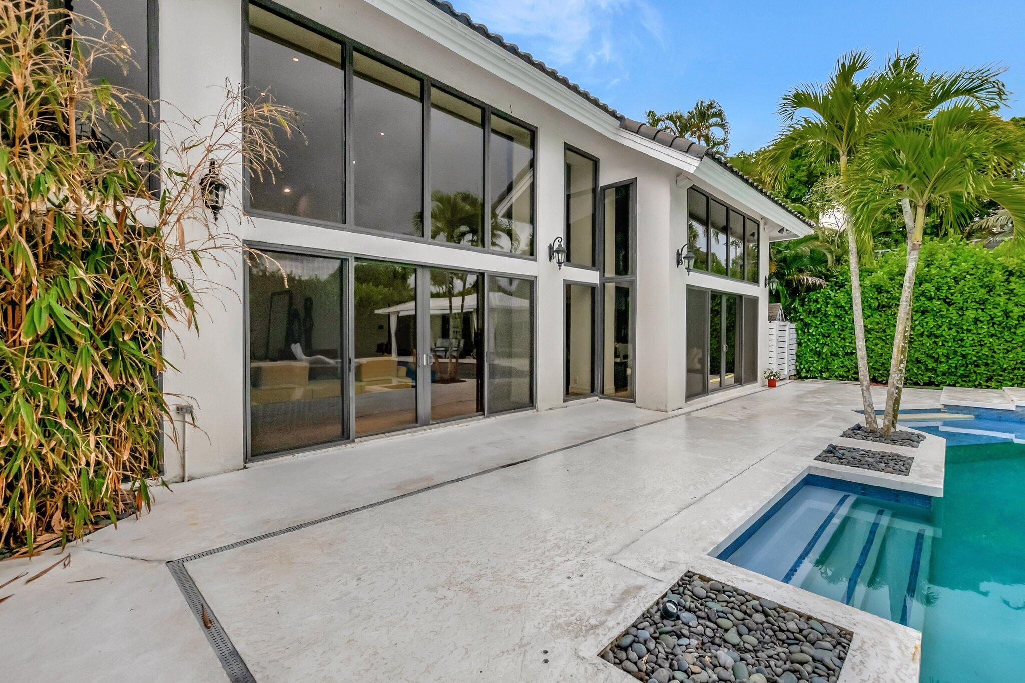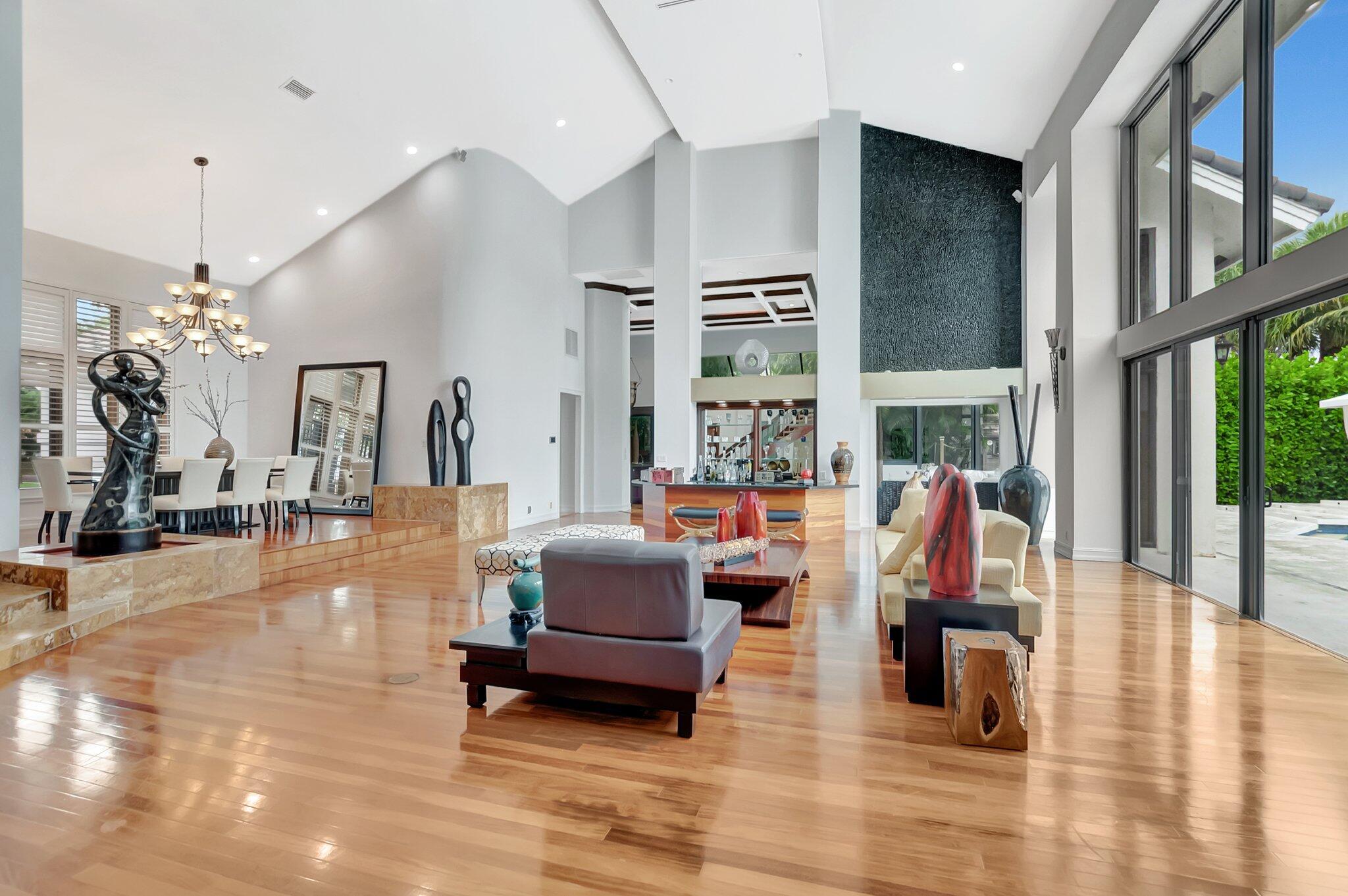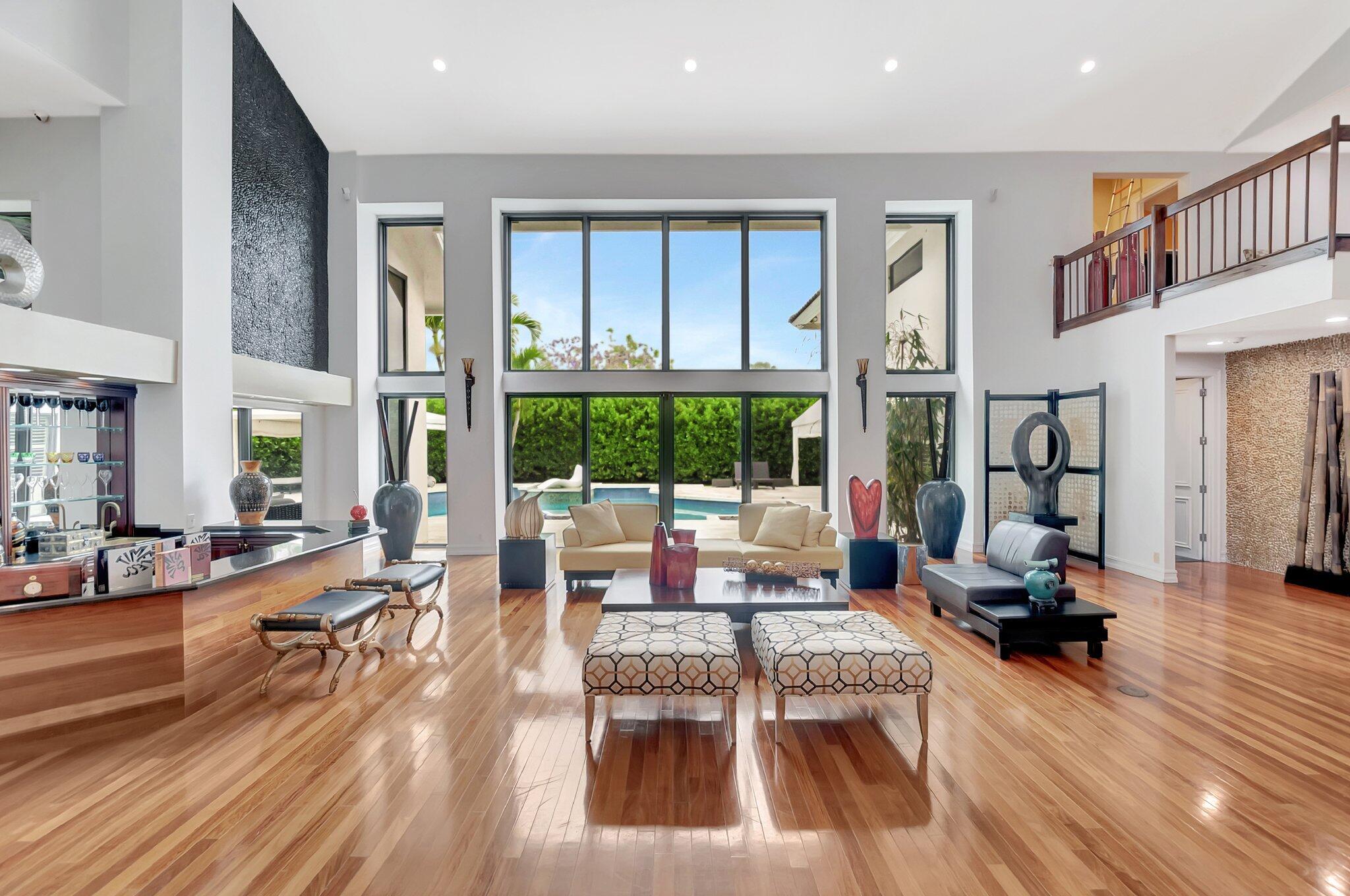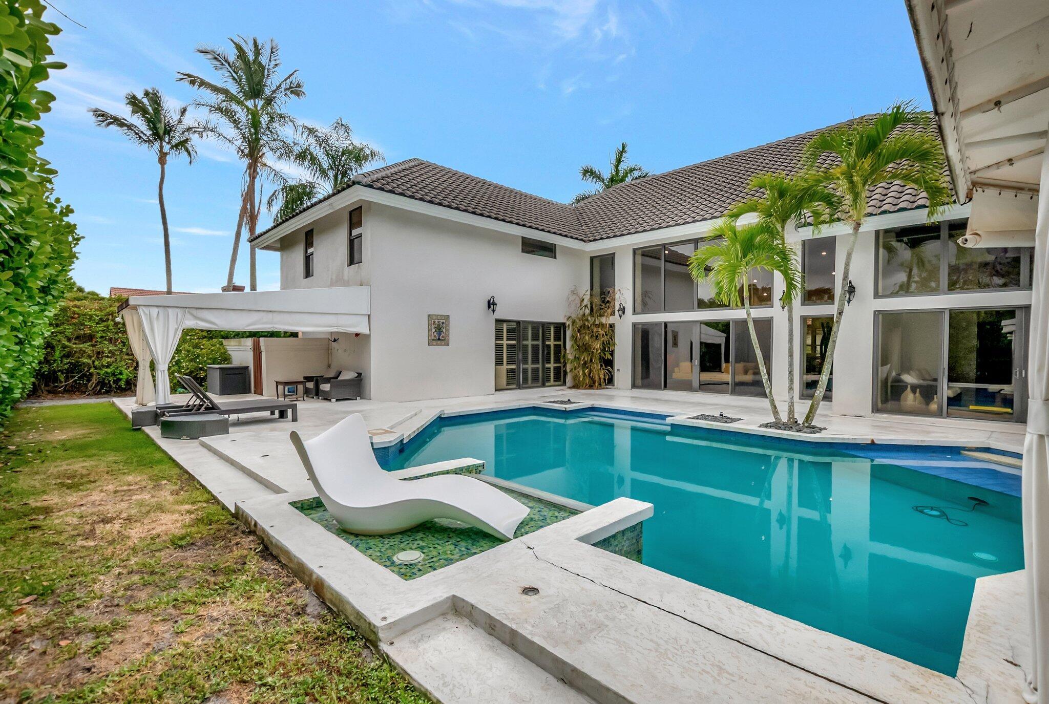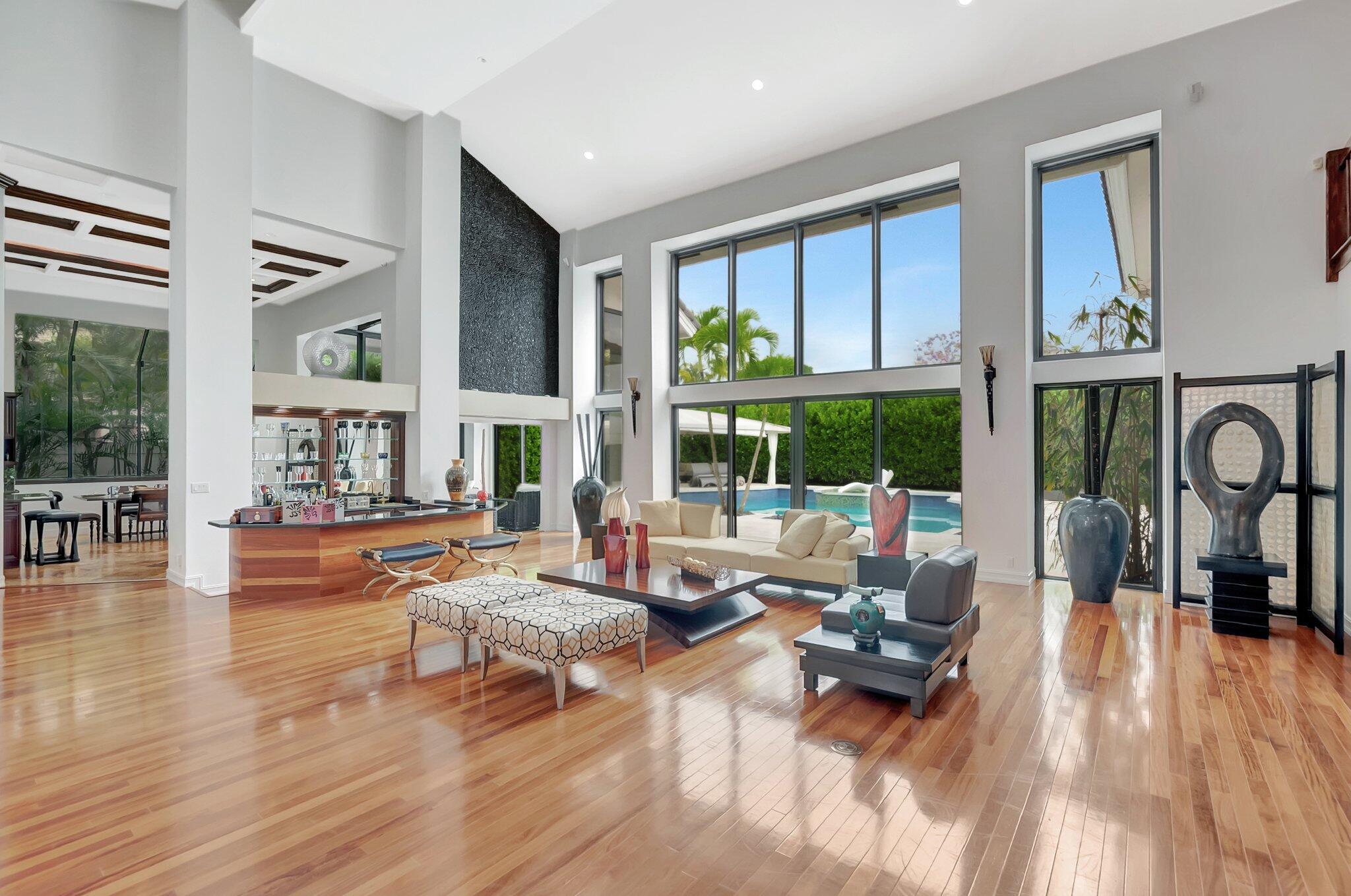 A spectacular resort-style estate in the prestigious Bermuda Run village within Broken Sound. This custom 5-bed, 5.5-bath home offers 5,501 sq ft of luxury, including a 2.5-car garage and impact windows and doors. Enter through grand double wooden doors into a sunlit interior with soaring 25-foot ceilings and expansive windows framing lush greenery, blending indoor elegance with the outdoors. Perfect for entertaining, the open layout includes living/dining areas, spacious family room, wet bar and large media/bonus room. The kitchen features a gas stove, S/S appliances, large island and breakfast nook. The ground-level primary suite is a private retreat with his-and-hers custom bathrooms and closets. Outside, enjoy custom covered patios and saltwater pool--ideal for stylish relaxation.