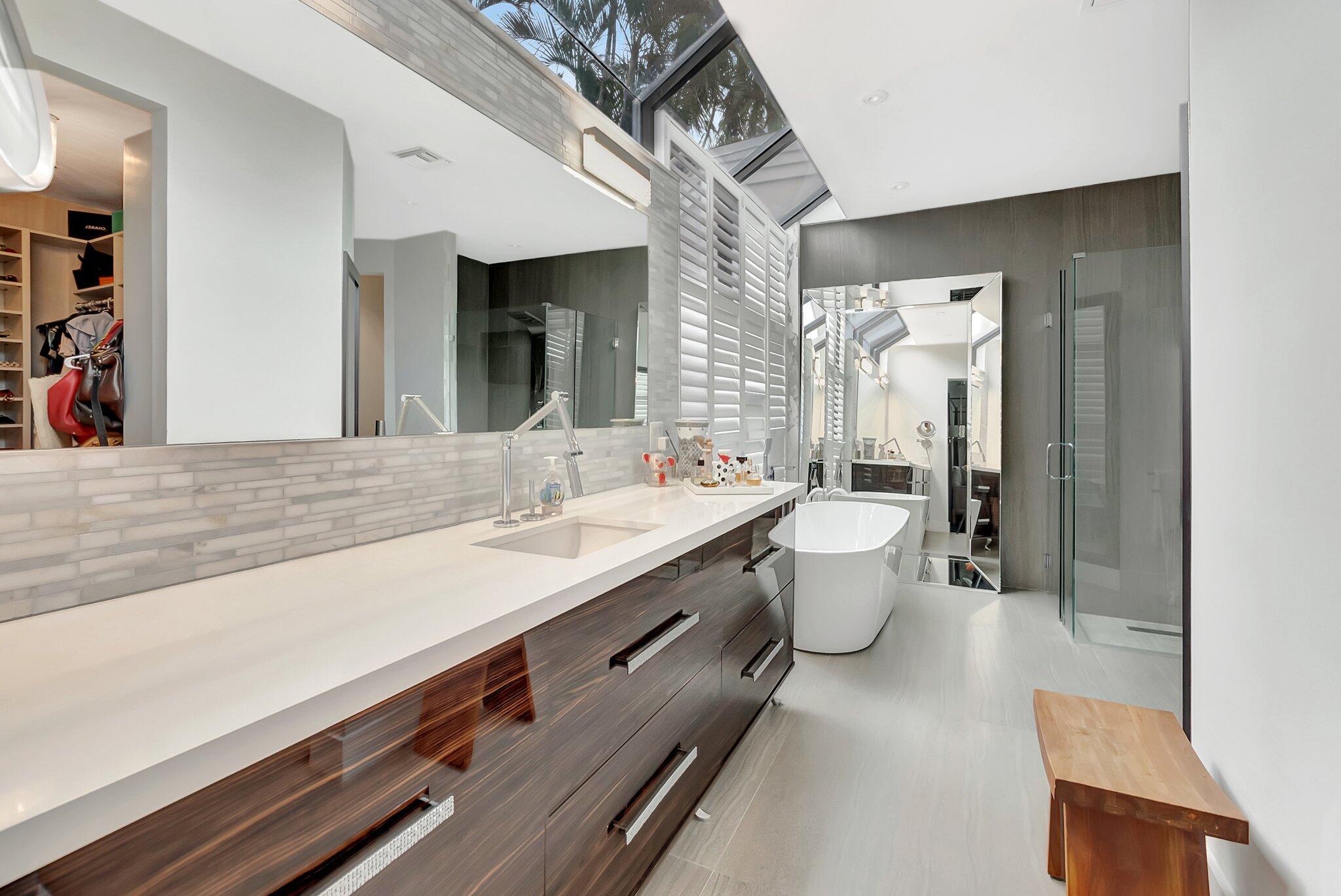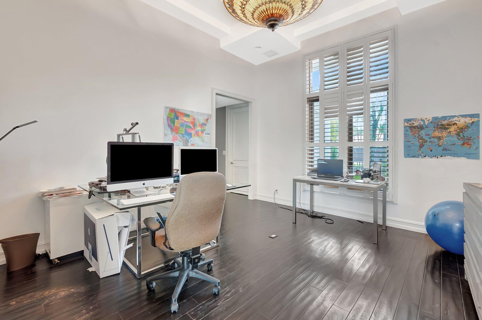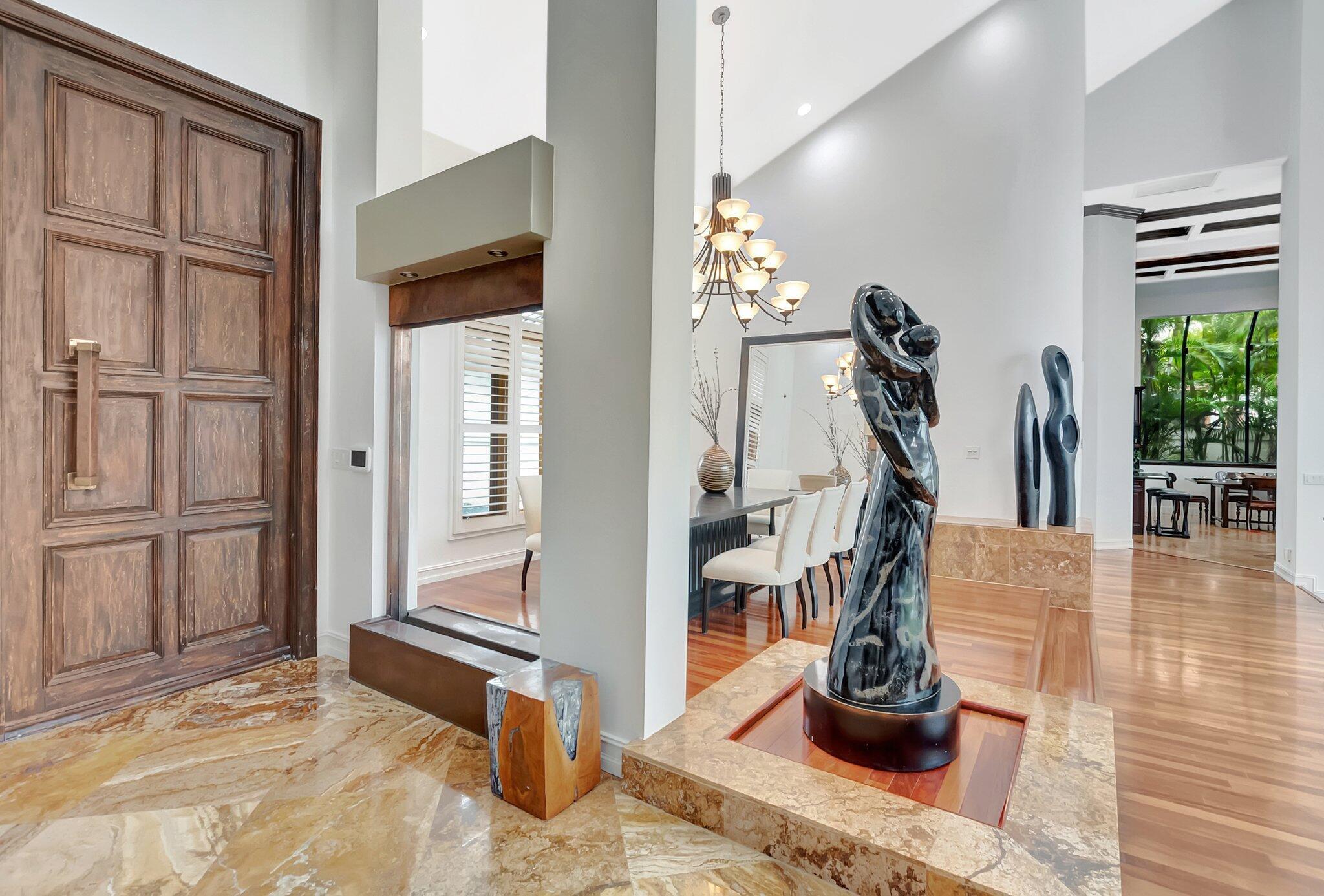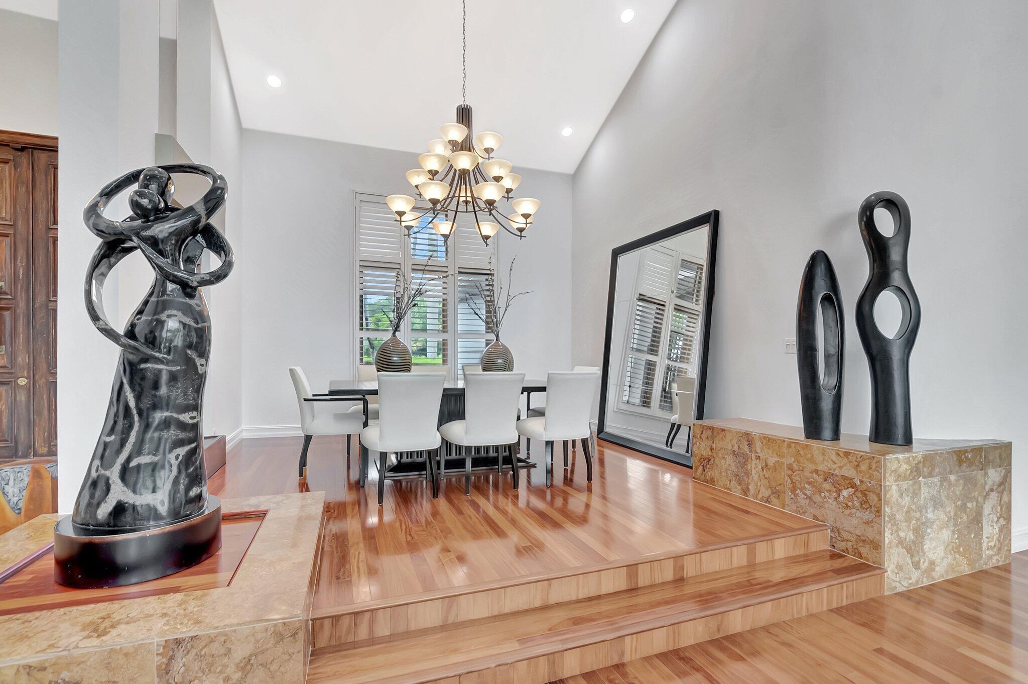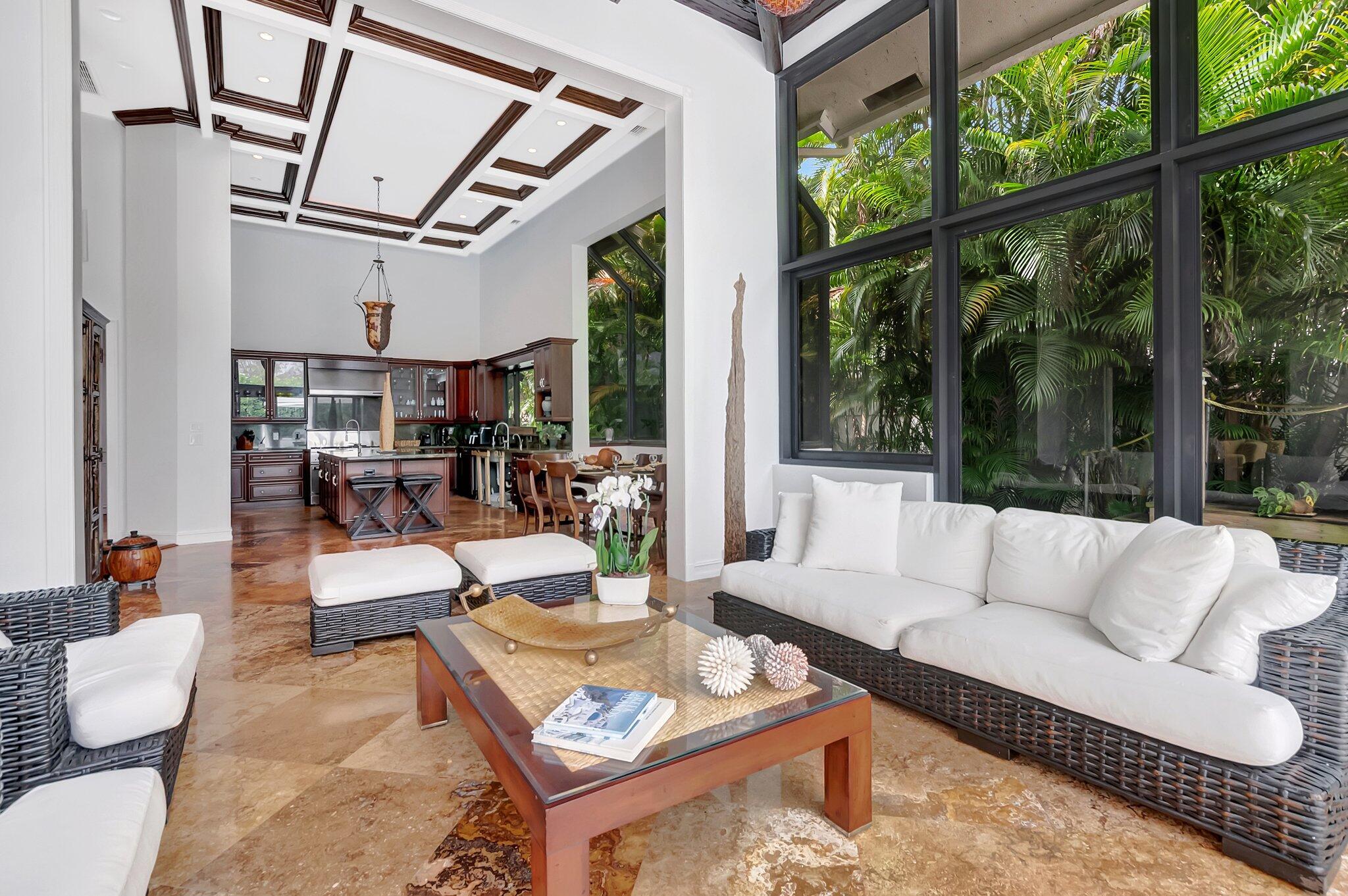 A spectacular resort-style estate in the prestigious Bermuda Run village within Broken Sound. This custom 5-bed, 5.5-bath home offers 5,501 sq ft of luxury, including a 2.5-car garage and impact windows and doors. Enter through grand double wooden doors into a sunlit interior with soaring 25-foot ceilings and expansive windows framing lush greenery, blending indoor elegance with the outdoors. Perfect for entertaining, the open layout includes living/dining areas, spacious family room, wet bar and large media/bonus room. The kitchen features a gas stove, S/S appliances, large island and breakfast nook. The ground-level primary suite is a private retreat with his-and-hers custom bathrooms and closets. Outside, enjoy custom covered patios and saltwater pool--ideal for stylish relaxation.