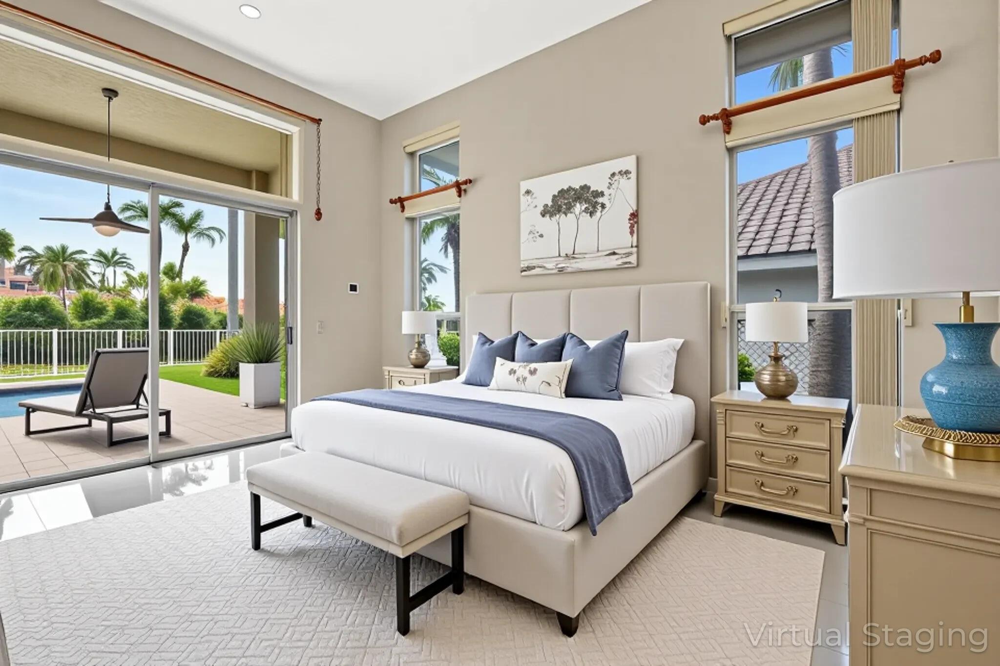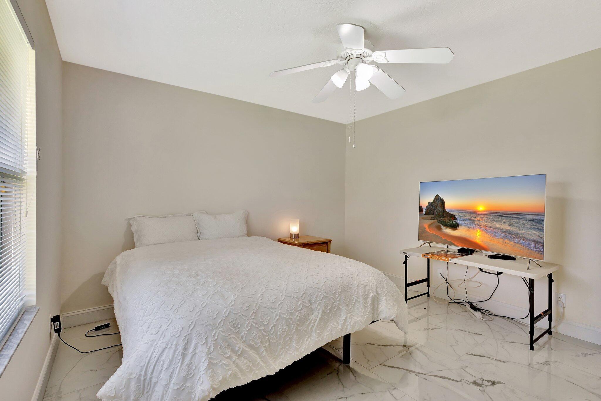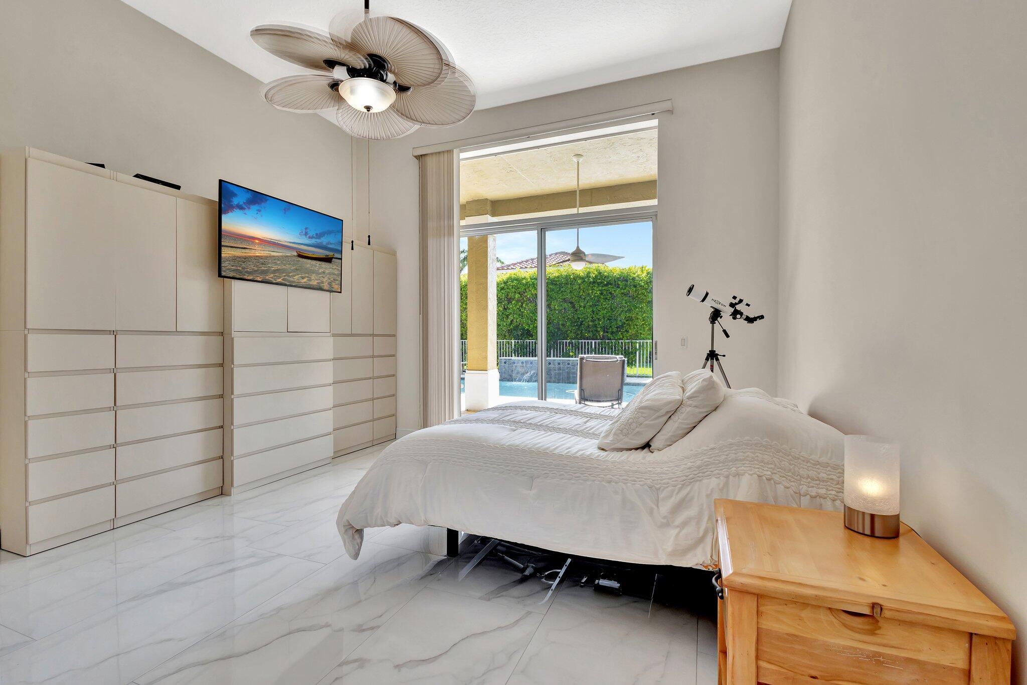 Welcome to your dream home, meticulously upgraded for modern luxury and comfort! This stunning residence boasts soaring ceilings for an airy, expansive feel;imported porcelain tile flooring throughout, creating a seamless and elegant flow. The three fully remodeled bathrooms are spa-inspired retreats, featuring ceiling fans, soothing ambient lighting, and Bluetooth connectivity for your favorite music. Stay comfortable year-round with two newer air conditioning units (2/2022) controlled by Wi-Fi-enabled Nest thermostats, complemented by two recently installed electric water heaters (8/2022) for endless hot water.The outdoor oasis is equally impressive, with a new salt system for the sparkling swimming pool (8/2023) and a state-of-the-art irrigation system with a new water pump to keep