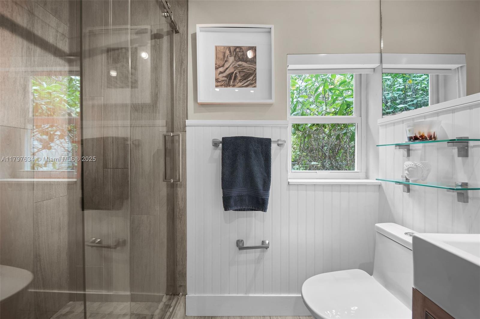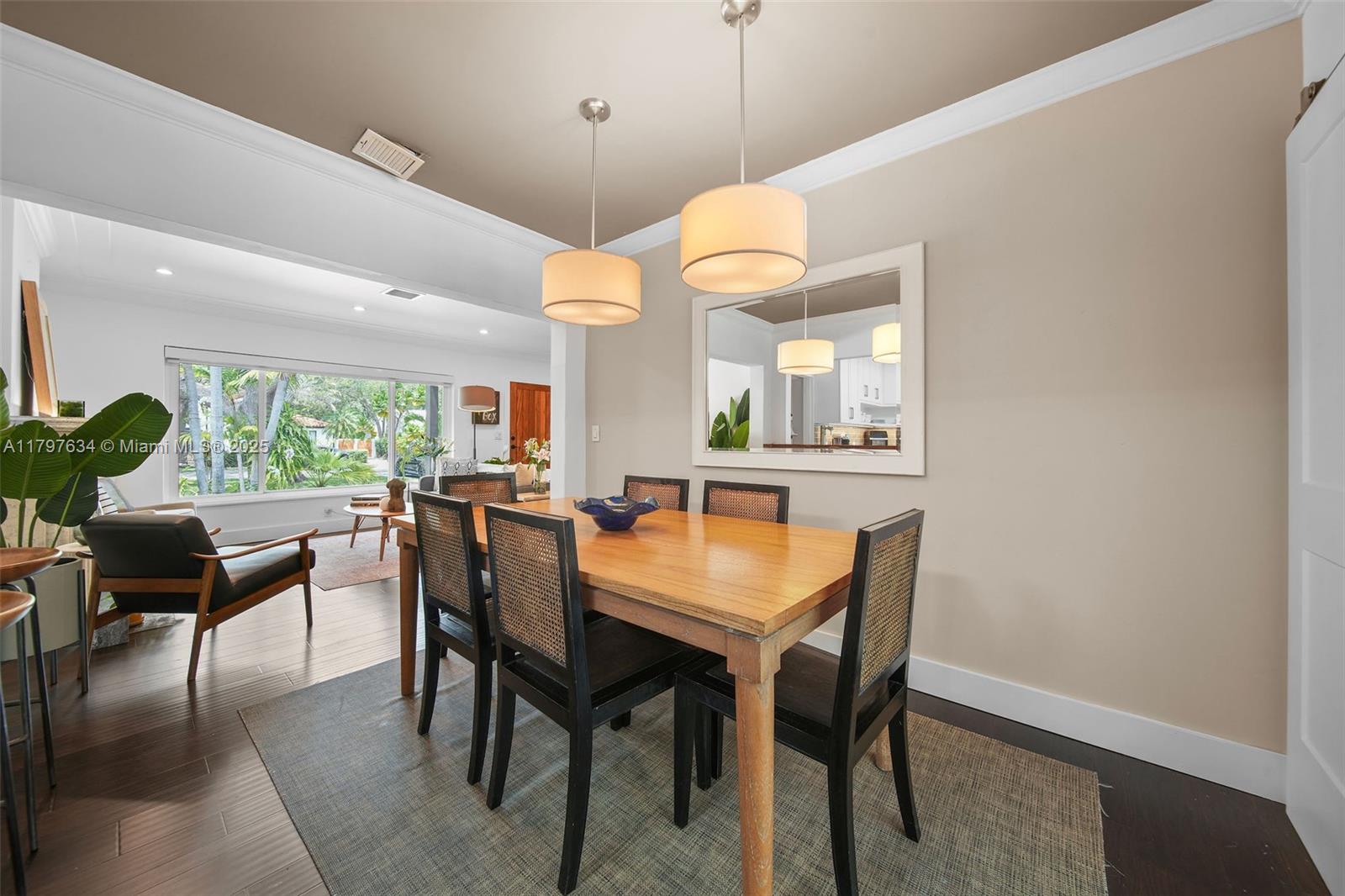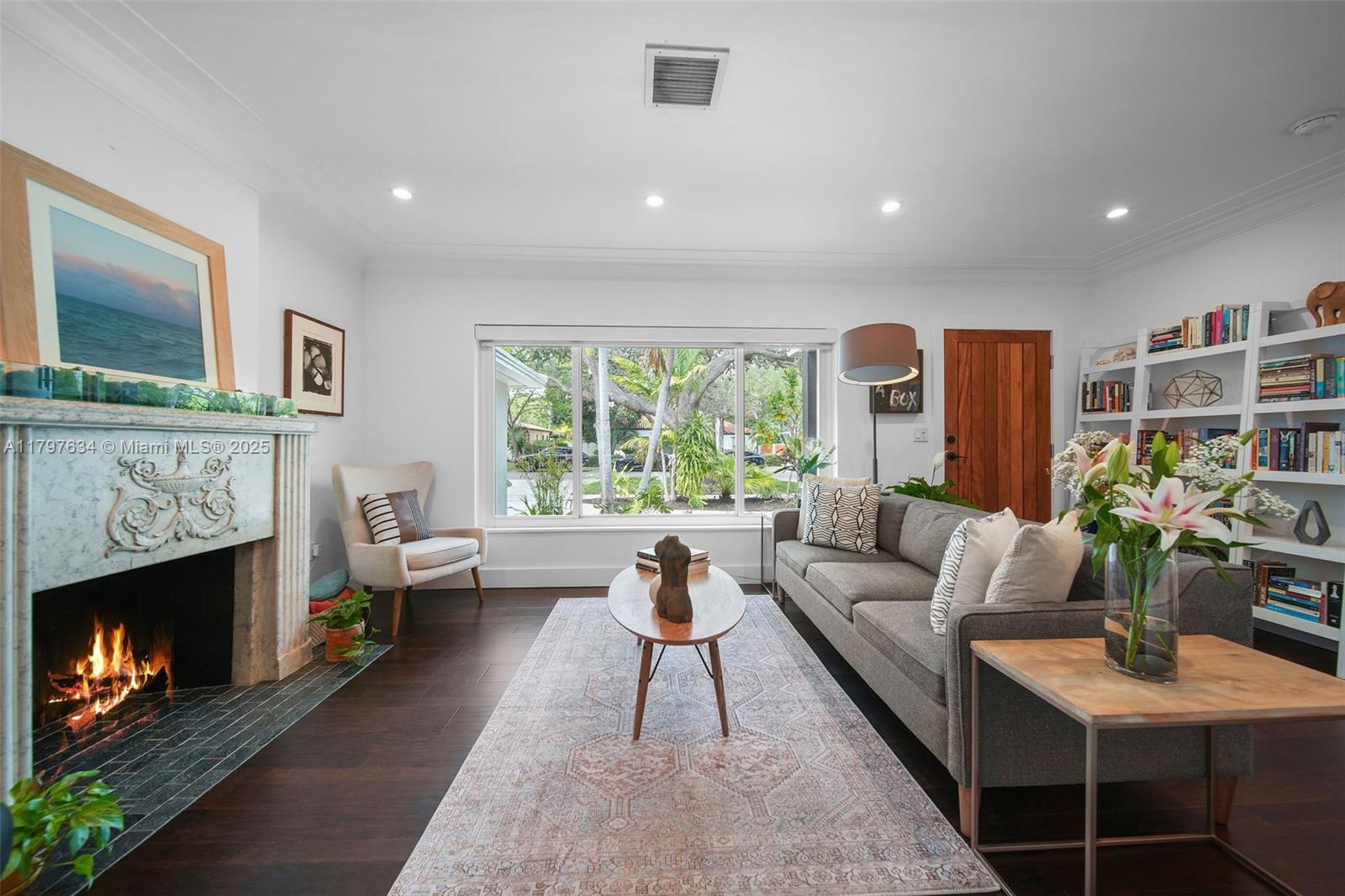 In this prime location in the heart of Miami Shores, sits this renovated home, where curb appeal is just the beginning. Circular driveway, dashing landscaping and full hurricane impact glass welcome you in. New wood flooring anchors the living room with large windows, art deco fireplace, and unique ceiling moldings. Home chefs will love the fully updated kitchen featuring gas range and plenty of cooking prep space on the beautiful counters. Additional office space, plus garage storage area keep everything organized. Spacious backyard with covered awning, new decking, built-in BBQ area and freeform pool, make summer soirees here a delight. Enjoy nearby access to all Miami Shores has to offer from coffee shops, to the community center, to top local schools. A Very Special Home.