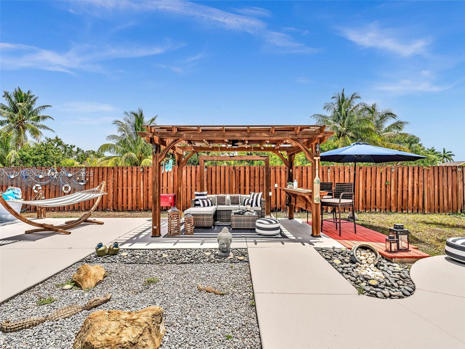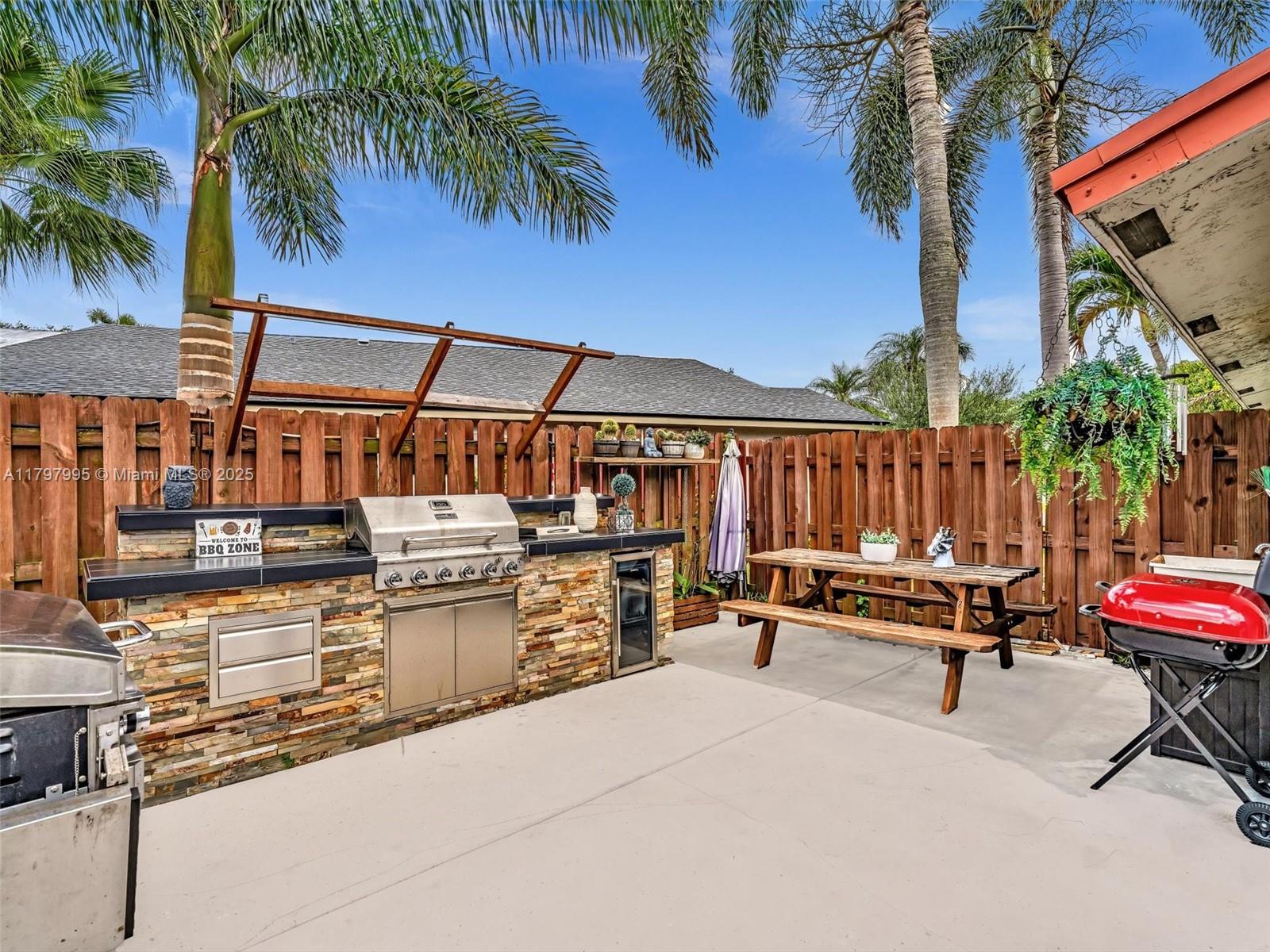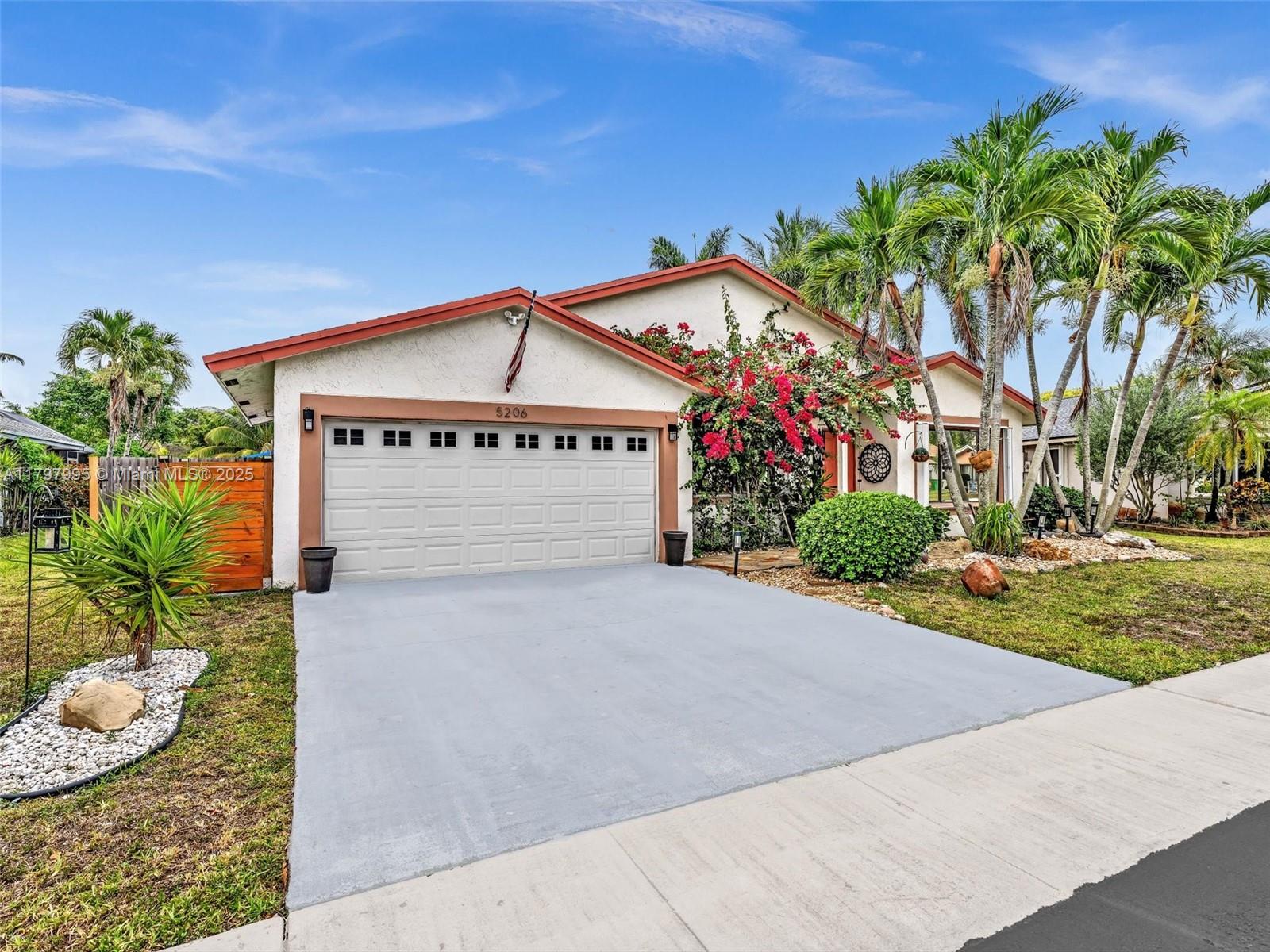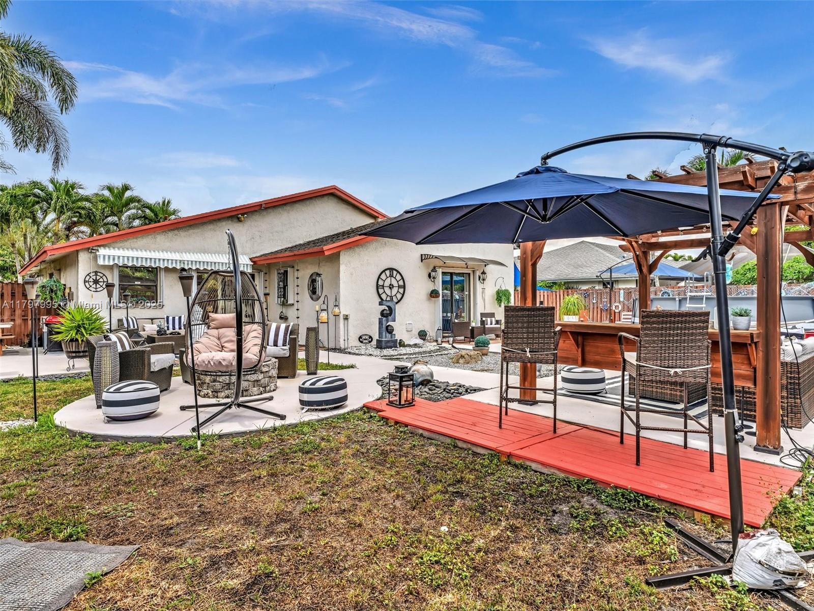 Exceptional value in Parkwood Homes III! This upgraded 3BR/2BA single-family home with 2-car garage offers a bright, open layout with vaulted ceilings, updated bathrooms, and a modern kitchen featuring stainless steel appliances, range hood, and wine cooler. Smart home features include 2022 A/C, Ring security system, and Wi-Fi garage opener. The private, fully fenced backyard is designed for entertaining with a pergola, summer kitchen, fire pit, outdoor shower, spacious deck, and above-ground pool. With a low $83/month HOA and a prime Sunrise location close to Sawgrass Mills, Markham Park, shopping, dining, top-rated schools, and major highways, this move-in-ready home delivers comfort, convenience, and lifestyle in one perfect package.