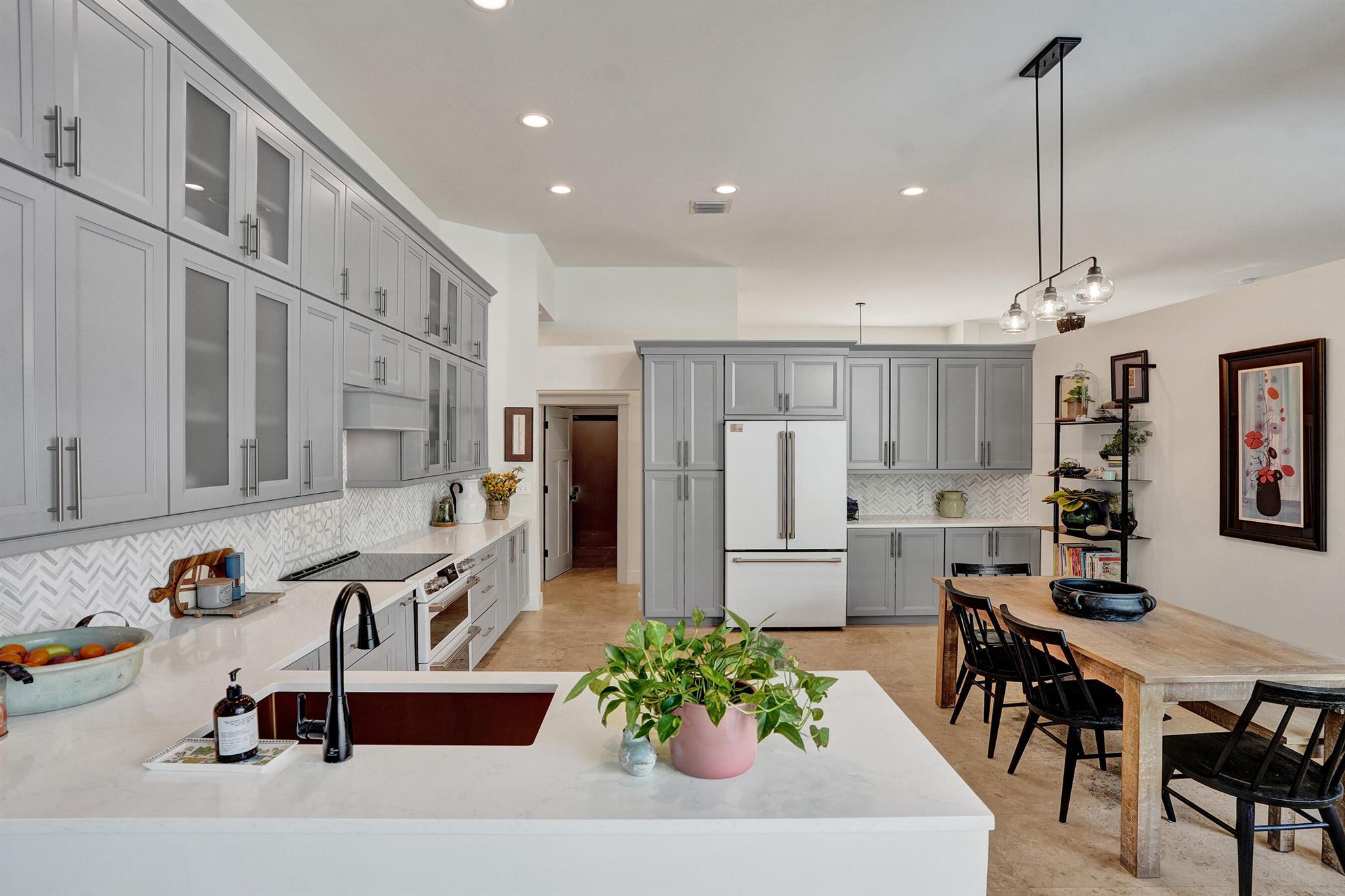 Welcome to this STYLISHLY UPDATED, immaculate, 4-bed, 3-bath home situated on a quiet corner lot! This home features a renovated kitchen with 42'' double stack cabinets, quartz countertops, a double oven & GE Cafe Line appliances (2022). Sleek flat walls & ceilings add a modern touch with fresh neutral paint inside and out. New doors, new trim, new baseboards. Beautiful marble flooring in main living areas, engineered wood in all bedrooms. 2019 ROOF and full hurricane windows, sliders & garage door protection. Each bathroom has been thoughtfully remodeled, blending comfort with style, including a true cabana bath. Enjoy your private screened-in patio and a pool with newer re-surfacing. Meadow Run has 2 manned gates, tennis, pickleball & more! Walk to Parkland's public schools!