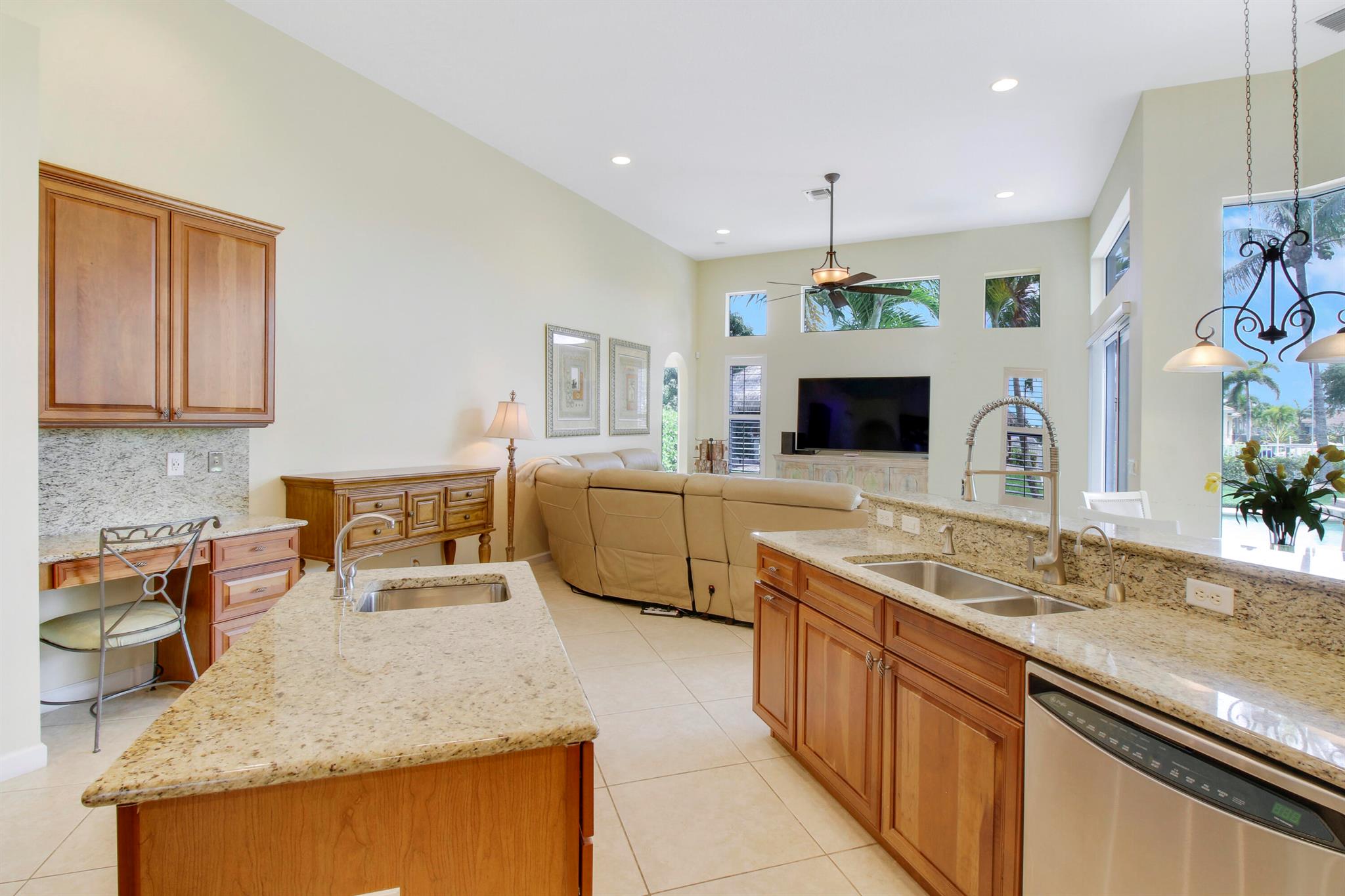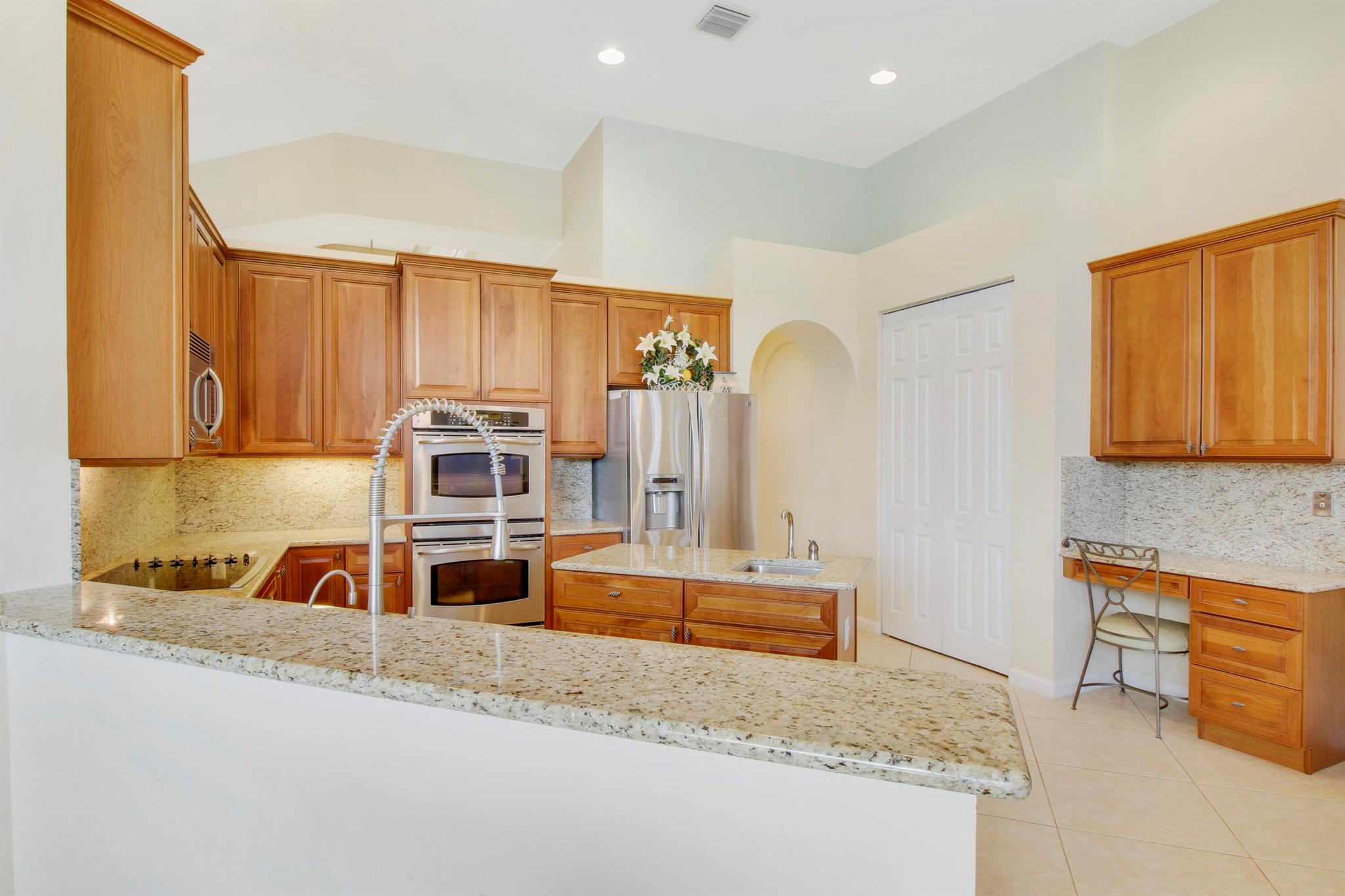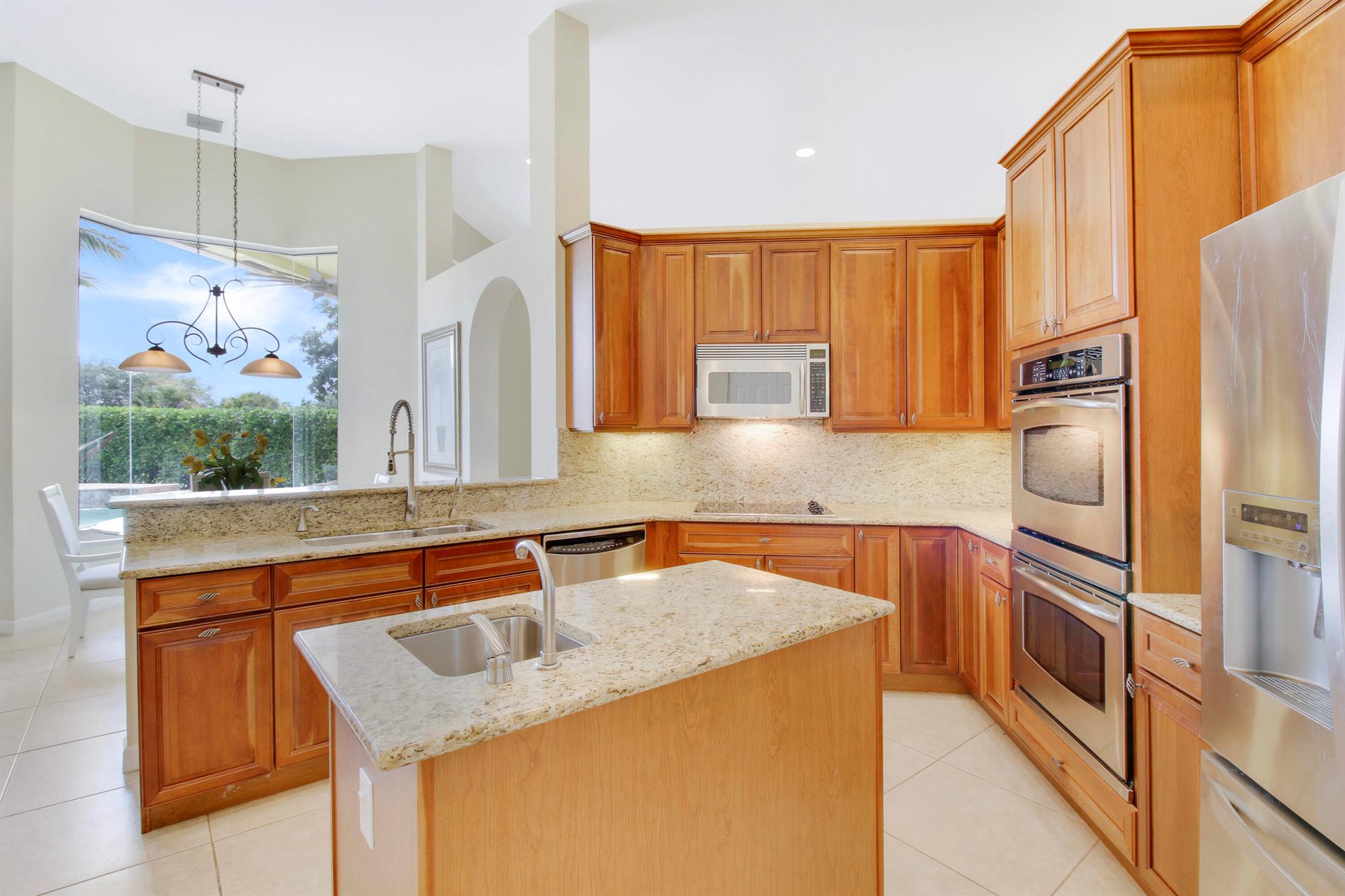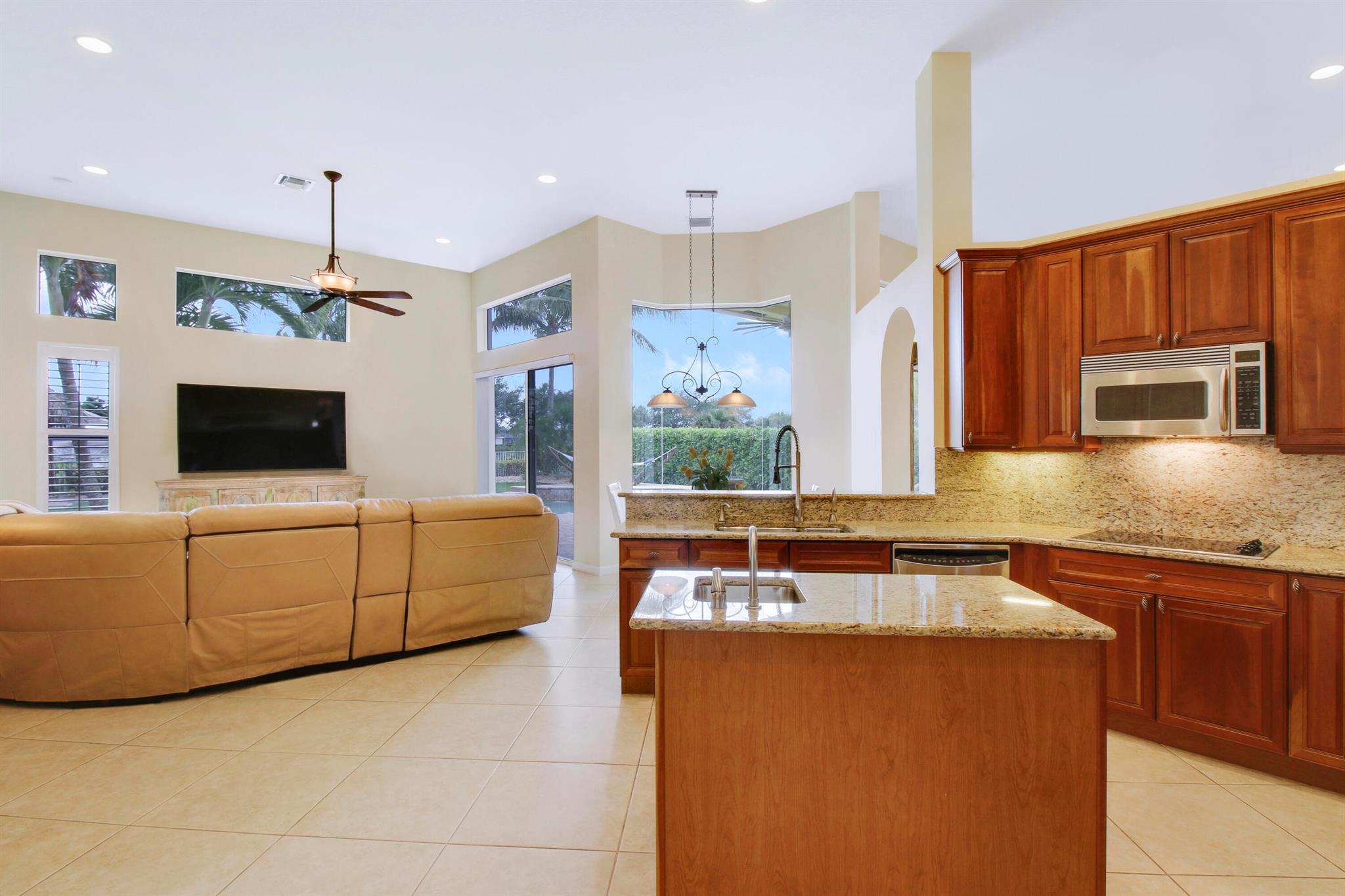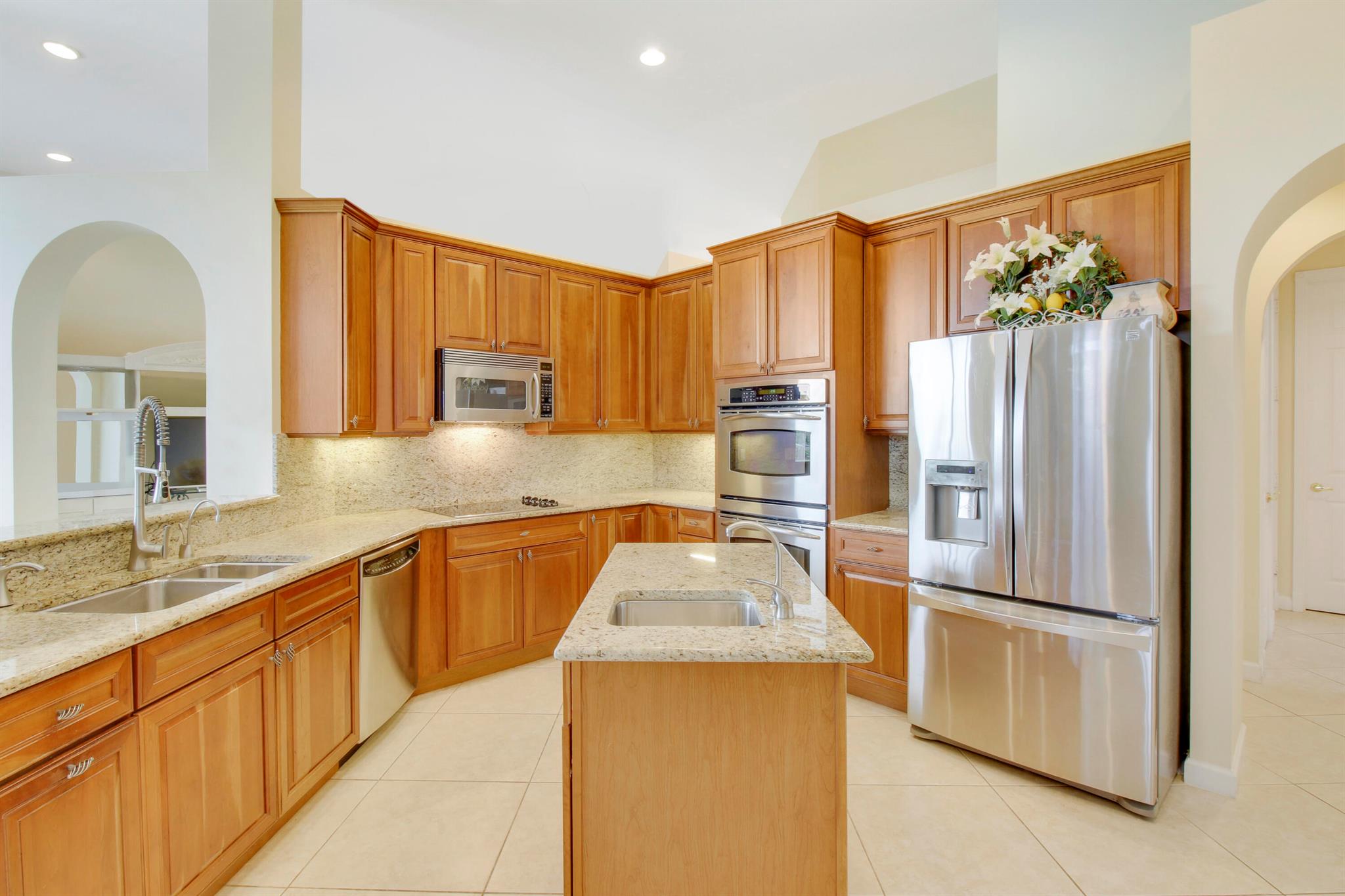 Come see this impressive waterfront pool home located in a gated boating community. This 4 bedroom (plus den/office), 3 bath home is on a deep-water canal with a dock (updated in 2020) and a 13K lift located behind the home with ocean access and no fixed bridges. Great outdoor living with a fenced backyard with an awesome heated saltwater pool and a Tiki Hut with a built-in outdoor style kitchen, lush landscaping and on a corner-lot add to a private setting. The interior of the home is nicely appointed with formal dining and living room and a large combo kitchen and family room. The kitchen comes with stainless steel appliances, 42'' cabinets, granite countertops, double oven, and a center island. Large 3 bay garage allows for good storage. Both A/C units replaced in 2023. Whole house Gen