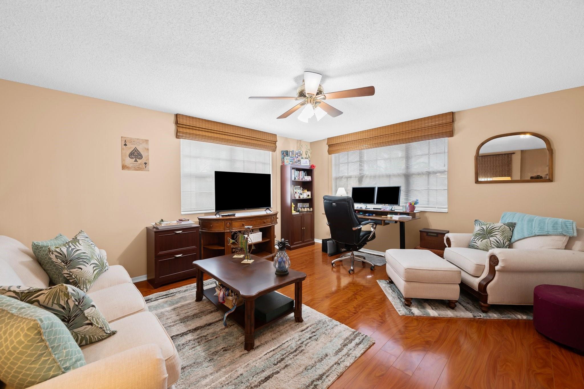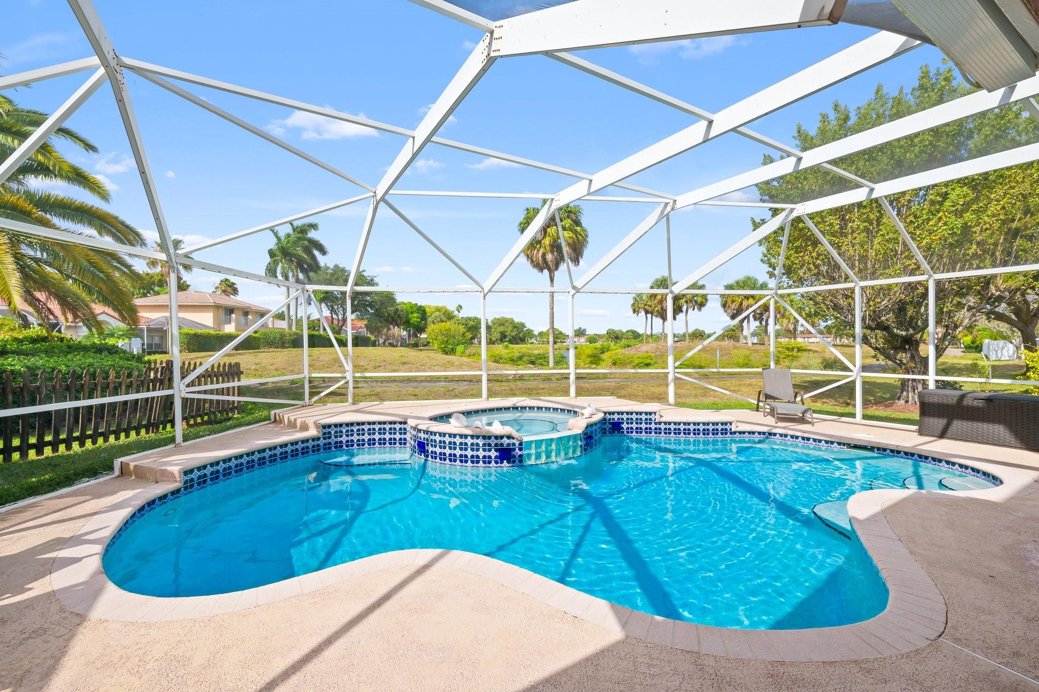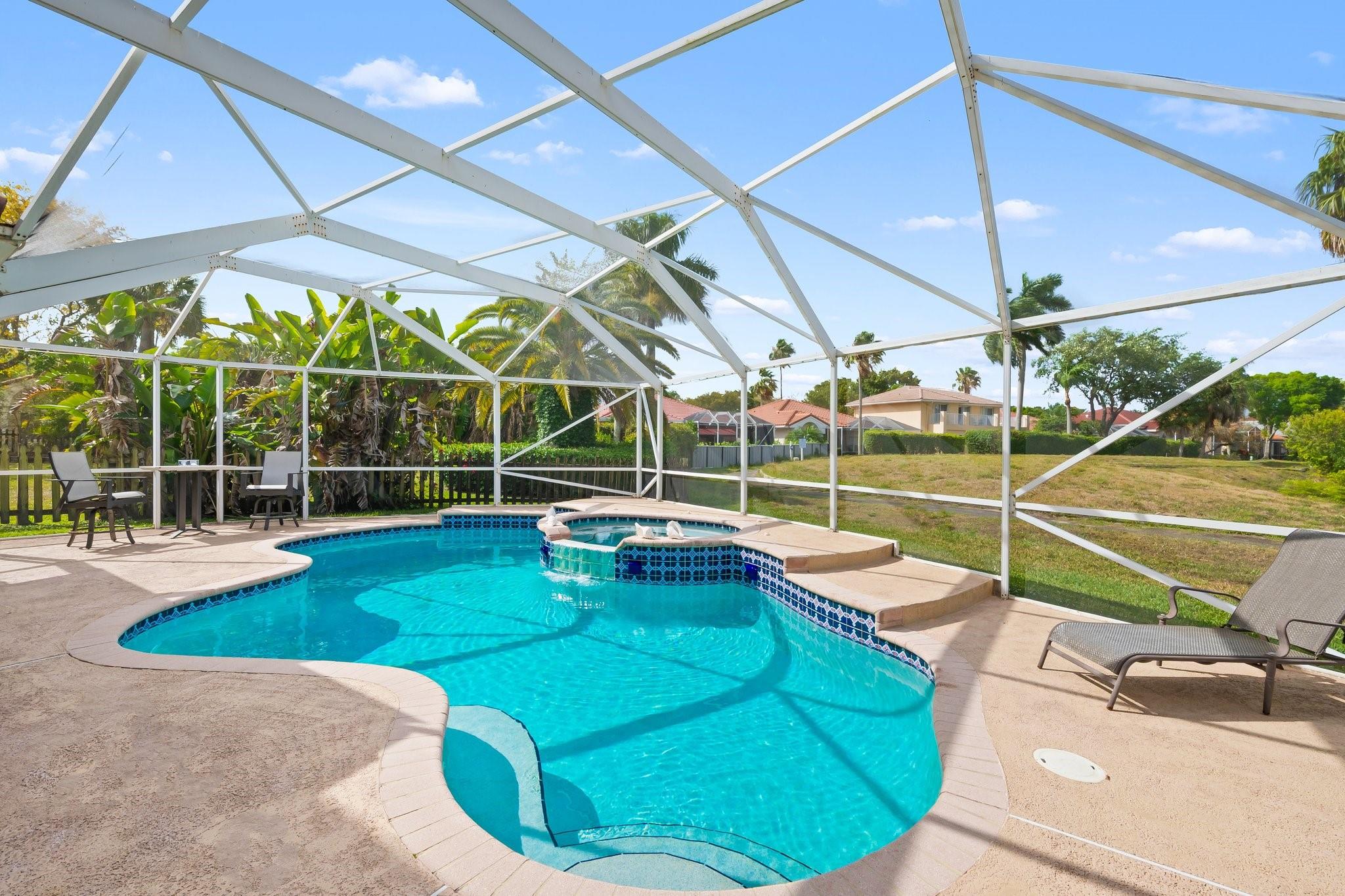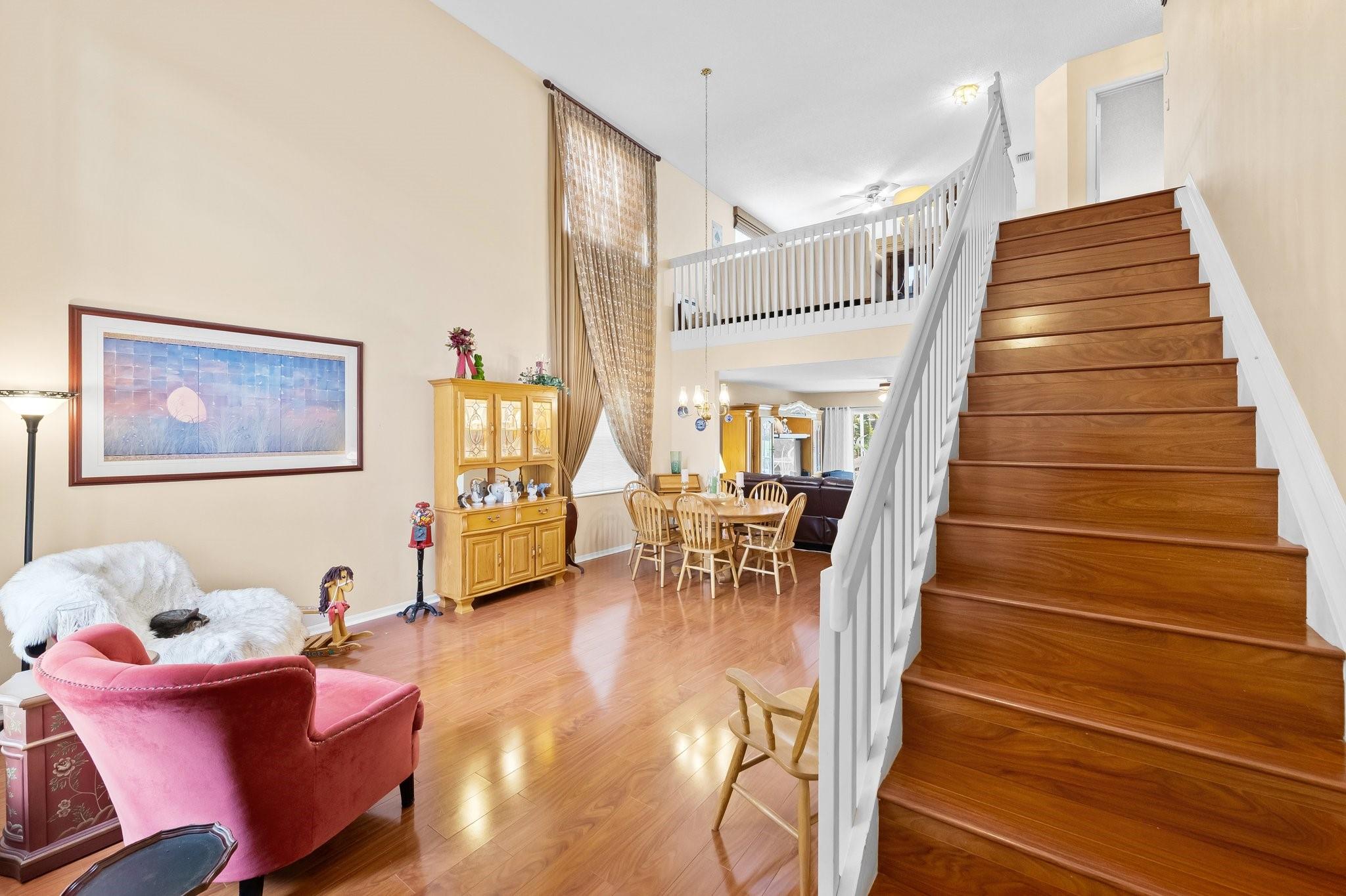 This beautifully maintained, one-owner residence combines elegance, comfort, and functionality across a spacious layout. Step inside to be greeted by soaring 20+ ft ceilings, large windows flood the home with natural light. The layout includes a formal dining room, a cozy living room, an open-concept family room, and a spacious loft—perfect for a home office, media room, or play area. Screened patio leads to a heated, enclosed pool—ideal for relaxing or entertaining. Oversized master suite is a true sanctuary, walk in closets large closets, luxurious jetted soaking tub, and a separate walk-in shower. Additional highlights include a 2-car garage, and convenient access to the Turnpike, shopping, dining, and more. End each day with breathtaking sunset views from your backyard oasis.