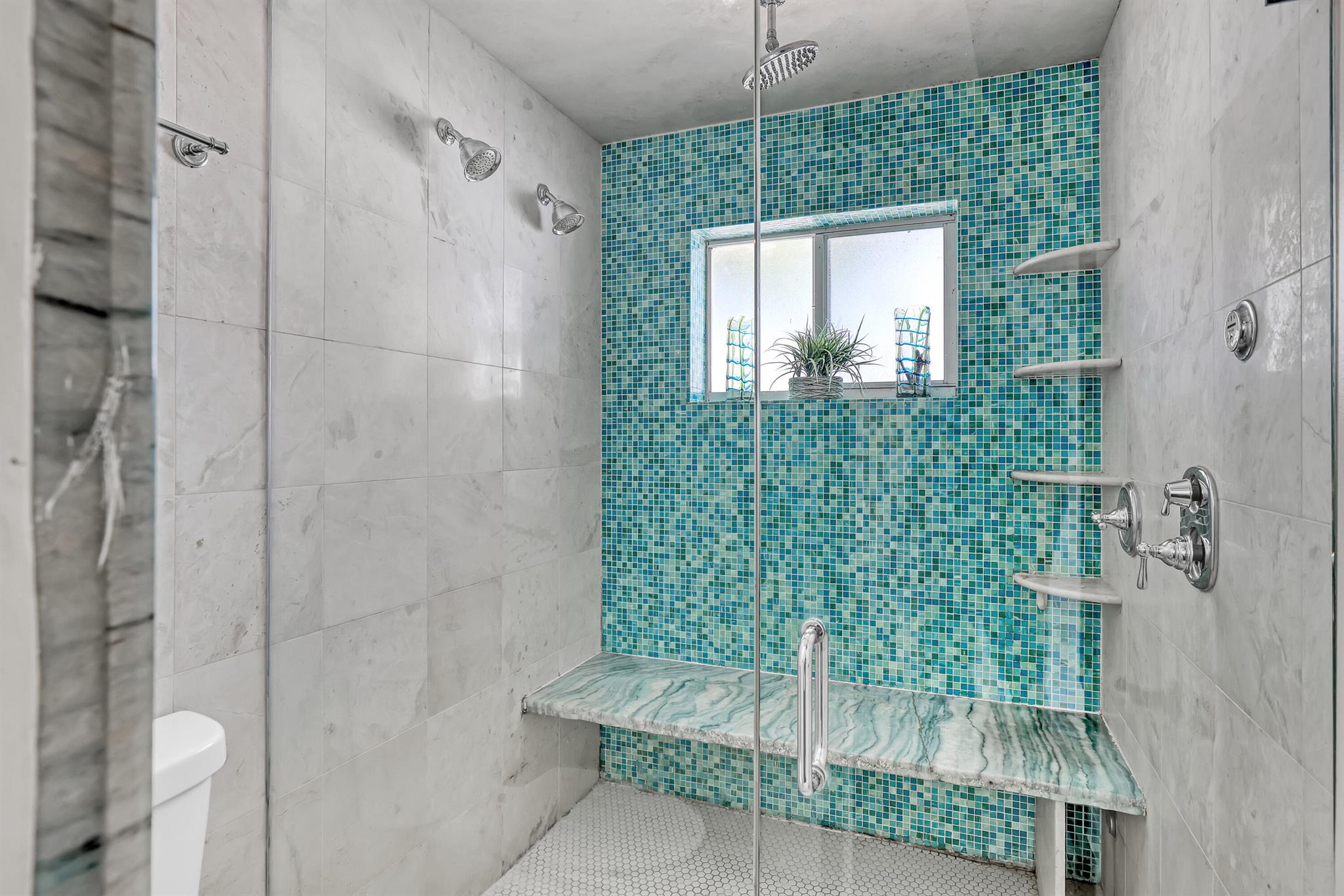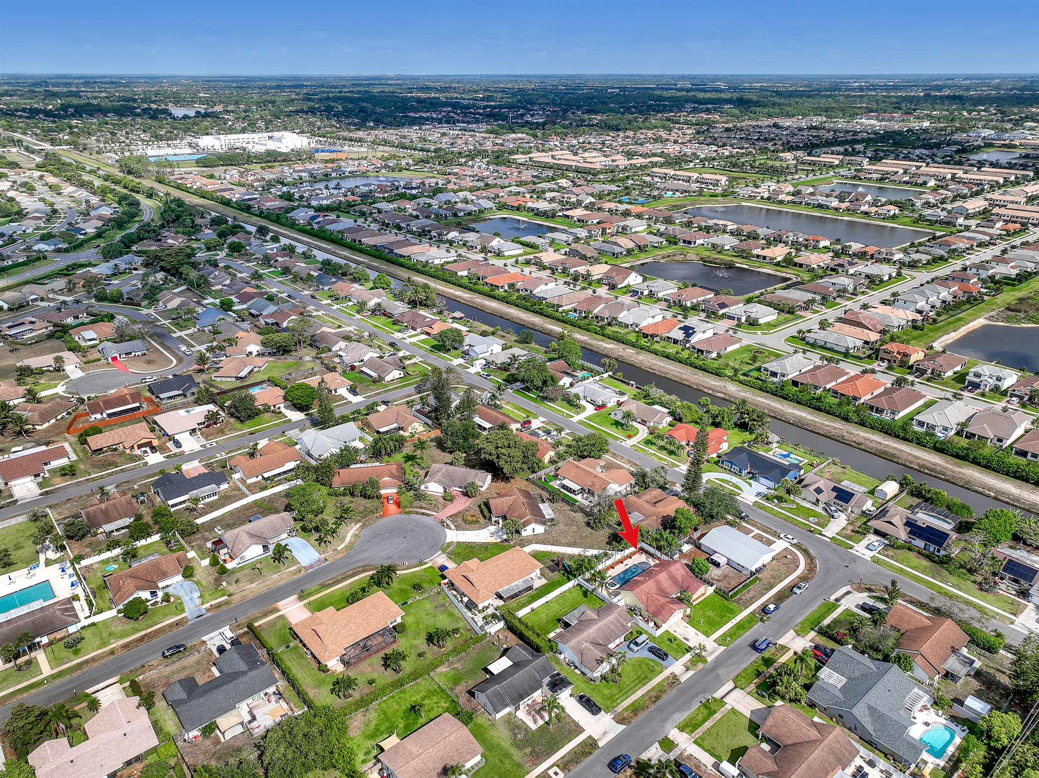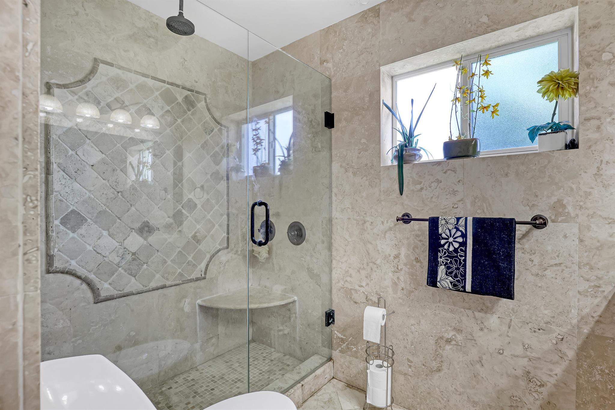 Lakes of Sherbrooke! CBS 3-bed, 2-bath home w/marble flooring, wood flooring, Crown molding, chair rail throughout. Beautiful marble countertops AND backsplash, SS appliances (brand new fridge), open kitchen with bar top allowing pool views. Abundant natural light, featured lighting inside and out! Guest bath: double vanity, custom floor-to-ceiling tiled walls w/walk in shower. Primary bath: Steam shower! w/bench and exquisite tile work. Pool access from primary and dining rooms. Entertain around the huge glass tile pool, 6 person spa, fire pit and lush landscaping surrounded by Palm Trees. Totally paved, outdoor shower, custom irrigation system, FULL HOME generator to convey. BRAND NEW ROOF! Great Schools, Unbeatable location. See document section to learn about your new lifestyle.