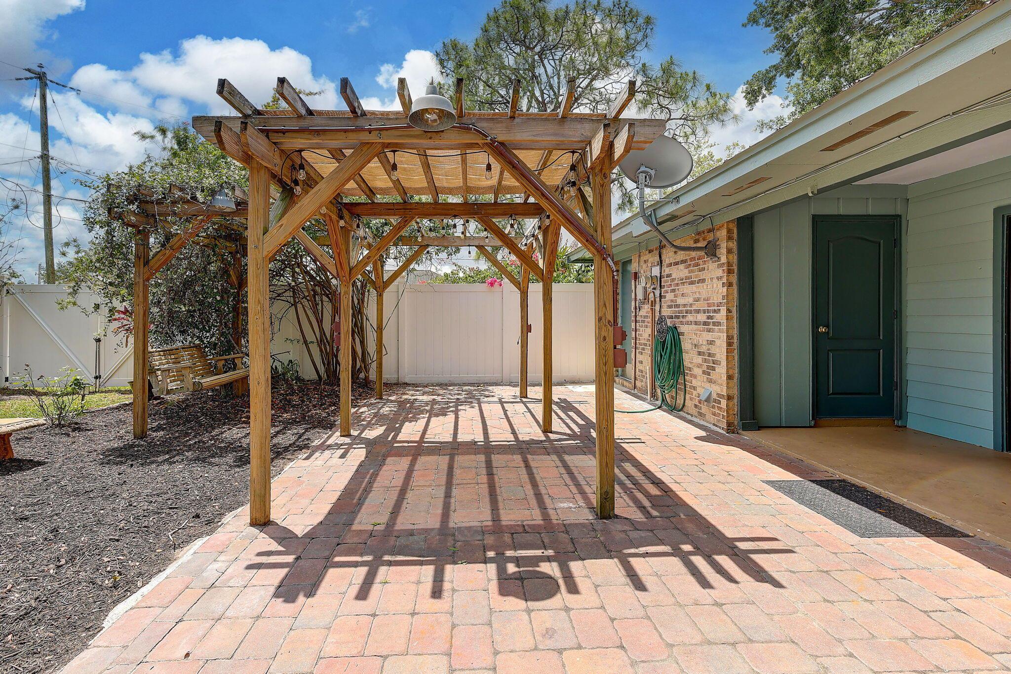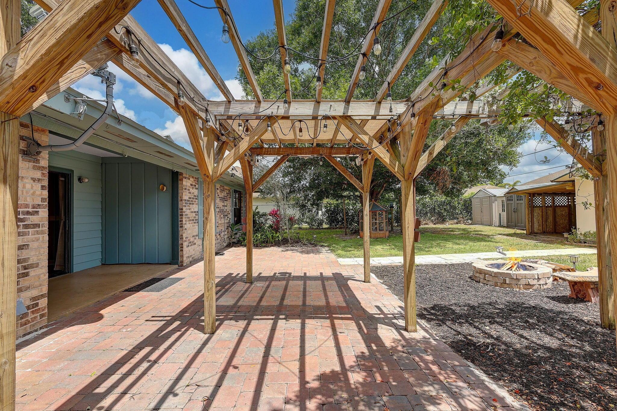 Step into this quaint & rustic 3 bed/2 bath home that blends charm with modern comfort. The renovated designer kitchen features stainless steel appliances, pull out spice cabinet & pantry with pull out shelves. Relax with a good book in the cozy reading kitchen window nook or step outside and unwind under the pergola adorned with soft evening lights & a fire pit, perfect for evening gatherings under the stars. 2024 - AC & Water Heater. 2025 New carpet in bedrooms. 2025 - New window screens Fully wired shed with refrigerator. Metal roof. Side fence entrance for boat or truck. Space for a pool.