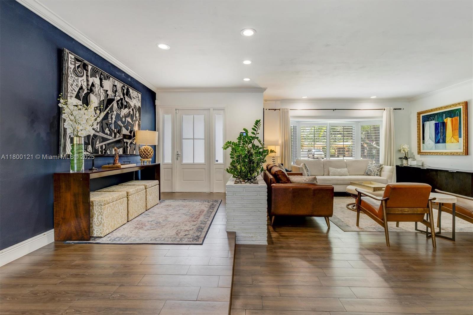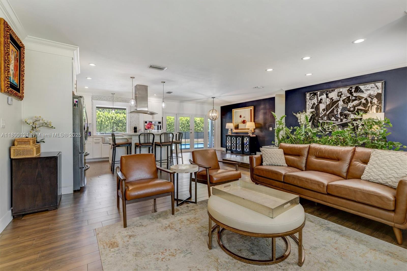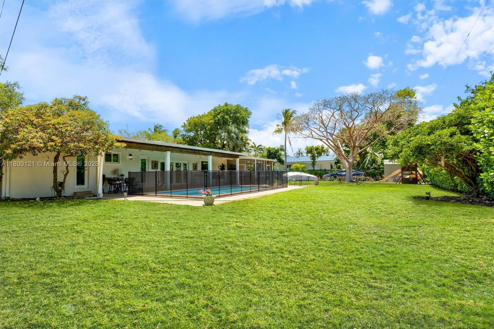 Beautifully remodeled turnkey home in sought-after north Palmetto Bay. This elegant and inviting open floor plan welcomes you with abundant natural light streaming through glass windows. Featuring 4 beds / 3 baths, including in-laws suite and cabana bath; upscale kitchen with hardwood cabinetry, quartz counter tops with plenty of pantry space and SS appliances. Tile flooring and impact windows and doors throughout. Spacious and serene backyard complete with covered terrace, built-in bar and sparkling 15x30 pool, creating the ideal ambiance for entertaining. Extended driveway is perfect for a boat or RV with screened storage. Family oriented neighborhood, well maintained, quiet and safe with close proximity to Coral Reef Park, Deering Estate, and top-rate private/public schools.