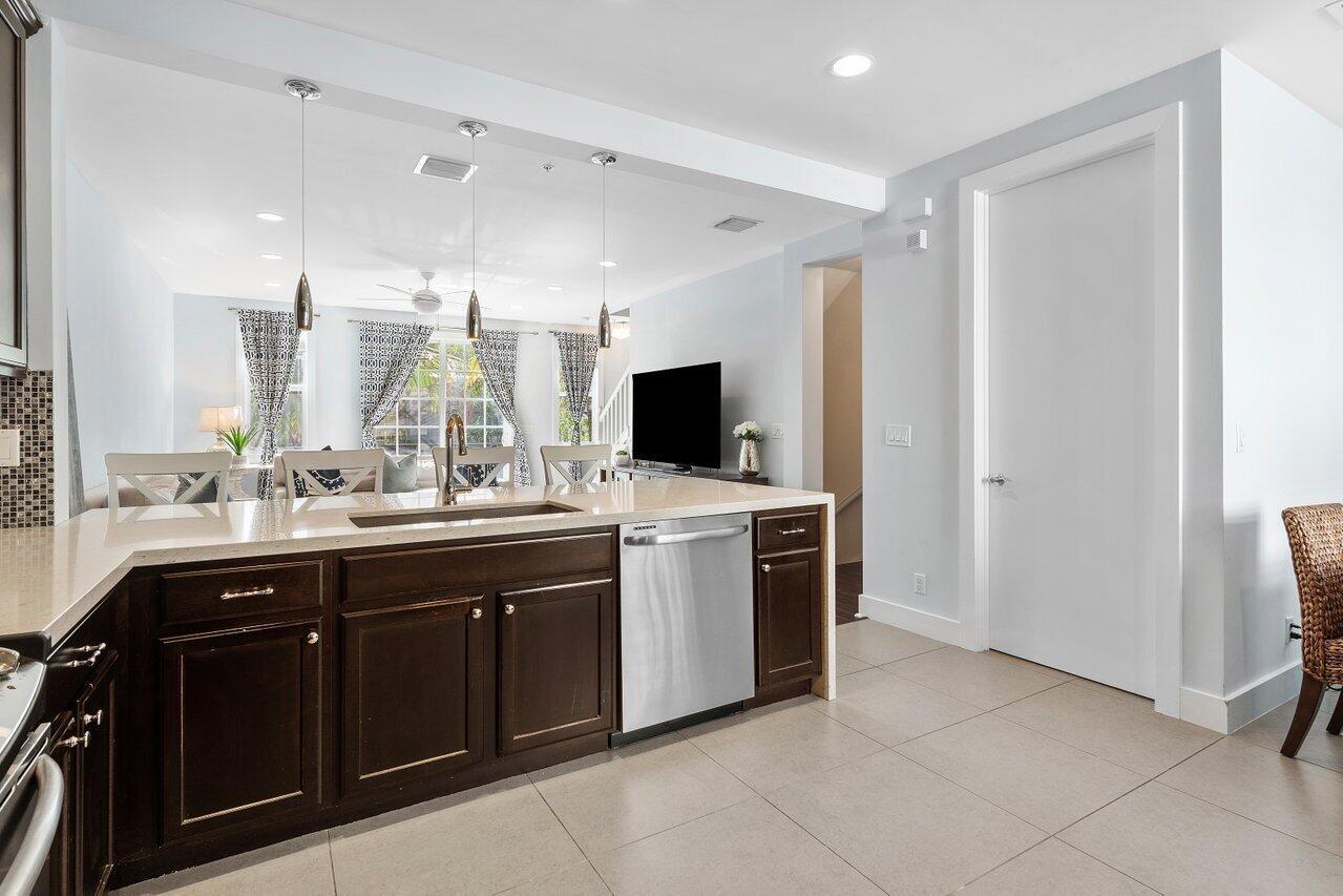 This spacious three-story Key West Contemporary Townhome in CODA offers a well-designed layout and thoughtful upgrades throughout. Impact windows and doors. On the first floor, enjoy a private en-suite bedroom with a newly added full bathroom-perfect for guests or multigenerational living-as well as convenient access to the two-car garage. The home is built with CBS construction on all three levels for excellent insulation and soundproofing. The second floor features a gourmet kitchen with quartz countertops, SS appliances, walk-in pantry, and an open dining area. Powder room, bright living room and private balcony make this level ideal for entertaining and everyday living. The third floor host a second en-suite bedroom, washer and dryer for easy access, and the luxurious primary suite