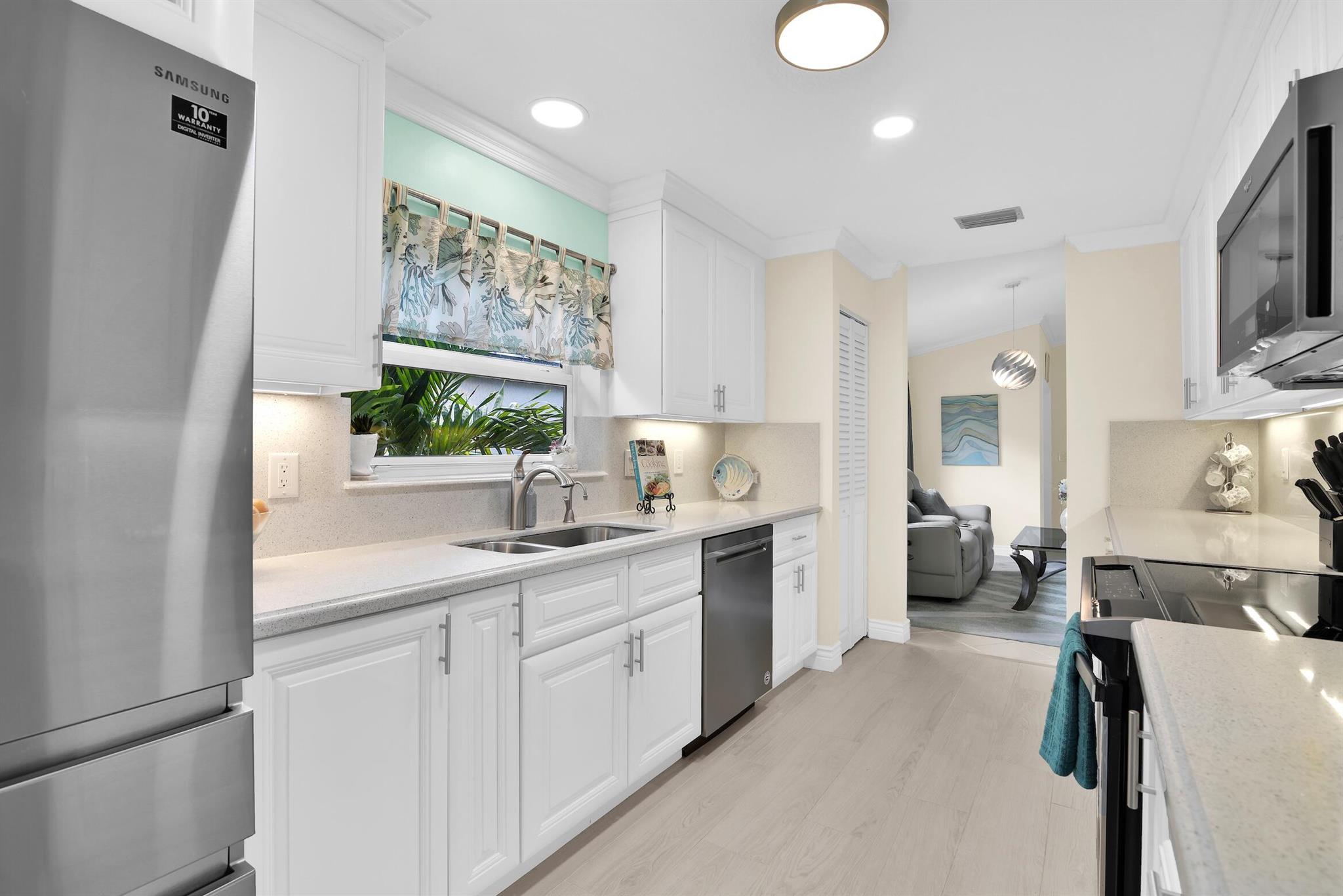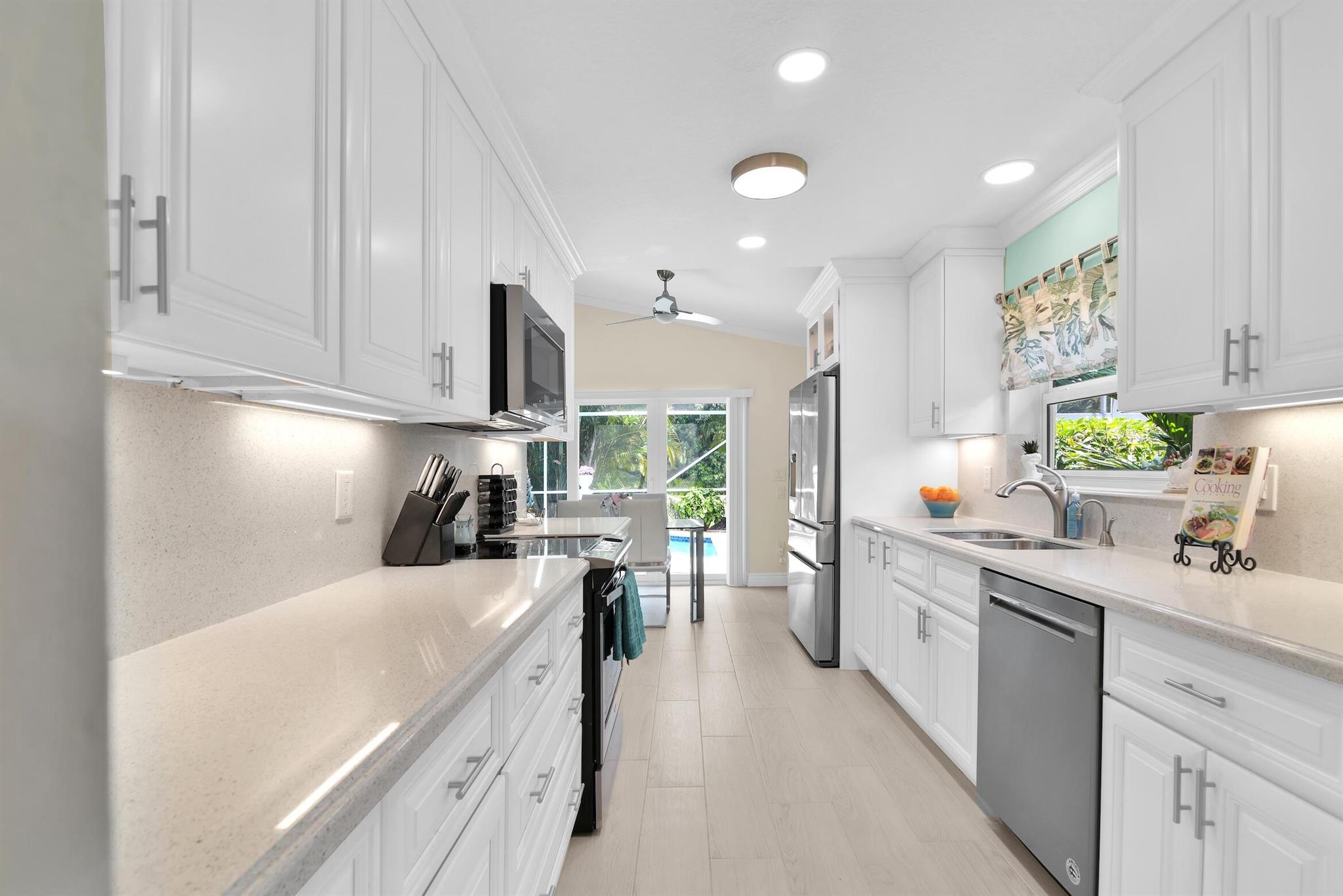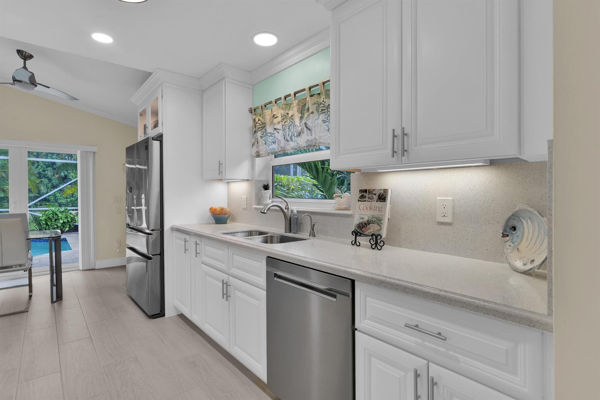 Step into your Tropical Oasis with this Beautifully Renovated 3 bedroom 2 Bathroom Residence offering a Tranquil Picturesque Setting and View of the 4th Hole of The Lakes Golf Course. Perfect Outdoor living w/ your Own Private Pool to Relax or Entertain. Interior Features include an Updated White Kitchen w/ Quartz Countertops & Stainless Steel appliances, Remodeled Primary & Guest Bathrooms, Complete Hurricane Windows/Sliders Front Door and Garage Door and newly installed Travertine Driveway. Located in the prestigious Boca Woods Golf Community where residents enjoy an Exceptional Resort Lifestyle & Amenities :Mandatory Club Membership: Initial Contribution is $120K and Annual Membership fee is $27k which includes the Golf Course and an array of amenities (See More)