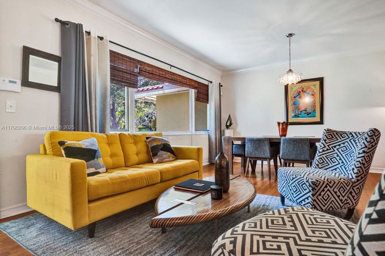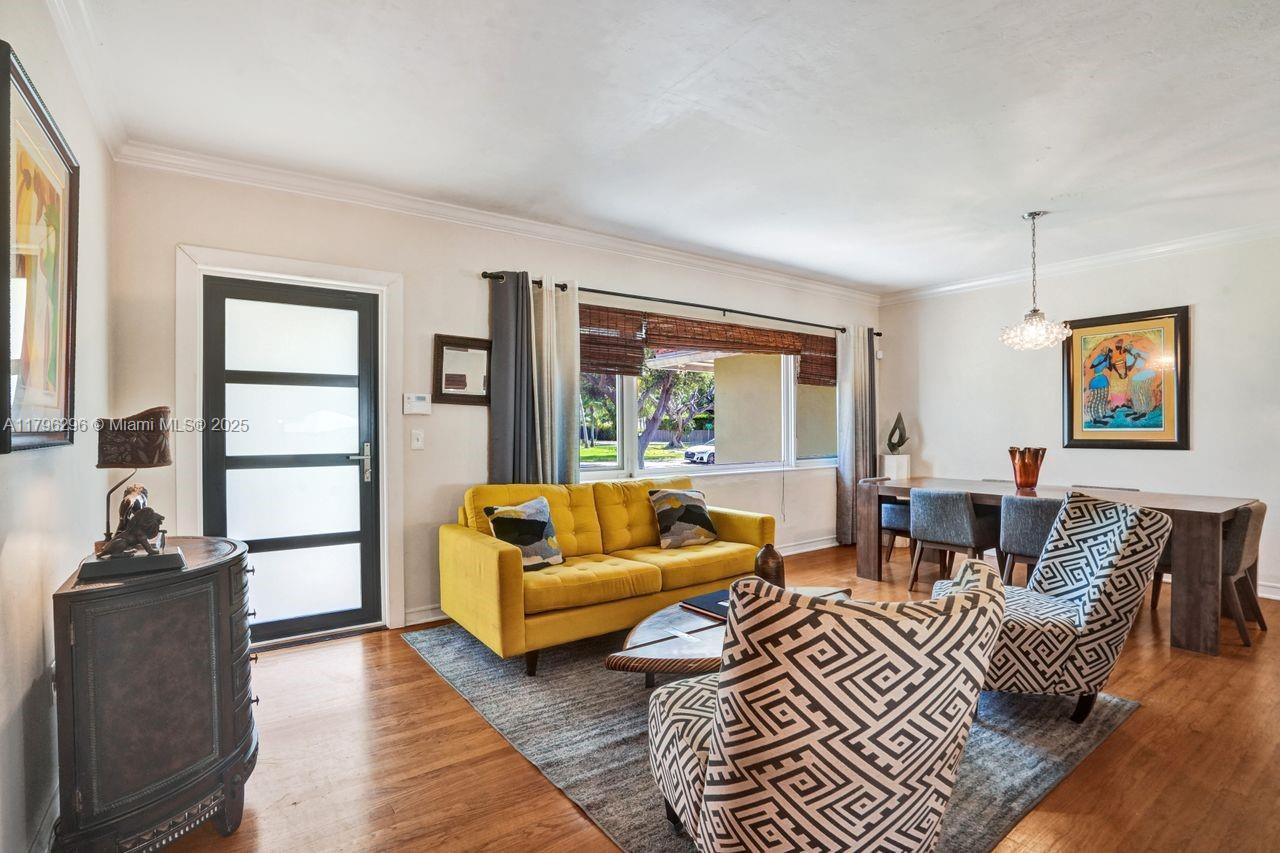 Discover timeless charm in this well-kept Miami Shores gem! Nestled on a quiet, tree-lined street, this inviting home blends classic character with thoughtful updates. Features include: Terracotta Spanish tile and wood floors, hurricane impact windows and front door, brick driveway, sprinkler system on timer, spacious kitchen with tons of cabinets, a 1 car garage with extra overhead storage, wireless alarm system with two keypads, ring doorbell camera system, wood blinds, and other modern touches add comfort and style. The bright, open living spaces, large windows, and a private lushly fenced backyard offer the perfect indoor-outdoor living spaces. Stroll to shops, parks, restaurants and more. A rare opportunity to own a piece of history with room to make it your own. Easy to show!