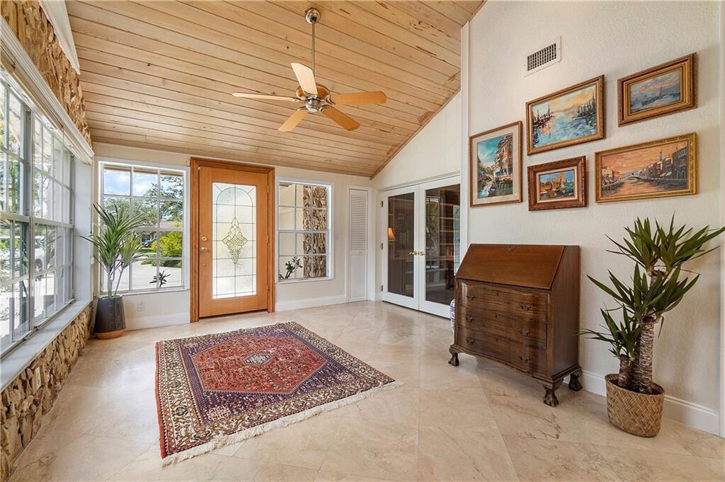 Welcome to an off the grid Private Oasis Where Nature Meets Innovation and LuxuryNestled on a lush, tree-filled acre, this distinctive estate seamlessly blends natural beauty with elevated modern living. As you step past the serene river rock entry and beneath striking cypress wood ceilings, you'll instantly feel the soul of this one-of-a-kind home. Designed with intention, it honors Florida's native resources through thoughtfully chosen finishes like mahogany and treated marble floors.Beyond the grand entrance lies the sun-soaked Florida Room, offering uninterrupted views of the saltwater pool with enclosed screen, waterfall jacuzzi, travertine natural stones,and tranquil garden. Entertain effortlessly in the multiple gathering spaces,