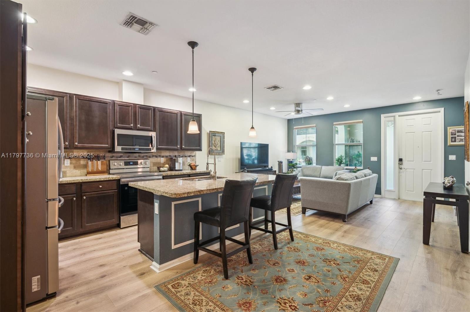 Welcome to your dream townhome, where Mediterranean charm meets modern convenience! This 2/2.5 residence boasts a spacious layout perfect for relaxation and entertainment. You'll be greeted by a large open kitchen featuring SS appliances & a generous center countertop, ideal for meal prep or casual dining. The main level showcases beautiful vinyl wood flooring, creating an inviting atmosphere for family gatherings or entertaining guests. 2 Car garage attached. Venture upstairs to discover the comfort of new carpet throughout the second floor with two well-appointed bedrooms. Each bedroom offers natural light and space. The 2 1/2 baths are stylishly designed. Don’t miss out on this exceptional opportunity! Community offers gated entry, clubhouse, pool, exercise room, & dog park. Low HOA