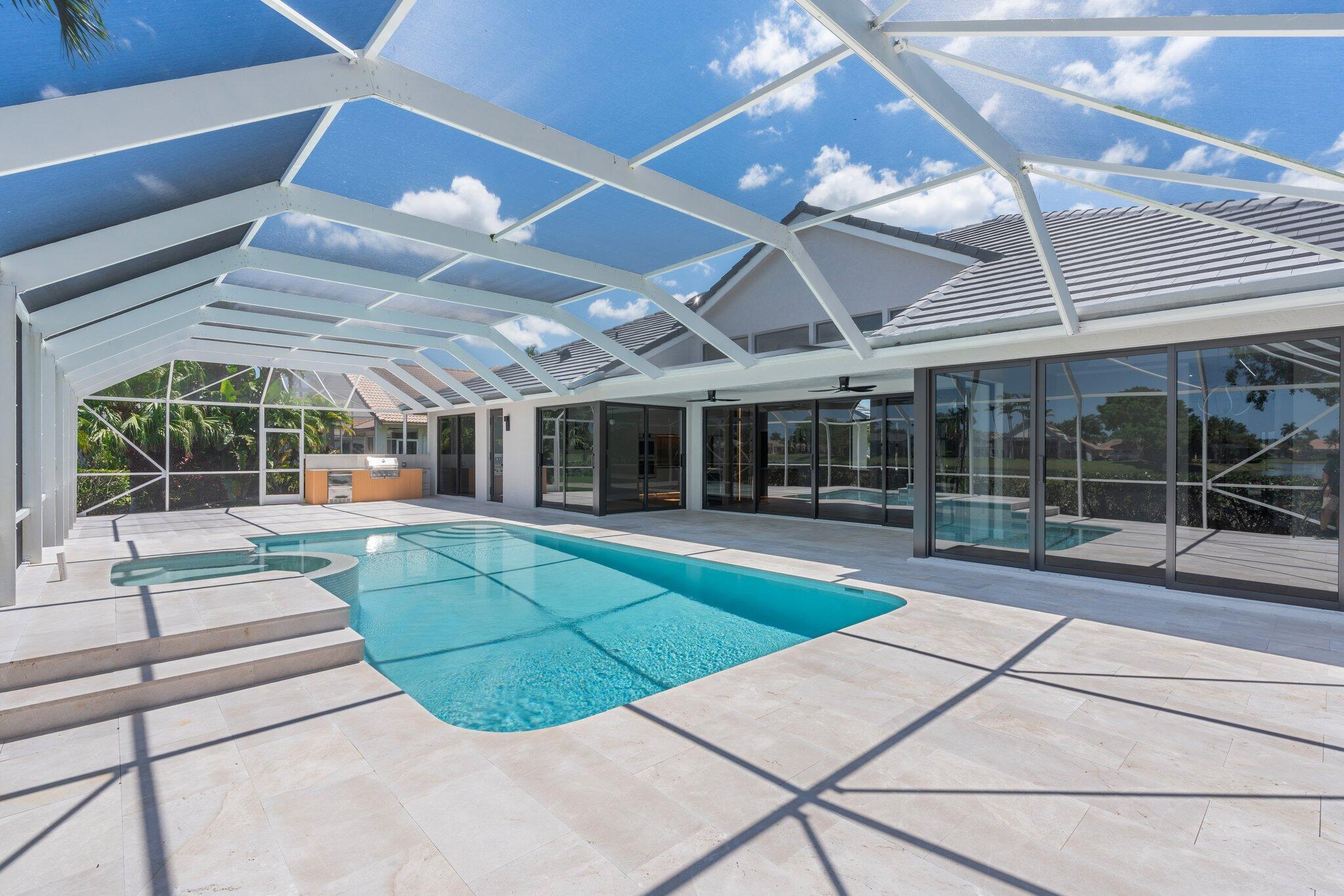 Completely redesigned in 2025 by a Swiss architect, this stunning home in Stonebridge Golf & Country Club blends light, warmth, and quiet elegance. Located on a prime cul-de-sac lot with golf and water views, it features a custom designer kitchen with Miele & Samsung appliances, spa-like bathrooms, and genuine engineered wood flooring throughout. Enjoy a redesigned pool, marble deck, and outdoor kitchen--perfect for entertaining. New roof, impact windows and doors complete this modern retreat in a premier golf community.