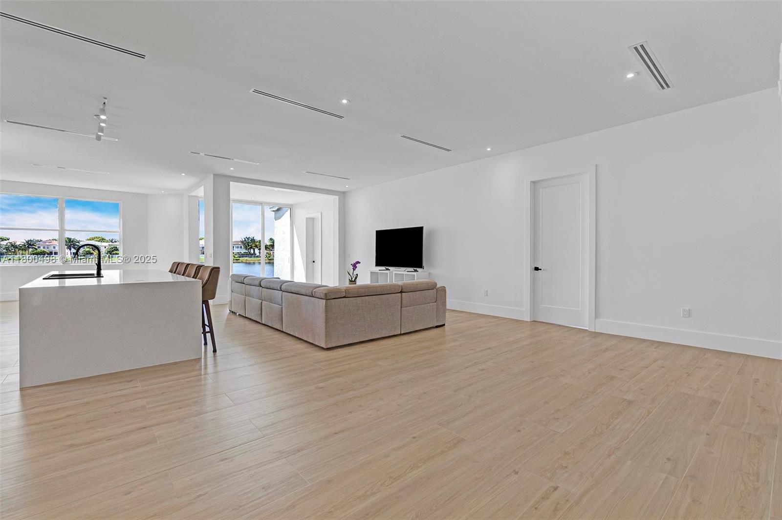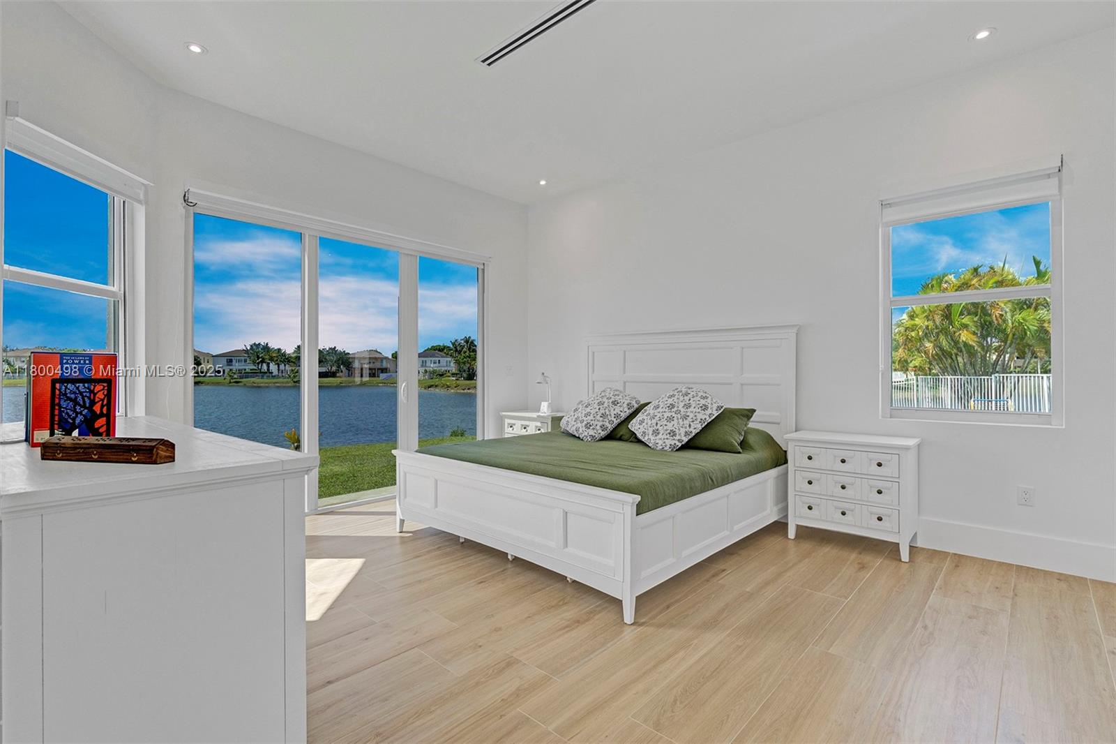 Welcome to this stunning, fully renovated 4-bed, 3-bath residence on an oversized lot in the prestigious, gated community of Riviera Isles. Tucked away on a cul-de-sac, this home offers privacy, elegance, and panoramic lake views. 240sf of living space added during remodel includes a den perfect for a home office or guest suite. The heart of the home is a designer kitchen featuring stainless steel appliances, quartz countertops, and an open concept ideal for entertaining. With volume ceilings, impact windows/doors, and a modern interior design, this residence is flooded with natural light and exudes luxury living at every turn. The spacious, fully fenced backyard with 152ft of lake frontage offers ample room for a pool, outdoor kitchen, or even a cabana house.