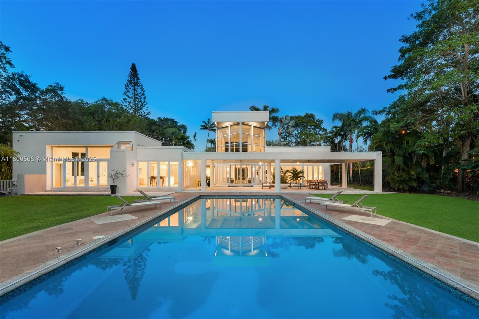 Step into refined luxury at this reimagined contemporary estate, nestled on a gated deep acre along one of North Pinecrest’s most prestigious streets. Fully renovated and filled with natural light, this home features soaring ceilings, marble floors, elegant formal living and dining rooms, and a gourmet natural stone kitchen with bar that opens to a spacious family room. Enjoy views of the beautifully landscaped grounds and oversized open pool. The split floor plan includes a separate upstairs loft with full bath, a lavish primary suite with spa-like bath, custom walk-in closets, and private office, plus three ensuite bedrooms in the children’s wing and a maid/guest suite. An expansive covered patio and a gated entry complete this entertainer’s dream.