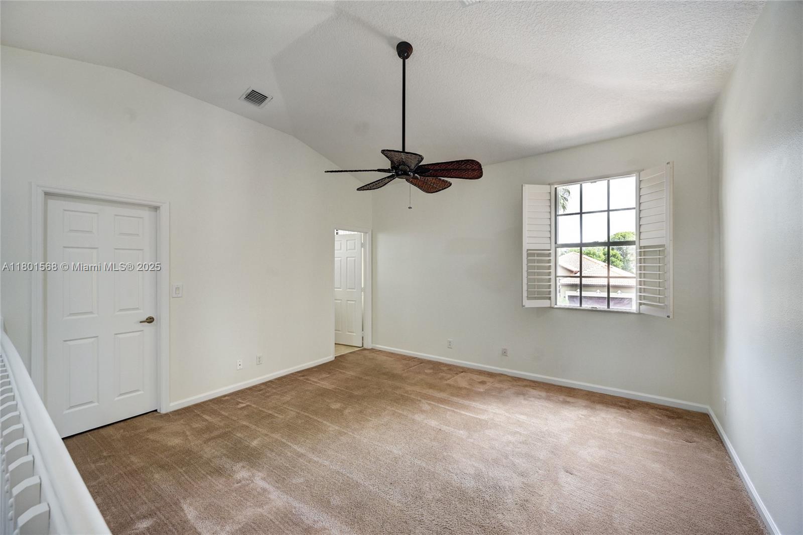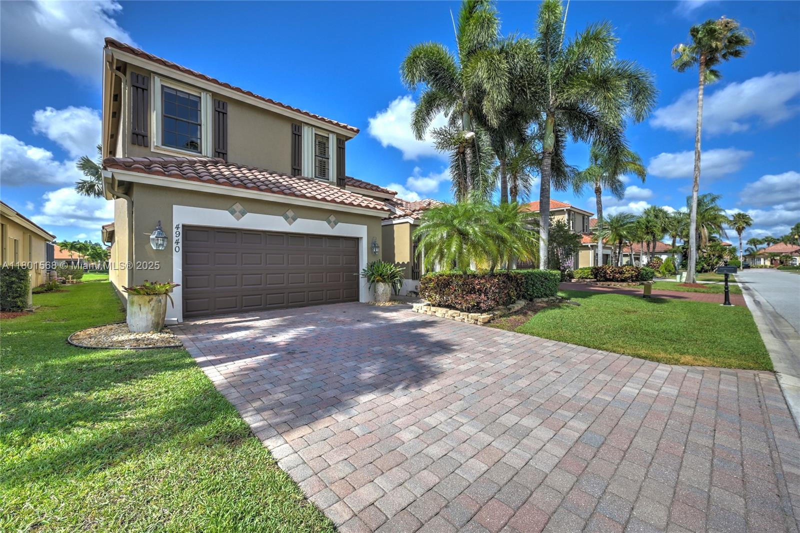 Stunning 2-story single-family home with 4 bedrooms plus a den and 4 full baths, offering 2,439 sq ft of living space. Built in 2005, this residence features vaulted ceilings and crown molding that create a bright, open feel throughout. The primary is located on the first floor and includes two walk-in closets and a spa-like bath with soaking tub. Plantation shutters add charm and privacy, while hurricane accordion shutters provide peace of mind. Enjoy lake views from your private backyard oasis with a covered patio and pool — perfect for relaxing or entertaining. The gourmet kitchen boasts black granite countertops, stainless steel appliances, and maple cabinetry. ADT security system ready. Located in a desirable community offering a clubhouse, pool, tennis courts, and picnic area.