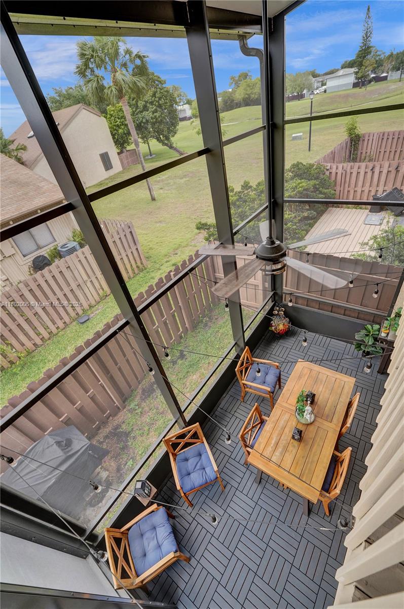 Priced below recent independent appraisal—great value! Stunning 2-bed, 2-bath townhome in highly sought-after Escape at Arrowhead community near Nova University. Features include a brand-new roof, stylish laminate flooring, a spacious screened-in porch, and accordion hurricane shutters for storm protection. Open-concept living and dining area flows into a modern kitchen with plenty of storage. The upstairs loft includes a cozy nook perfect for a home office or study space. The master suite boasts two large walk-in closets and a private bath. Enjoy outdoor living on both front and rear patios with scenic golf course views. This pet-friendly community has a pool, tennis courts, and more. No rental restrictions. Easy access to I-75, Turnpike, I-95, shopping, dining, and entertainment.