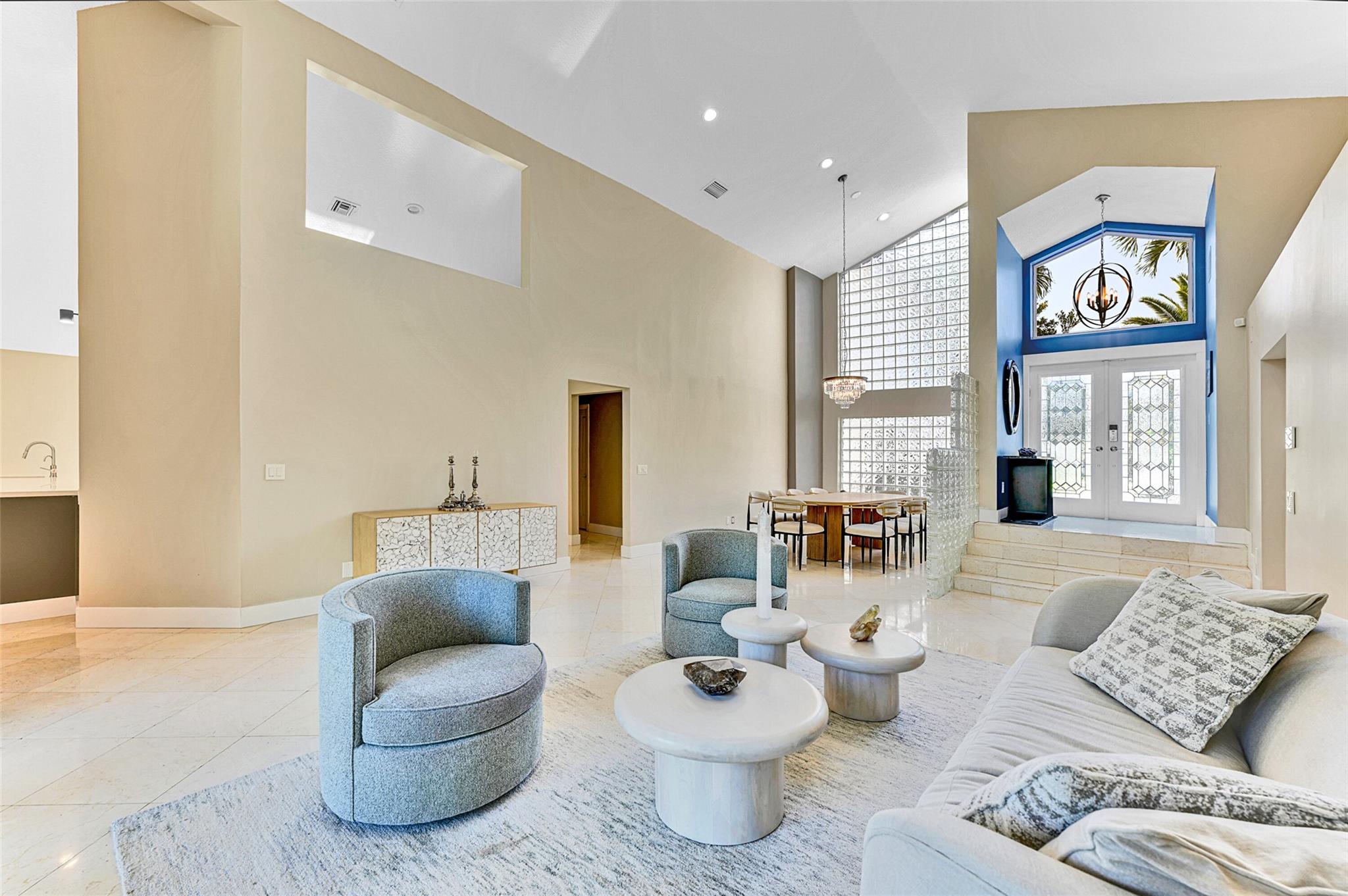 Discover refined living in the highly desirable Whispering pines community- where every home is uniquely crafted and surrounded by lush landscapes, peaceful water views and the soothing sounds of nature. This 5-bed, 3.5-bathroom estate is set on a builder's acre and offers the perfect balance of elegance and comfort. Designed with soaring 31-foot ceilings, the home features marble flooring in common areas, hardwood floors in bedrooms, and built in closets throughout. The oversized primary bedroom overlooks the pool. At the heart of the home is a chef-inspired kitchen outfitted with Thermador appliances and built in Miele coffee system. Step outside to your resort style backyard with heated pool, stunning water views, and a brand new in ground basketball hoop. This rare find won't last.