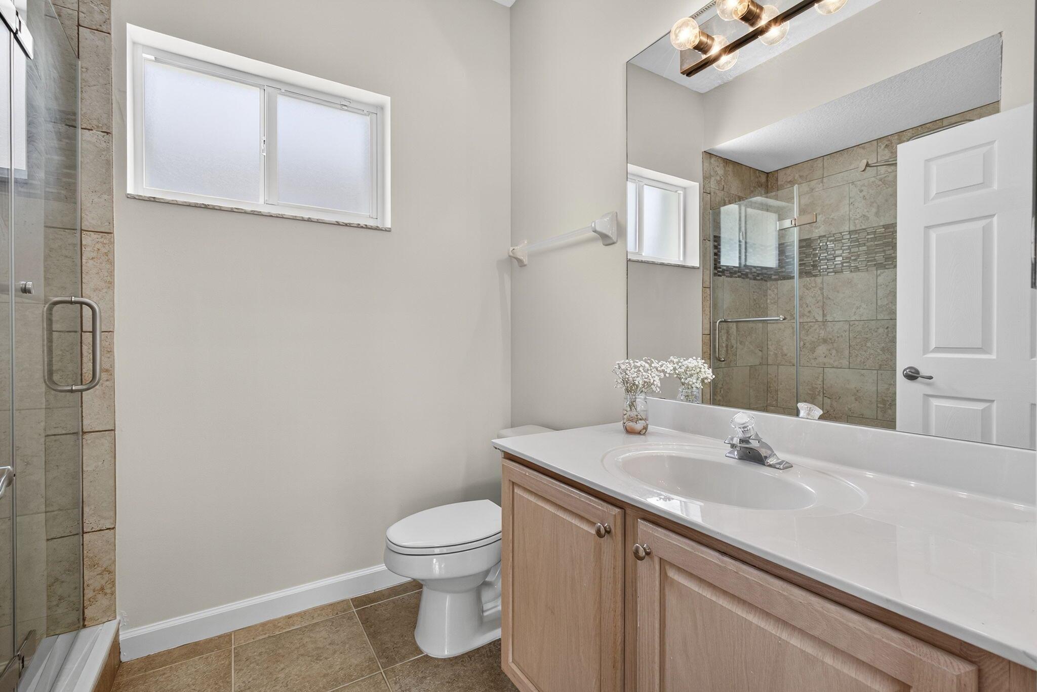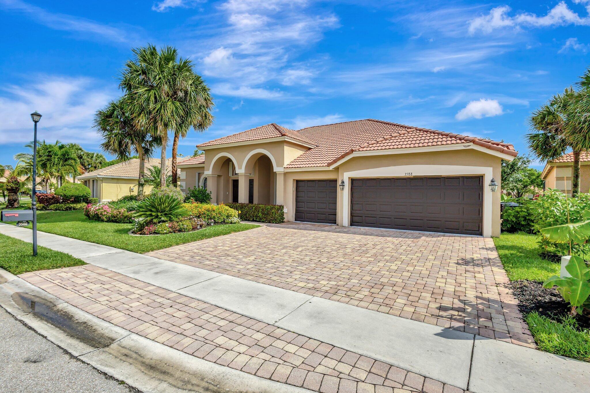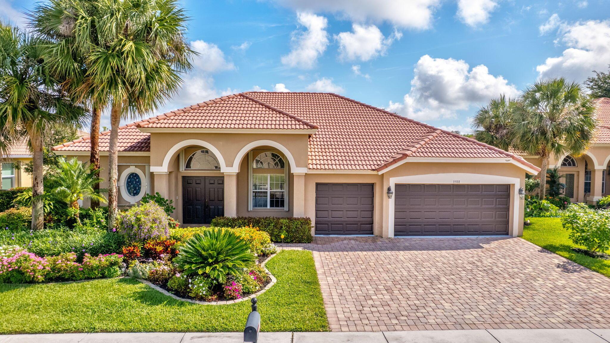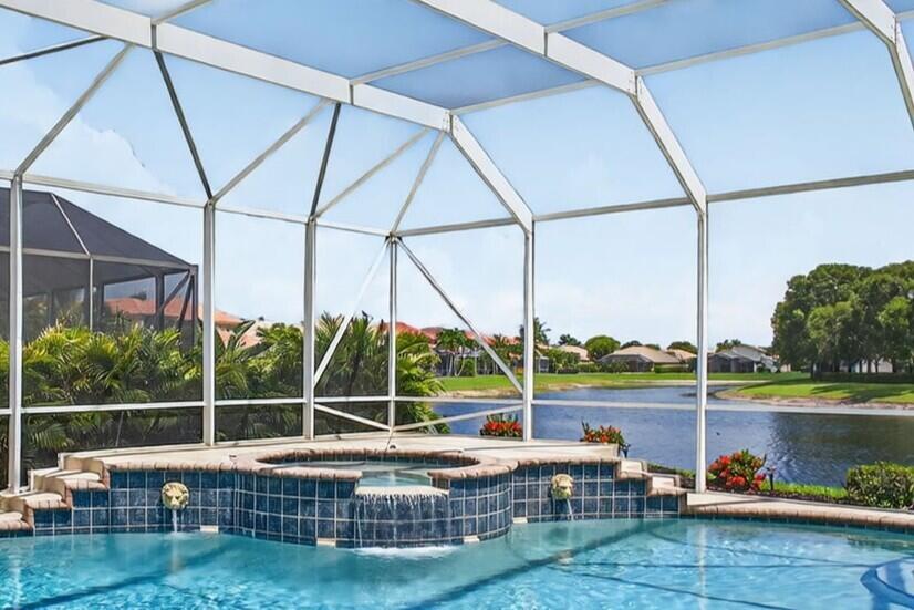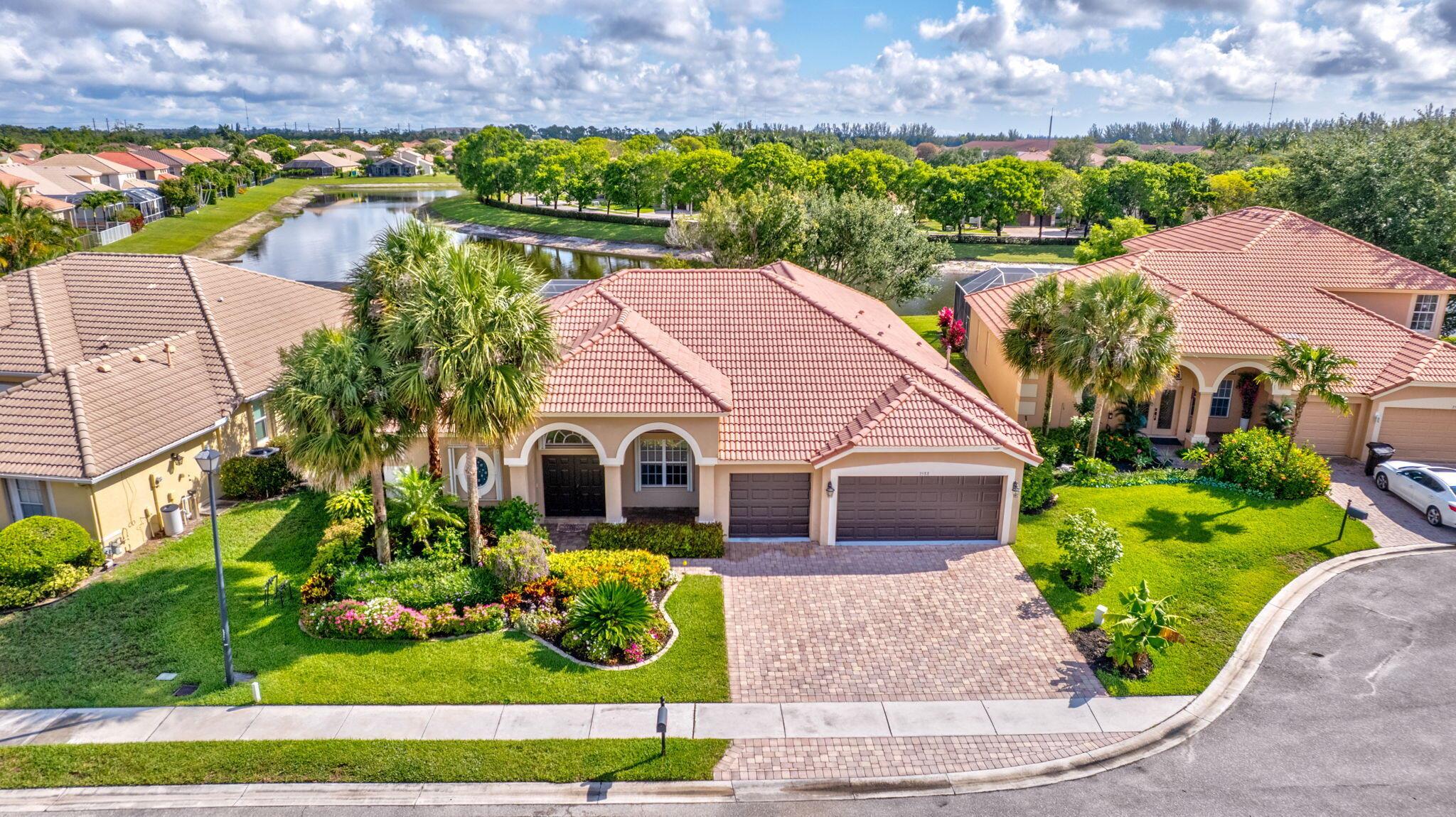 Back on the market with a freshly painted interior! A beautiful flower garden invites you to this 4 bed, 3 bath home Expansive windows bring the outdoors in to this home built for entertaining. Thoughtfully designed layout includes spacious rooms & open floor plan. LG Thin Q fridge, stove, microwave, smart hot water heater. Lushly landscaped, lake views with a screened-in pool and patio, ideal for relaxing or entertaining year-round. The home also features dual a/c units and a rare a/c-equipped garage, perfect for a home gym, workshop, or temperature-controlled storage. The quiet community of Hamilton Bay is centrally located to shopping, dining, highways and downtown WPB. This home offers a lifestyle that's both peaceful and practical. Don't miss your chance to own this gem!