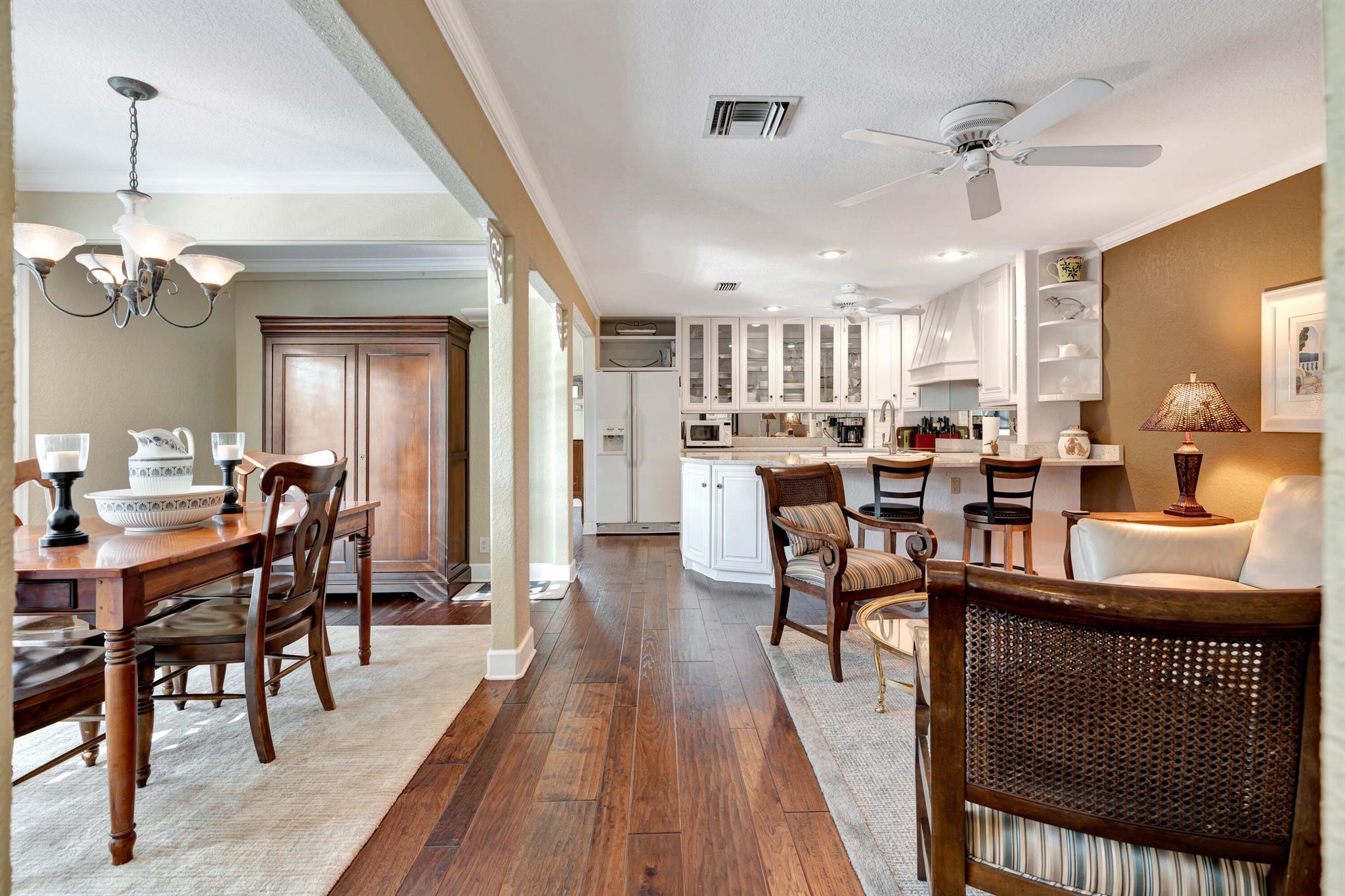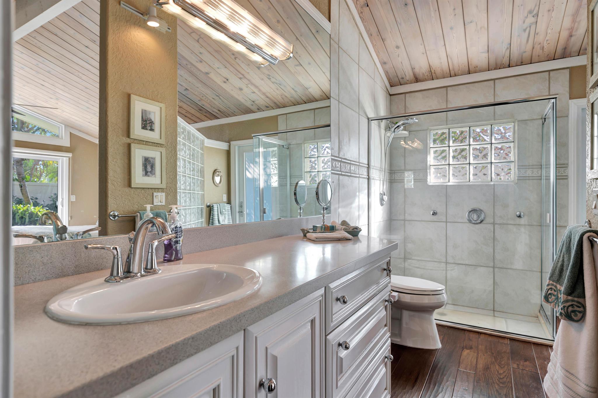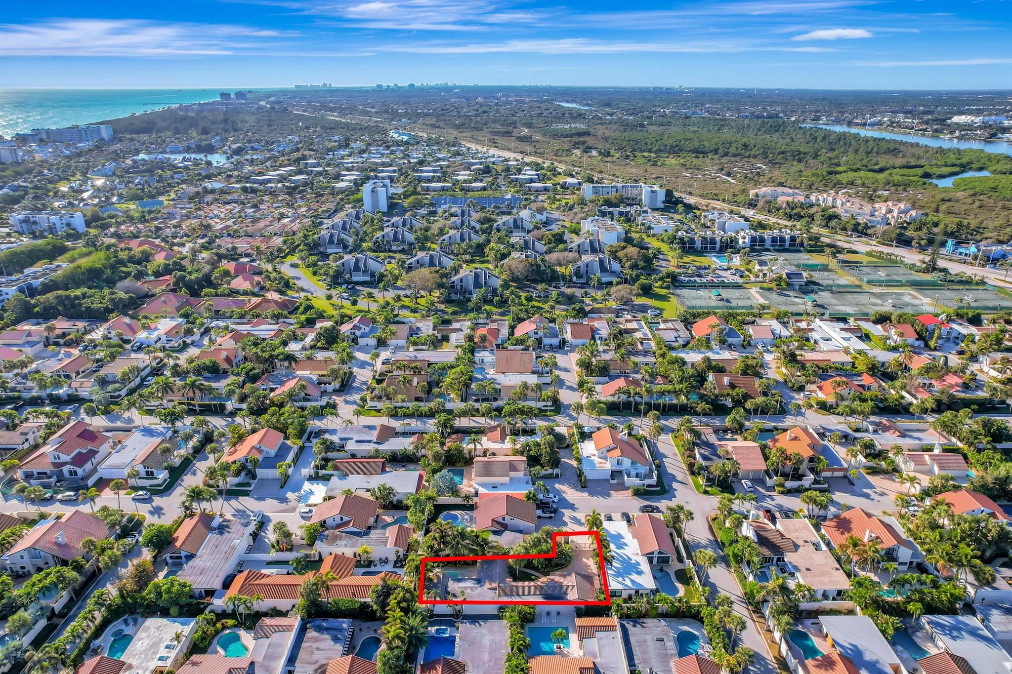 Beautiful, gated community across from the Beach. Private oasis with your own electric gate to your private compound. Beautiful wood floors, and updated Baths and Kitchen. Impact windows, sliders and doors with the exception of 3 windows. 2 Main bedrooms with attached baths. A powder room and spacious office or den. Walk to restaurants, River Walk, the Beach and shopping. Let this beautiful Jupiter home become your dream Beach retreat.