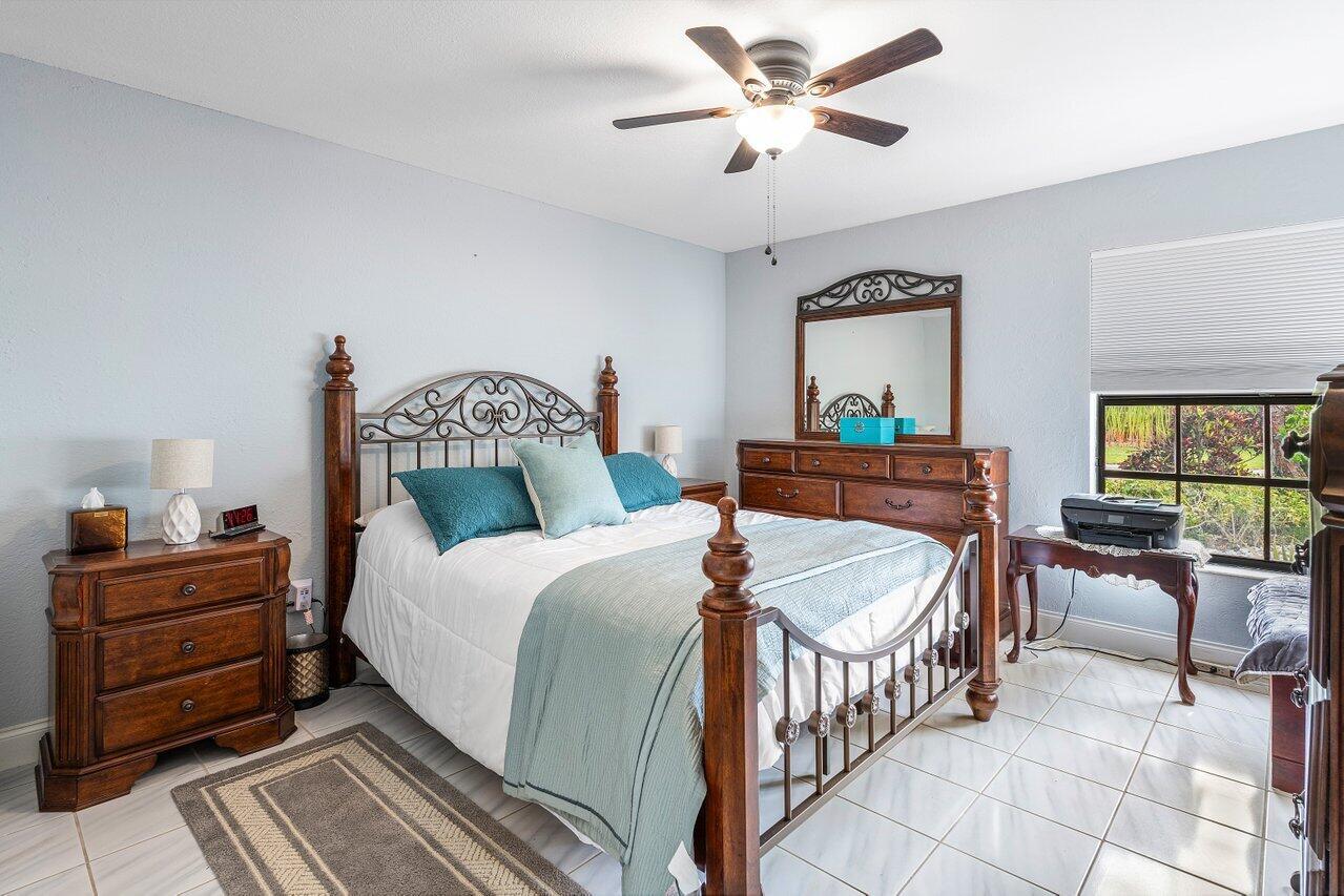 Located in the highly sought-after Boca Woods Country Club, this 3 bed/2 bath home is tucked away on a quiet cul-de-sac street. One of the few models featuring a unique front entry, this home welcomes you to a spacious split floor plan. Step outside to your private patio and pool, and enjoy peaceful fairway views, a truly serene setting perfect for relaxing or entertaining. Recent upgrades include remodeled bathrooms (2025) hurricane-rated garage door & fresh exterior paint. Boca Woods is an all age Country Club Community which offers resort style amenities, including two championship golf courses, Har Tru tennis courts, pickleball courts, state of the art fitness center, spa, game room, fully renovated clubhouse with fine dining and much more! Mandatory Country Club membership required.