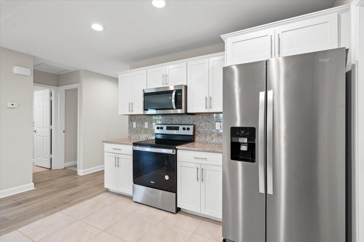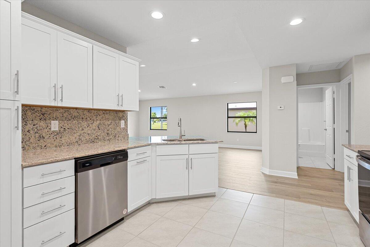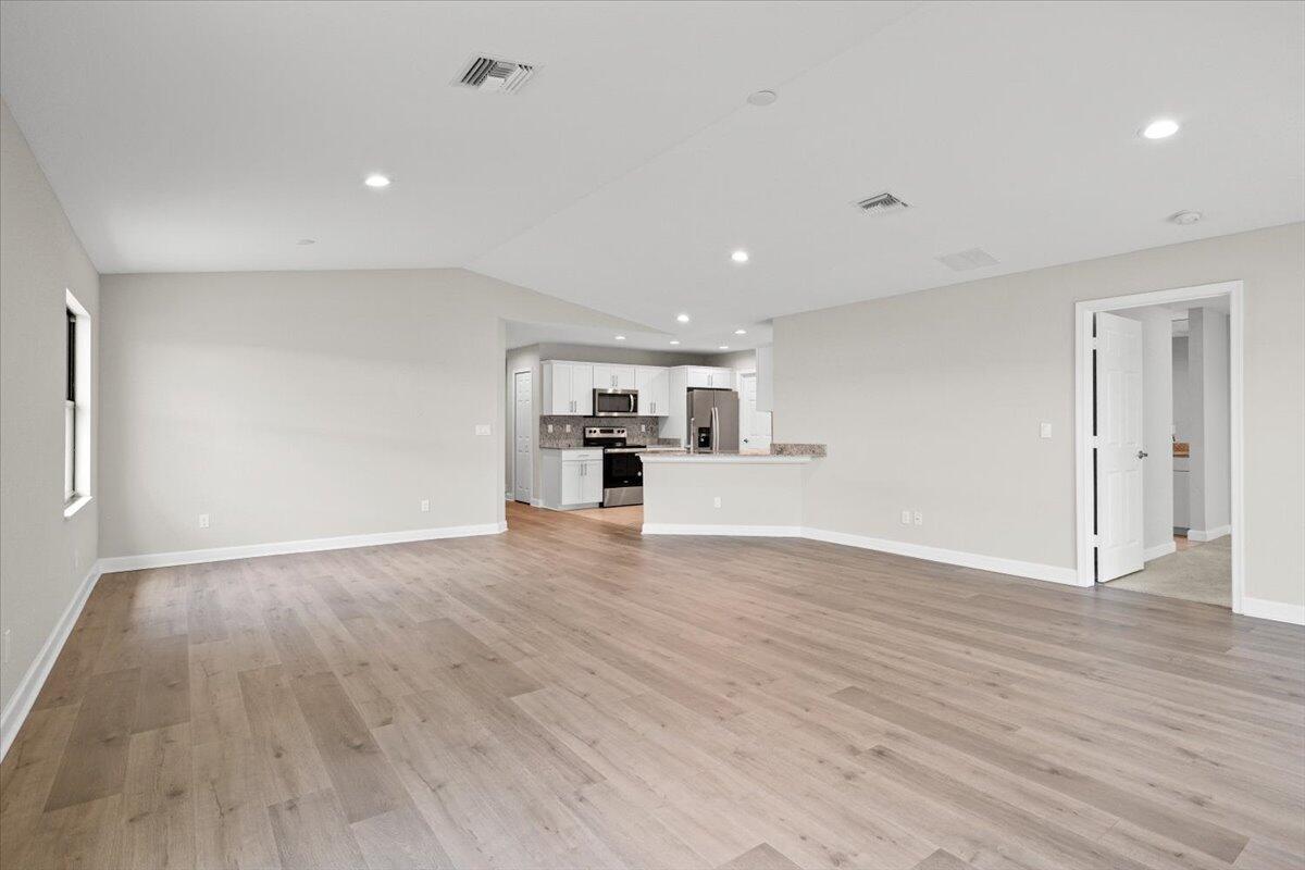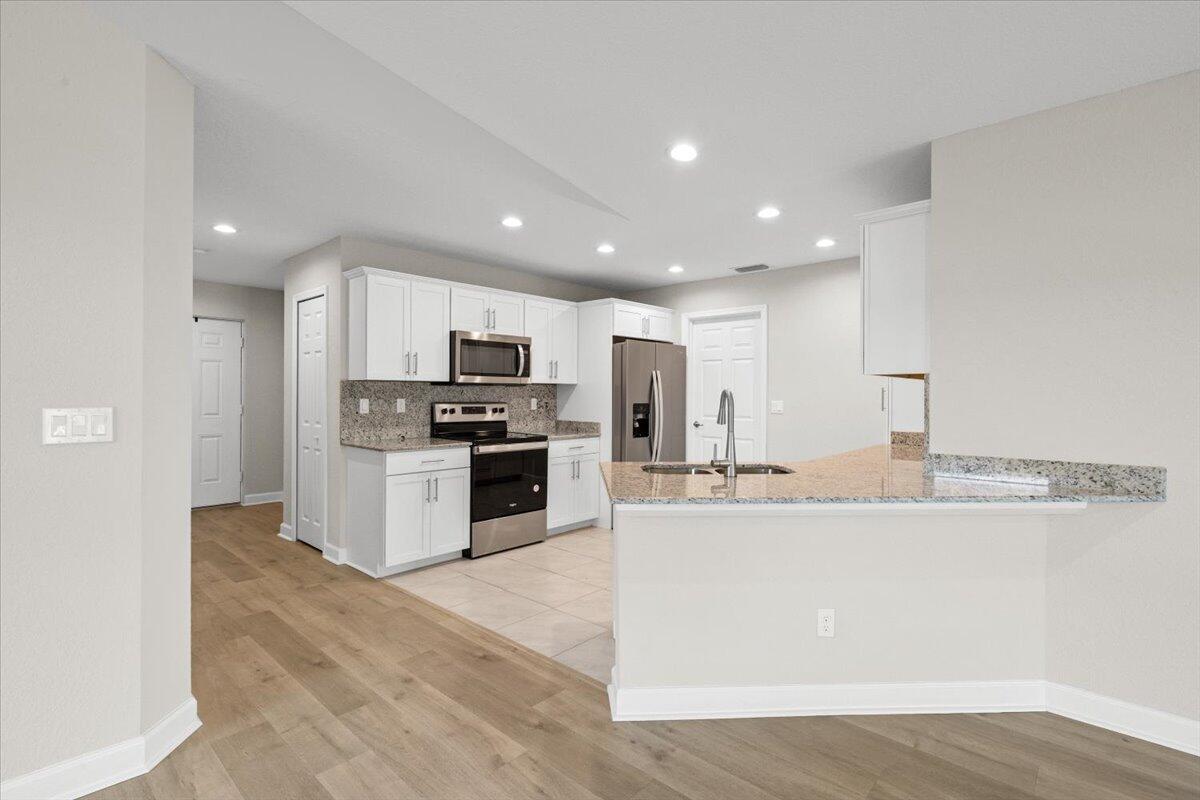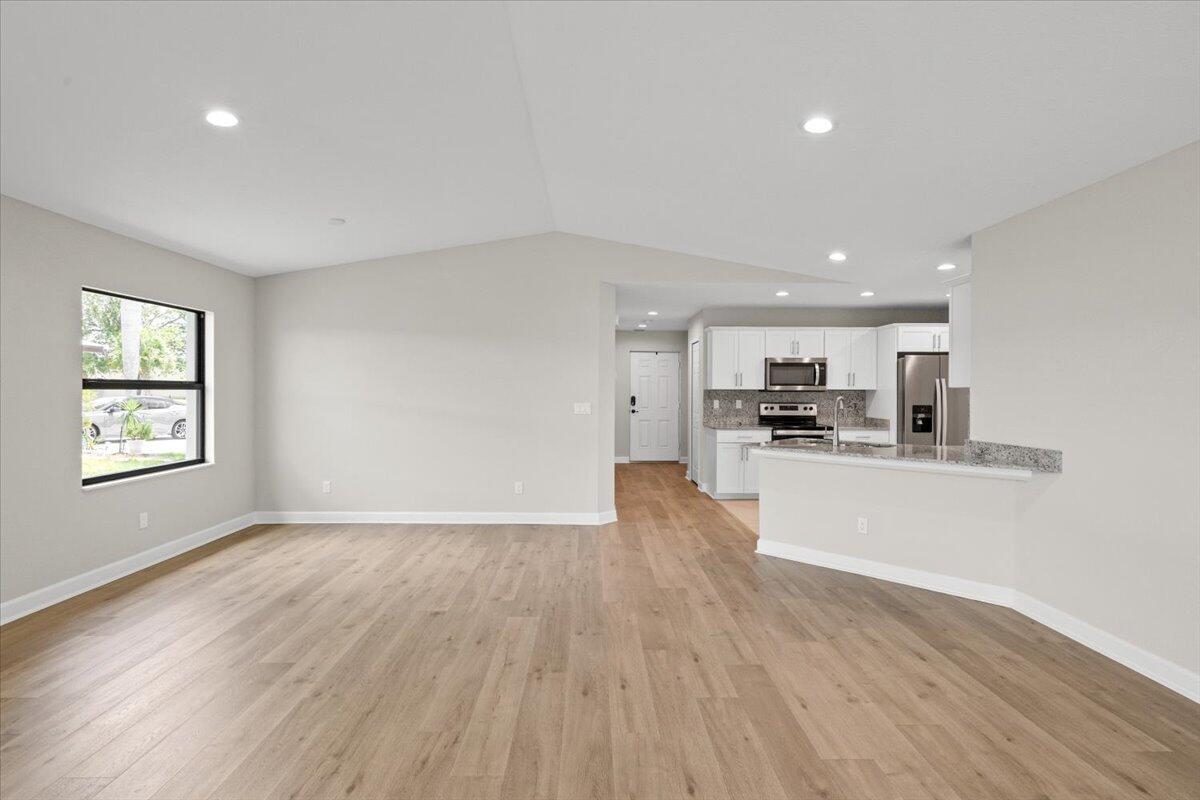 Brand new construction located on the golf course at an affordable price, you do not want to miss this! Corner lot home in this 55+ community comes with a metal roof 25-year warranty, hurricane impact windows, stone counters and shaker cabinets in the kitchen and both bathrooms, R30 insulation, LED lighting, stainless steel appliances, split floor plan with beautiful, modern laminate floors, pull down stair in attic for extra storage, large walk in closet in master bedroom along with duel sinks and walk-in shower. Country Club village has so many amazing people and amenities that you will find the greatest friends who will become like family in no time! Builder offers 5% interest on 30 yr loan with NO closing costs.