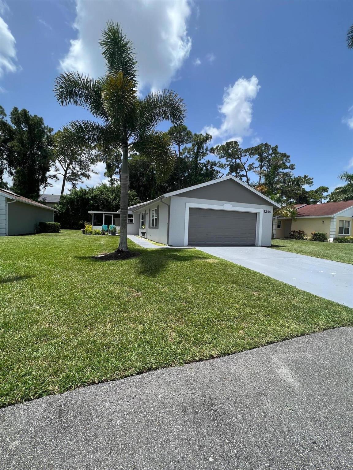 Welcome Home! This renovated unit locates at the desirable man gated community Palm Club Village. Minutes to I-95 and FL Turnpike! Close to beautiful beaches, Tanger Outlets, schools, PB International Airport, and many more. The unit displays newer kitchen cabinets, bathrooms and floors. No Carpet. A/C and W/H replaced 2023, Cathedral ceilings. Investors welcome, no rental restrictions!!!. HOA includes man-gated entrance, basic cable, internet, lawn and sprinklers maintenance for a low monthly fee.