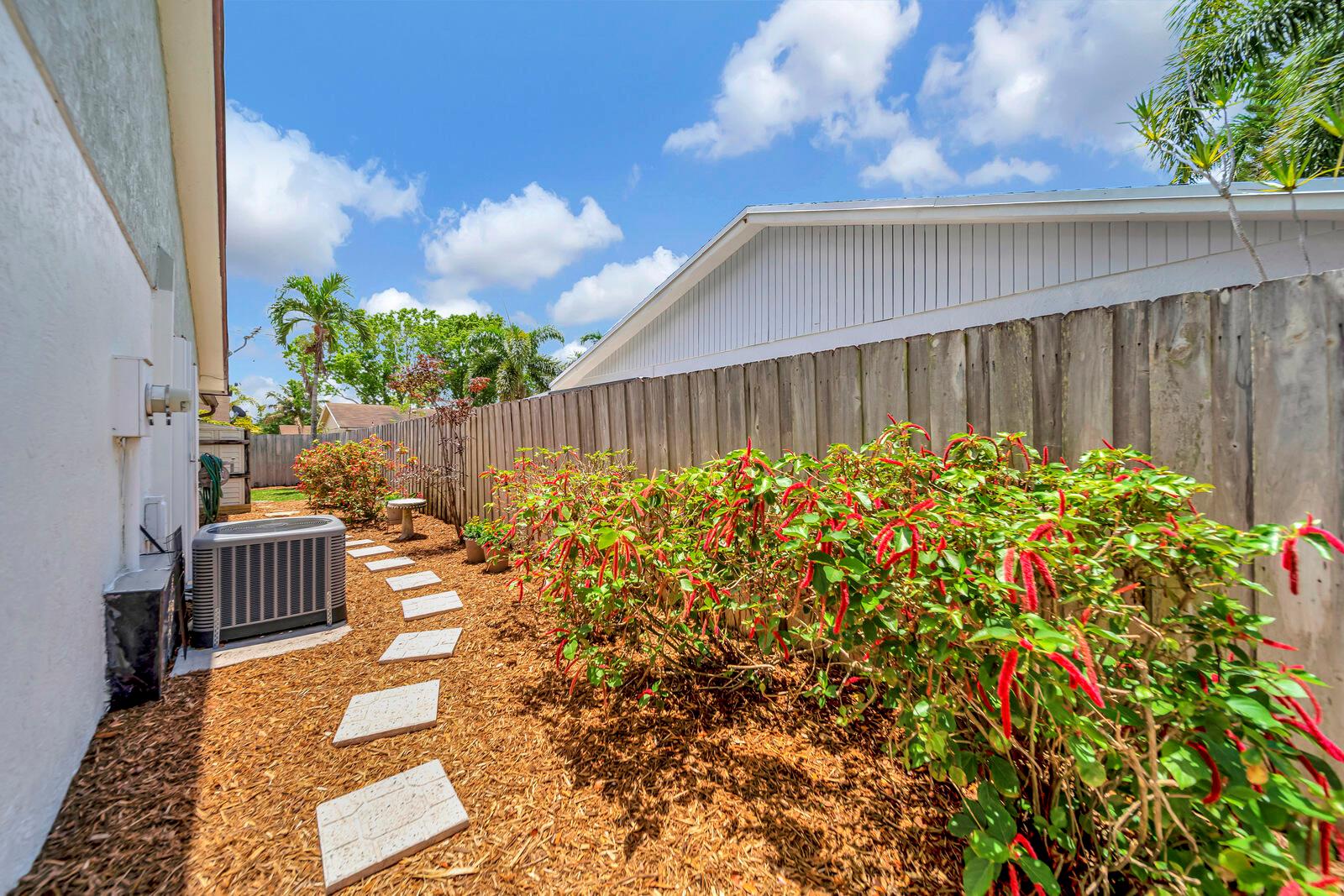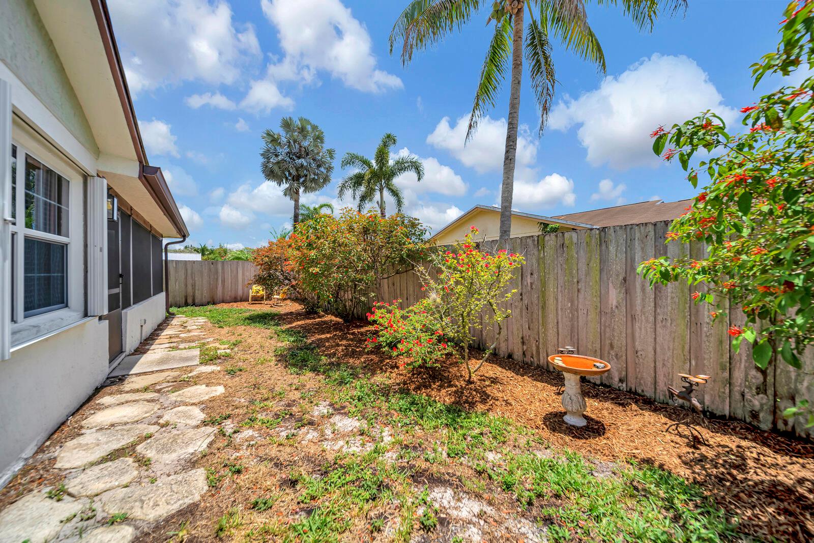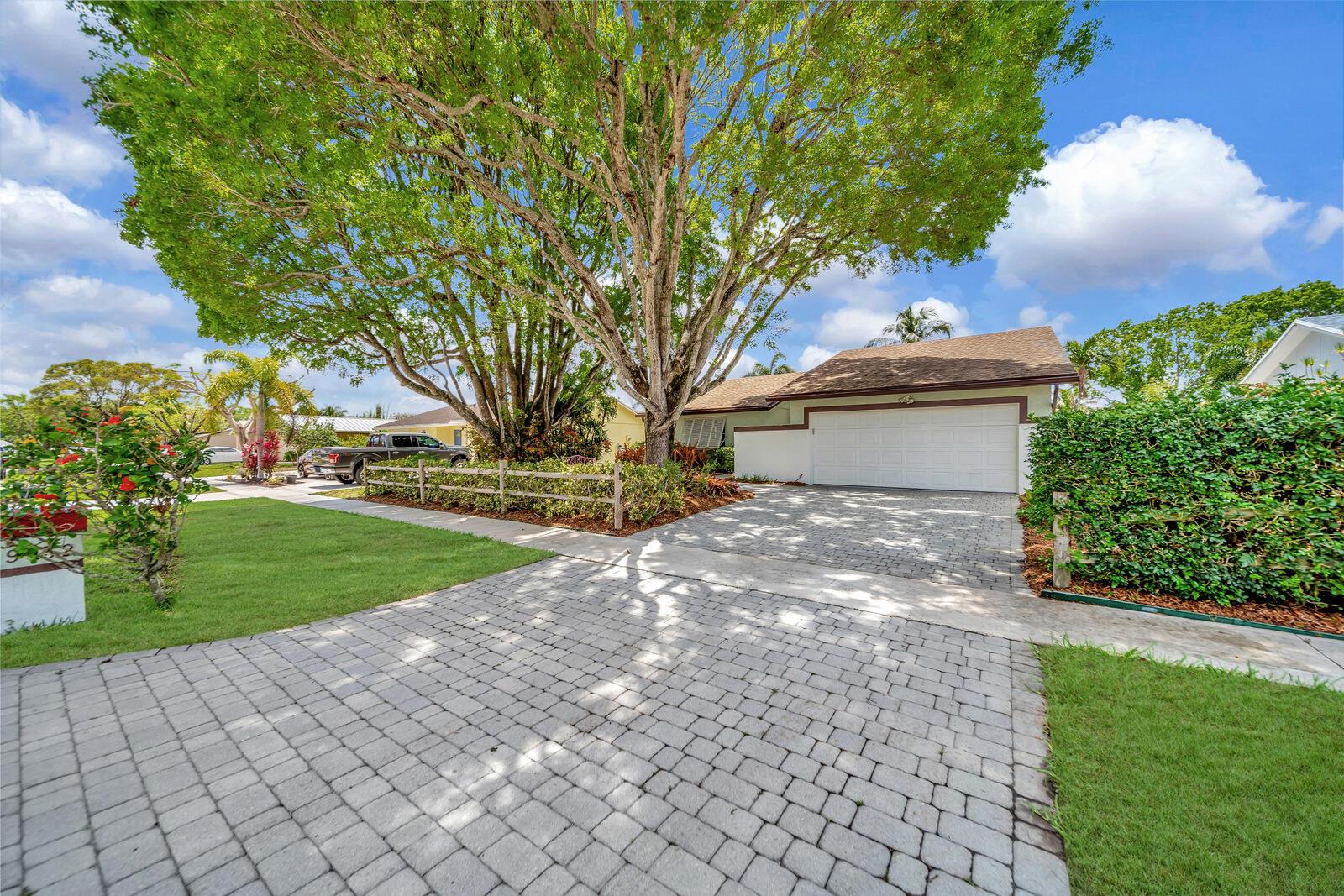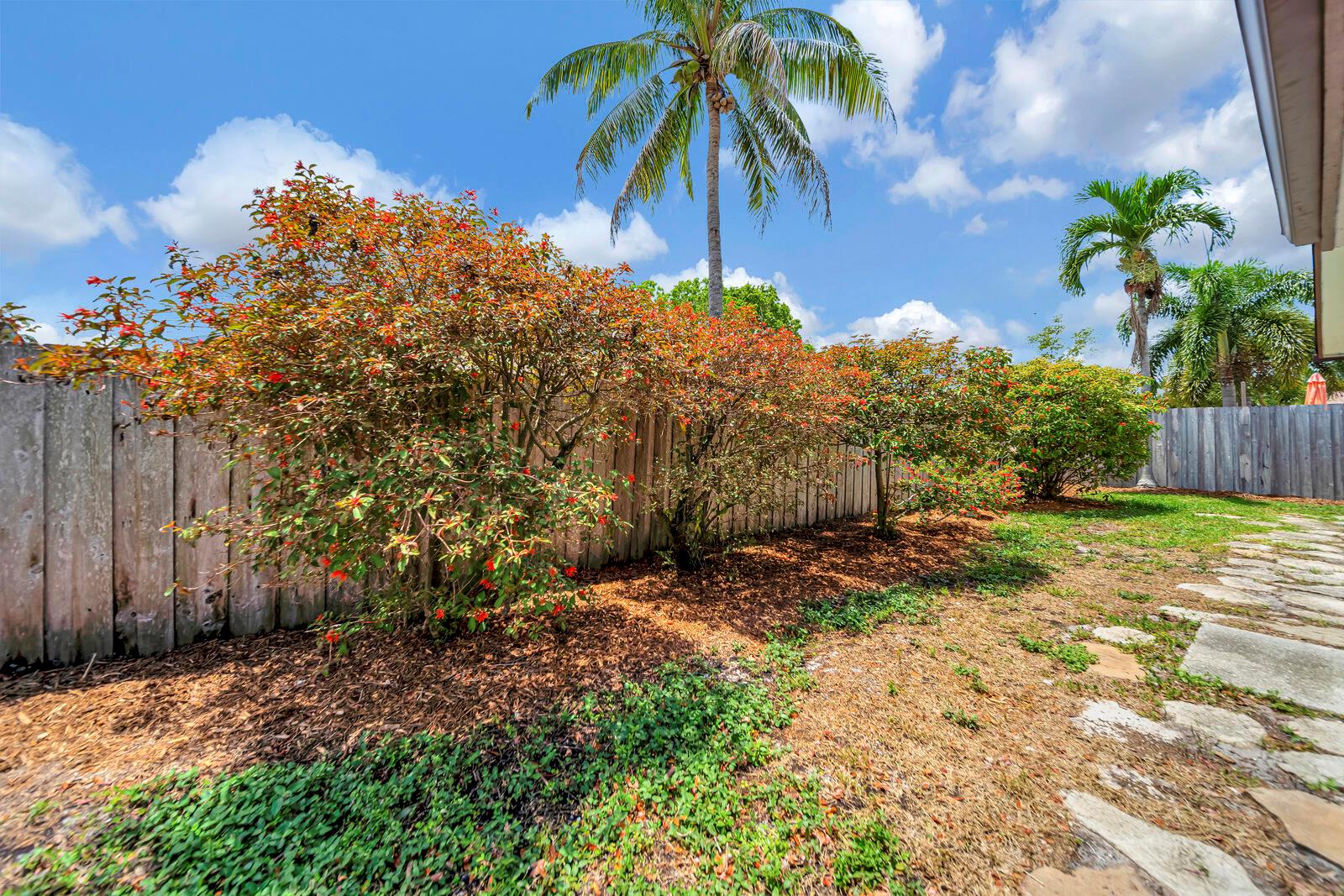 WOW! Super Spacious Single Family Home Features 3 Bedrooms, 2 Bathrooms, a 2 Car Garage, a pavered driveway and a huge screened in/covered patio located in Saddlebrook/Spanish Isles! New roof from 2021!!!! Gorgeous ZeraScape landscaping, meaning no watering necessary and easy to maintain. Tropical paradise oasis with tons of lush landscaping including all kinds of Bromeliads, Blue Ruella, Arboricola, & Firebush which attract hummingbirds and butterflies, just to mention a few. Beautiful mature trees for shade. Fenced in with a gate on both sides, PLUS pole fence from the front yard (grandfathered in w/HOA). It feels like you live in your own private park. The screened in patio has tile flooring, tongue and grove ceiling with skylights and includes a hanging swing. Fabulous foyer entry.