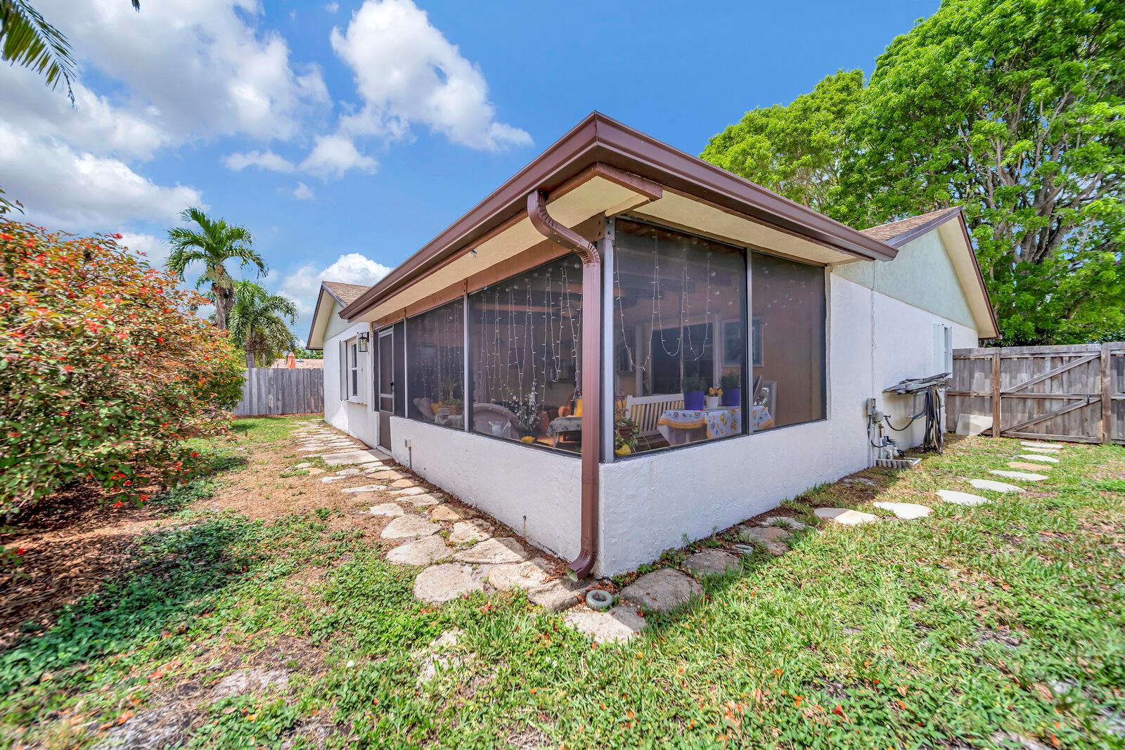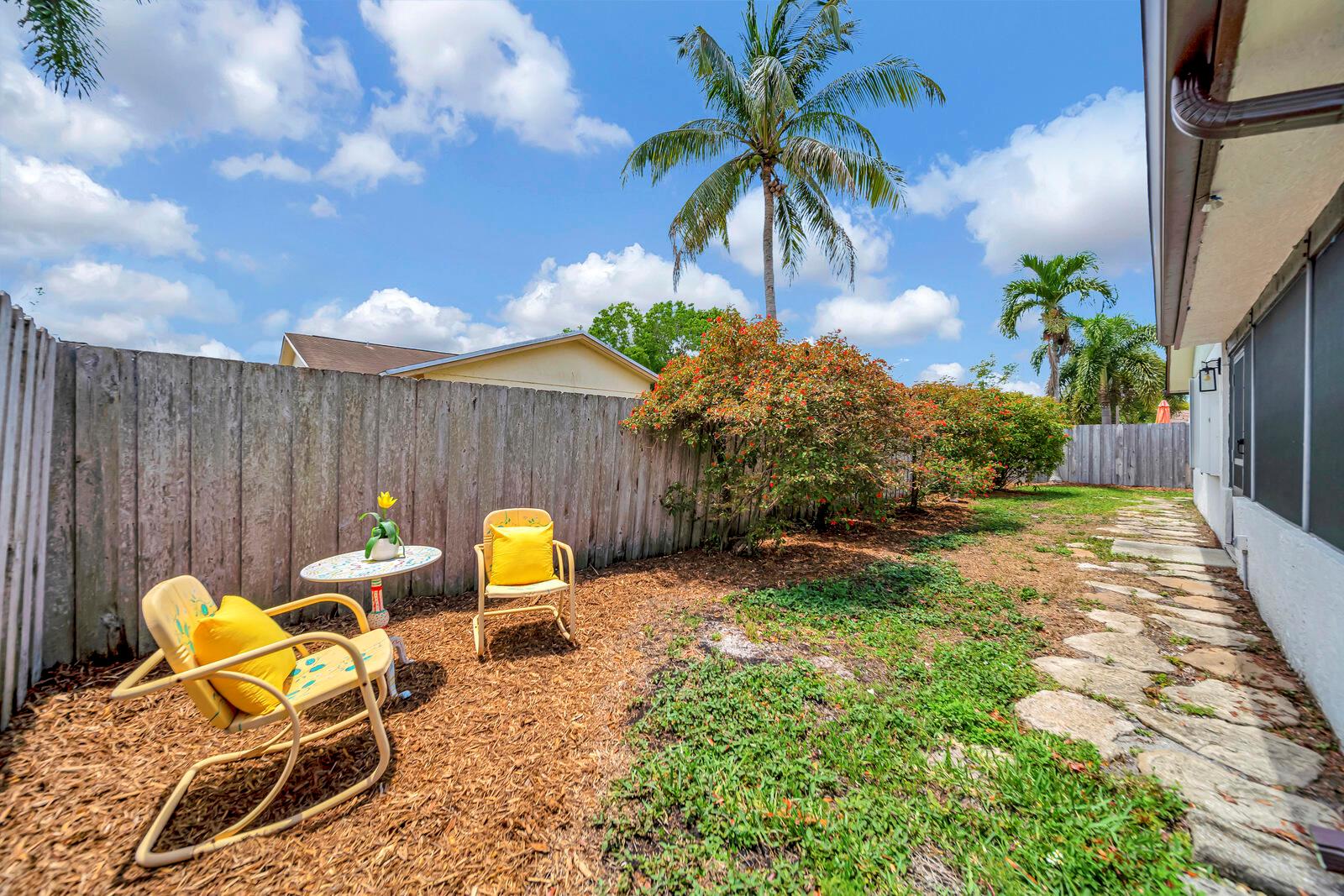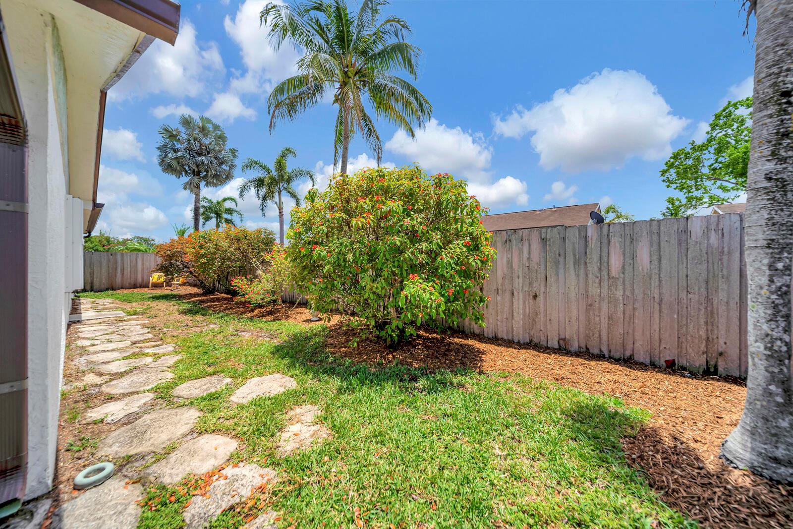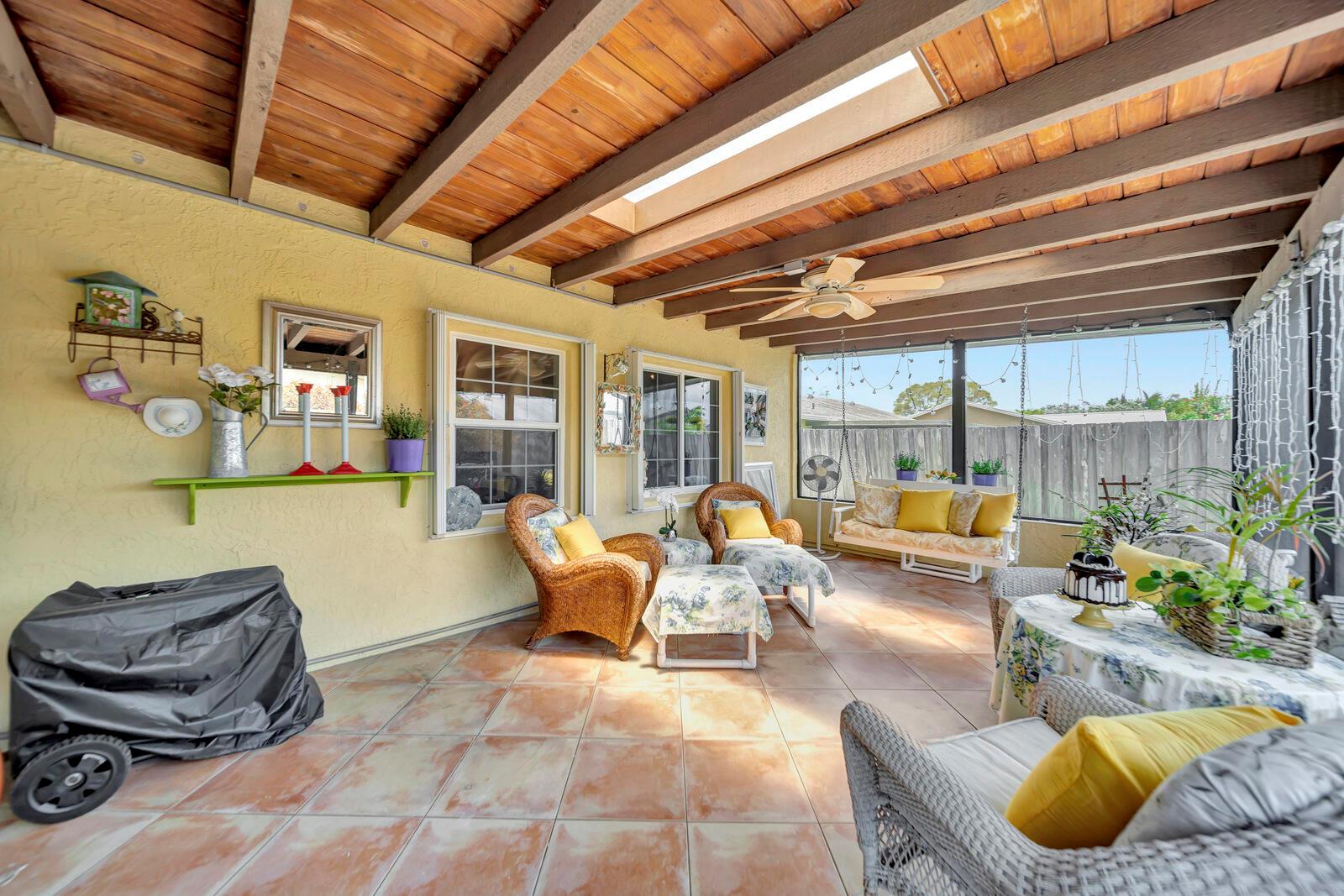 WOW! Super Spacious Single Family Home Features 3 Bedrooms, 2 Bathrooms, a 2 Car Garage, a pavered driveway and a huge screened in/covered patio located in Saddlebrook/Spanish Isles! New roof from 2021!!!! Gorgeous ZeraScape landscaping, meaning no watering necessary and easy to maintain. Tropical paradise oasis with tons of lush landscaping including all kinds of Bromeliads, Blue Ruella, Arboricola, & Firebush which attract hummingbirds and butterflies, just to mention a few. Beautiful mature trees for shade. Fenced in with a gate on both sides, PLUS pole fence from the front yard (grandfathered in w/HOA). It feels like you live in your own private park. The screened in patio has tile flooring, tongue and grove ceiling with skylights and includes a hanging swing. Fabulous foyer entry.