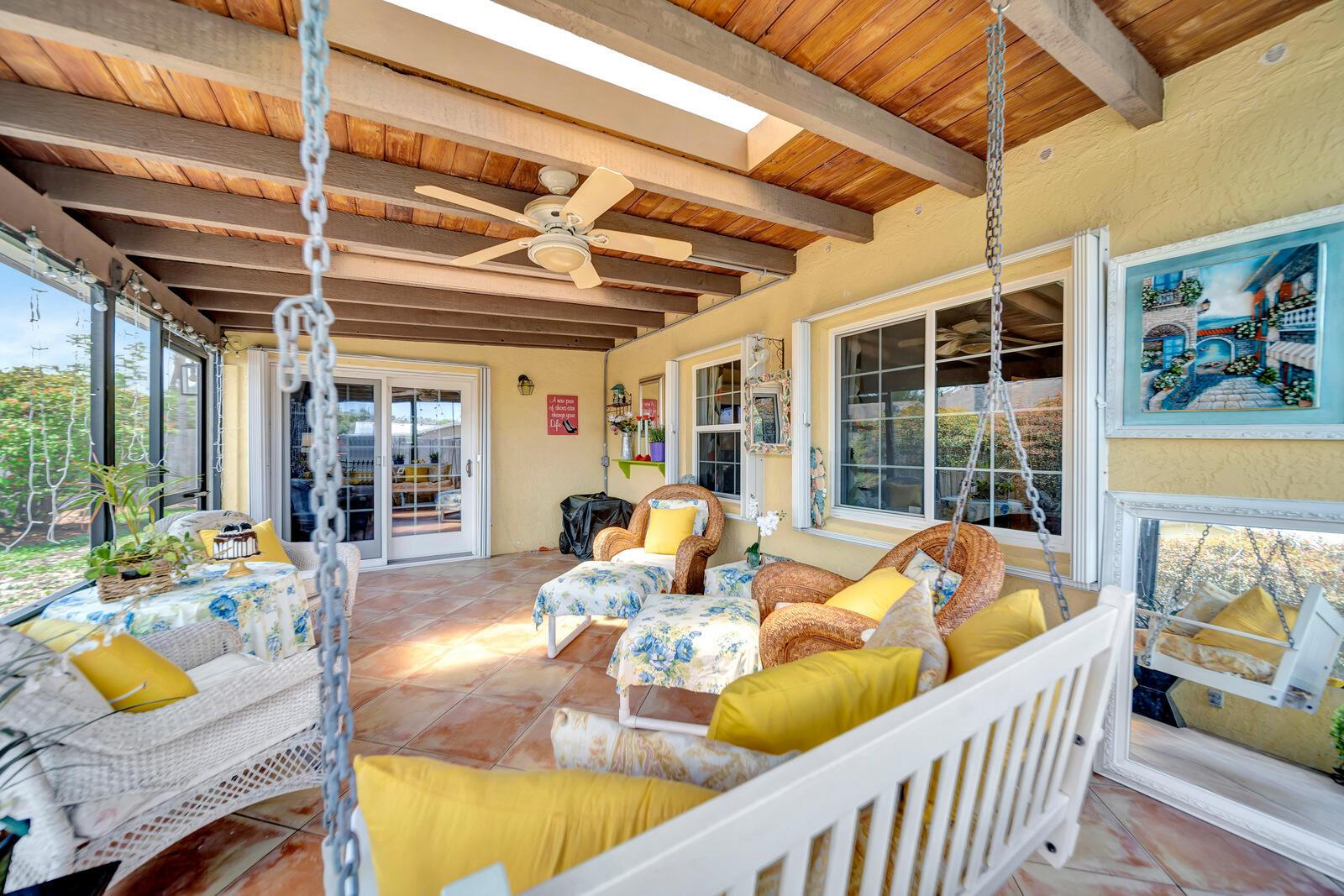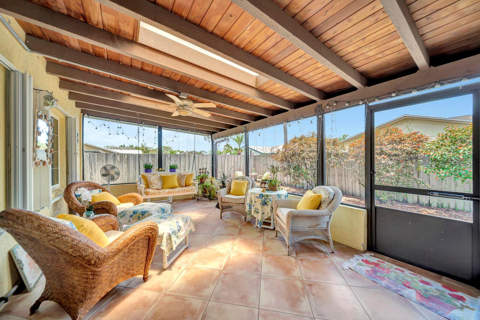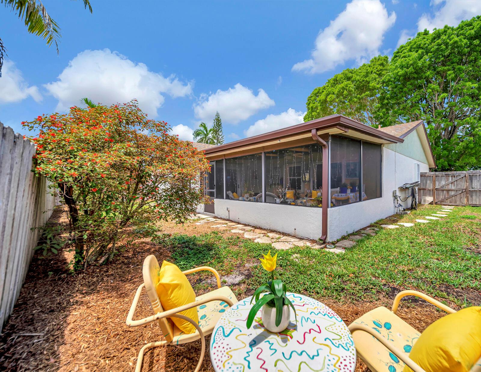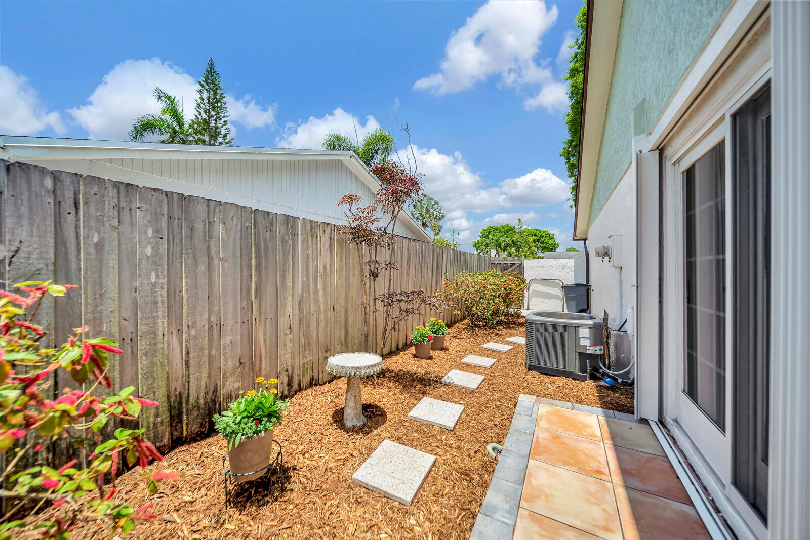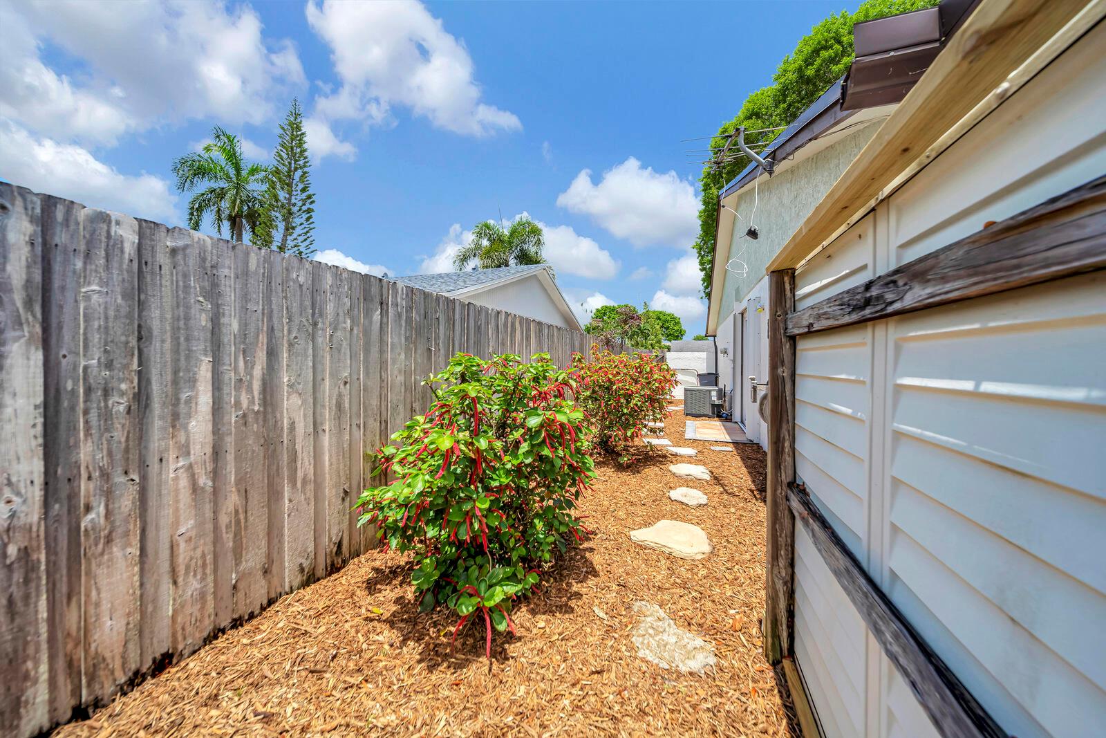 WOW! Super Spacious Single Family Home Features 3 Bedrooms, 2 Bathrooms, a 2 Car Garage, a pavered driveway and a huge screened in/covered patio located in Saddlebrook/Spanish Isles! New roof from 2021!!!! Gorgeous ZeraScape landscaping, meaning no watering necessary and easy to maintain. Tropical paradise oasis with tons of lush landscaping including all kinds of Bromeliads, Blue Ruella, Arboricola, & Firebush which attract hummingbirds and butterflies, just to mention a few. Beautiful mature trees for shade. Fenced in with a gate on both sides, PLUS pole fence from the front yard (grandfathered in w/HOA). It feels like you live in your own private park. The screened in patio has tile flooring, tongue and grove ceiling with skylights and includes a hanging swing. Fabulous foyer entry.